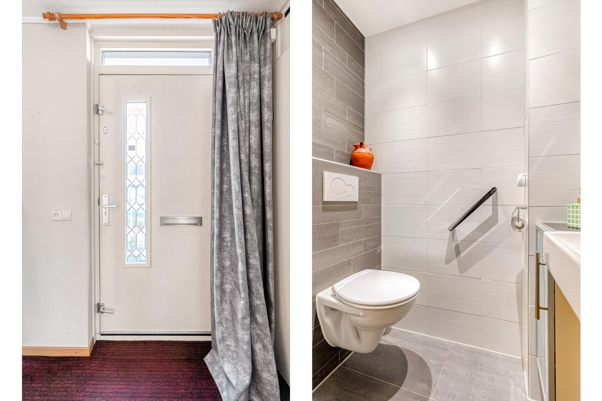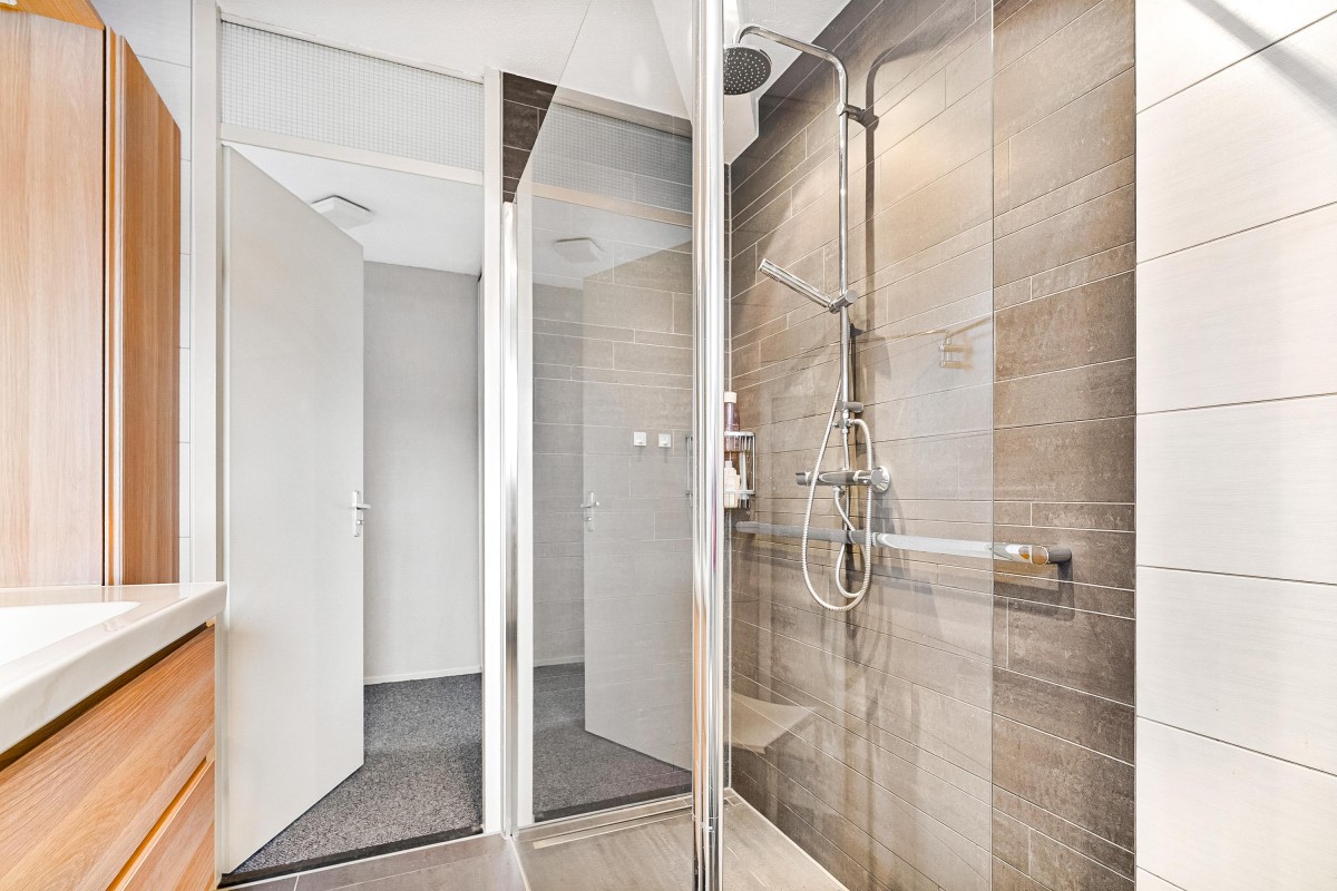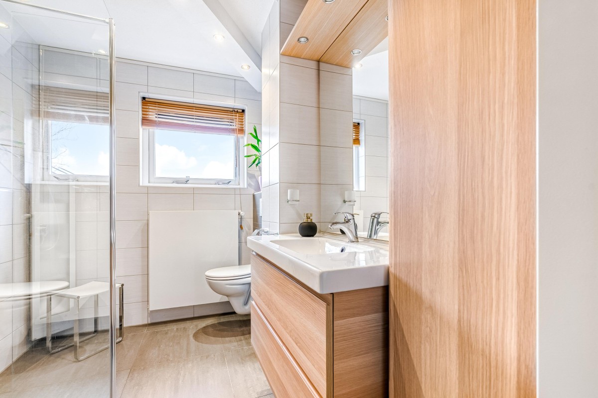 Op de eerste verdieping bevindt zich een royale overloop met vaste kastenwand (met schuifdeuren). De twee ruime slaapkamers bieden veel mogelijkheden, waarbij de kamer aan de achterzijde extra groot is door het samenvoegen van twee kamers (dit kan eenvoudig weer worden hersteld). De luxe badkamer is uitgerust met een inloopdouche, wastafelmeubel, 2e toilet, designradiator en een sunshower – een echte luxeplek om te ontspannen.