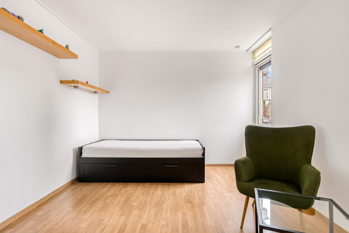 Aan de achterzijde van de woning is een slaapkamer aanwezig, deze kamer kan gebruikt worden voor speelkamer voor de kinderen, als werkkamer, quest room of als slaapkamer met een mogelijkheid tot een badkamer. Op dit moment is de wasmachine geplaatst in de badkamer. Er zou ook eventueel een douche in de badkamer gemaakt kunnen worden.