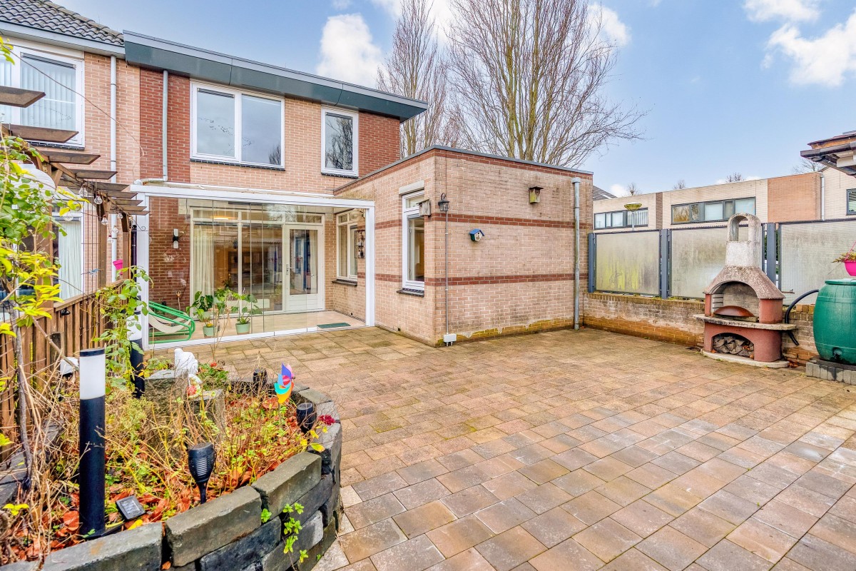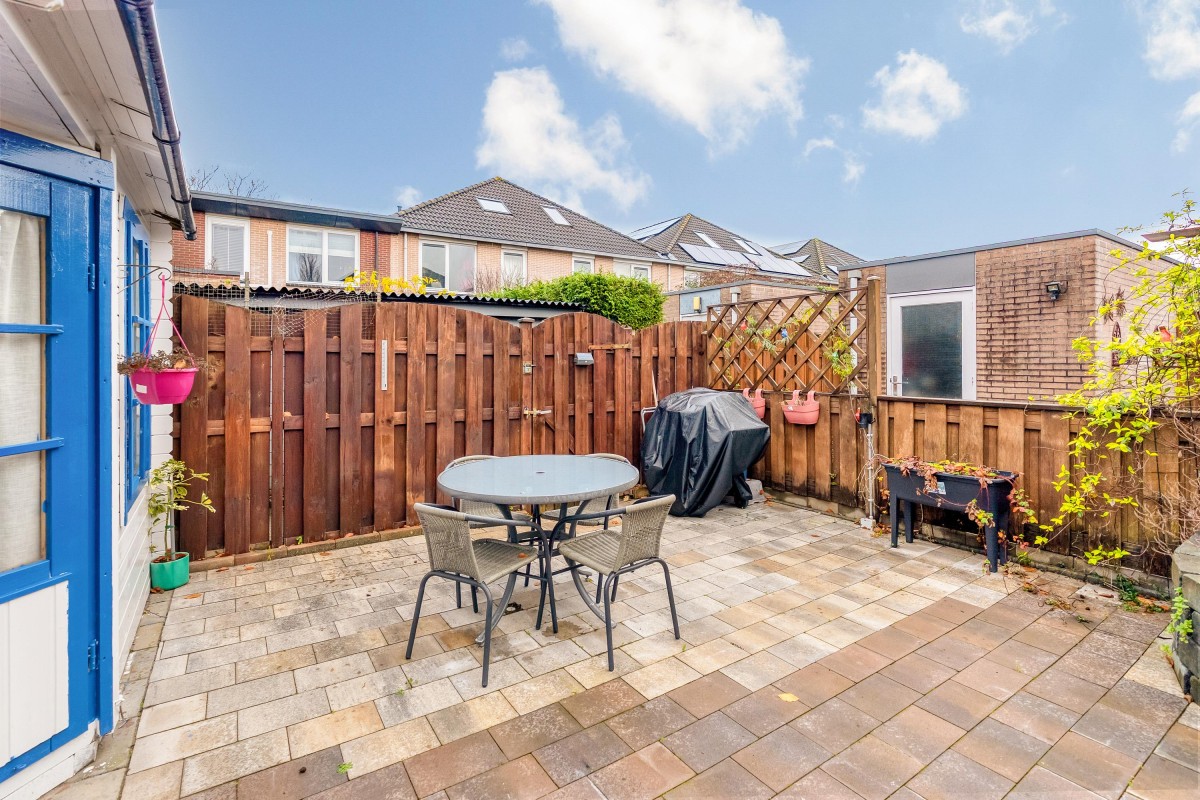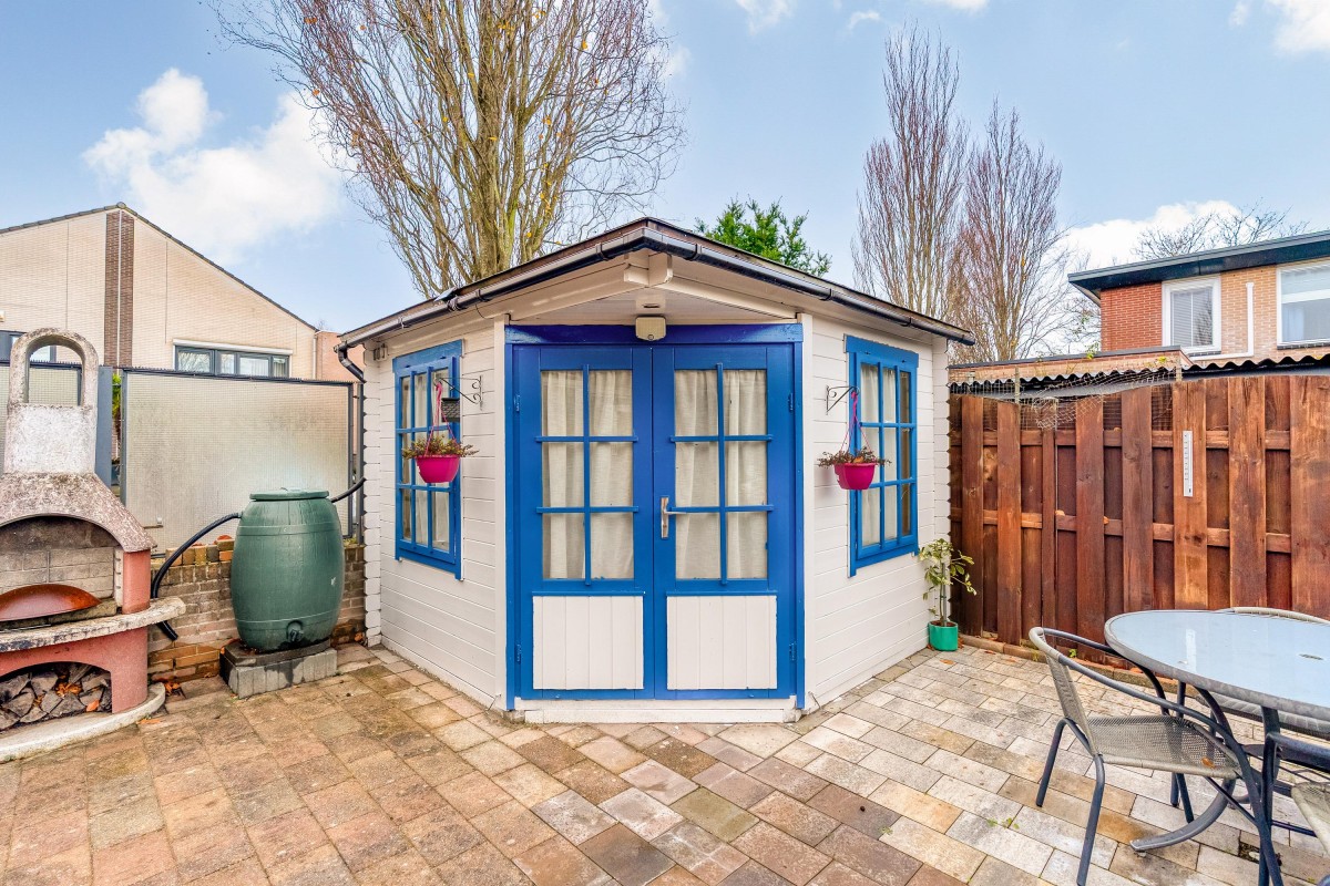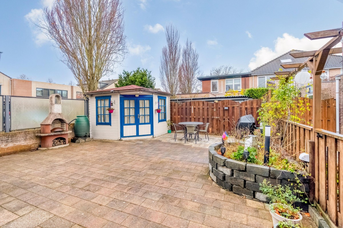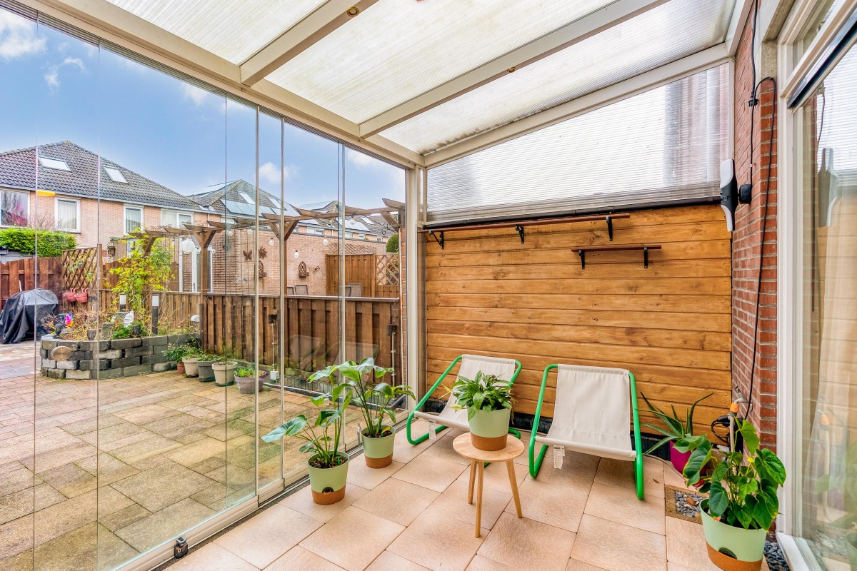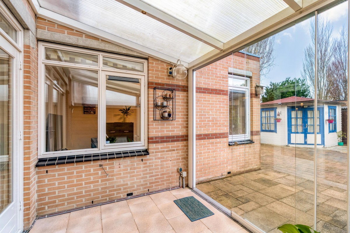 De verzorgde voor- en achtertuin zijn beide voorzien van sierbestrating en een groene border. De achtertuin is gelegen op het noordwesten, wat betekent dat je hier tot laat in de avond kunt genieten van de zon. De tuin beschikt over een houten berging, een achterom en een veranda met glazen schuifwanden, elektra en wateraansluiting.