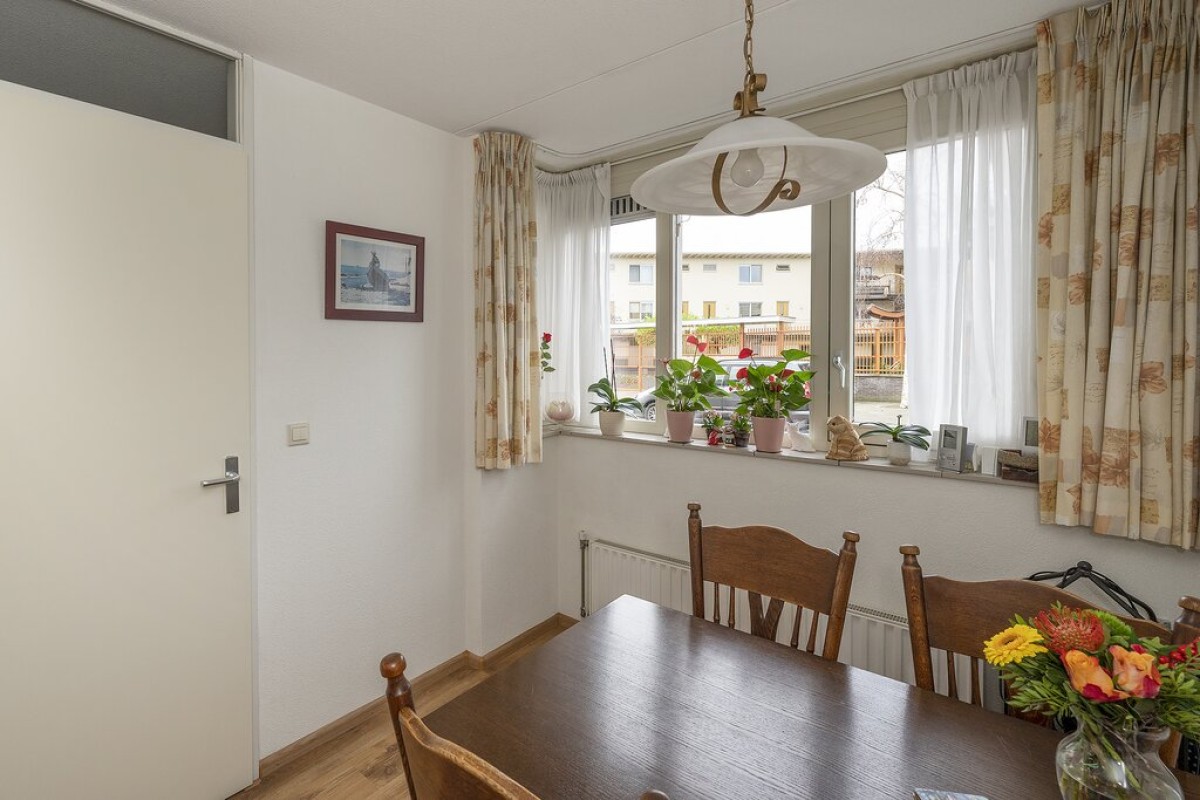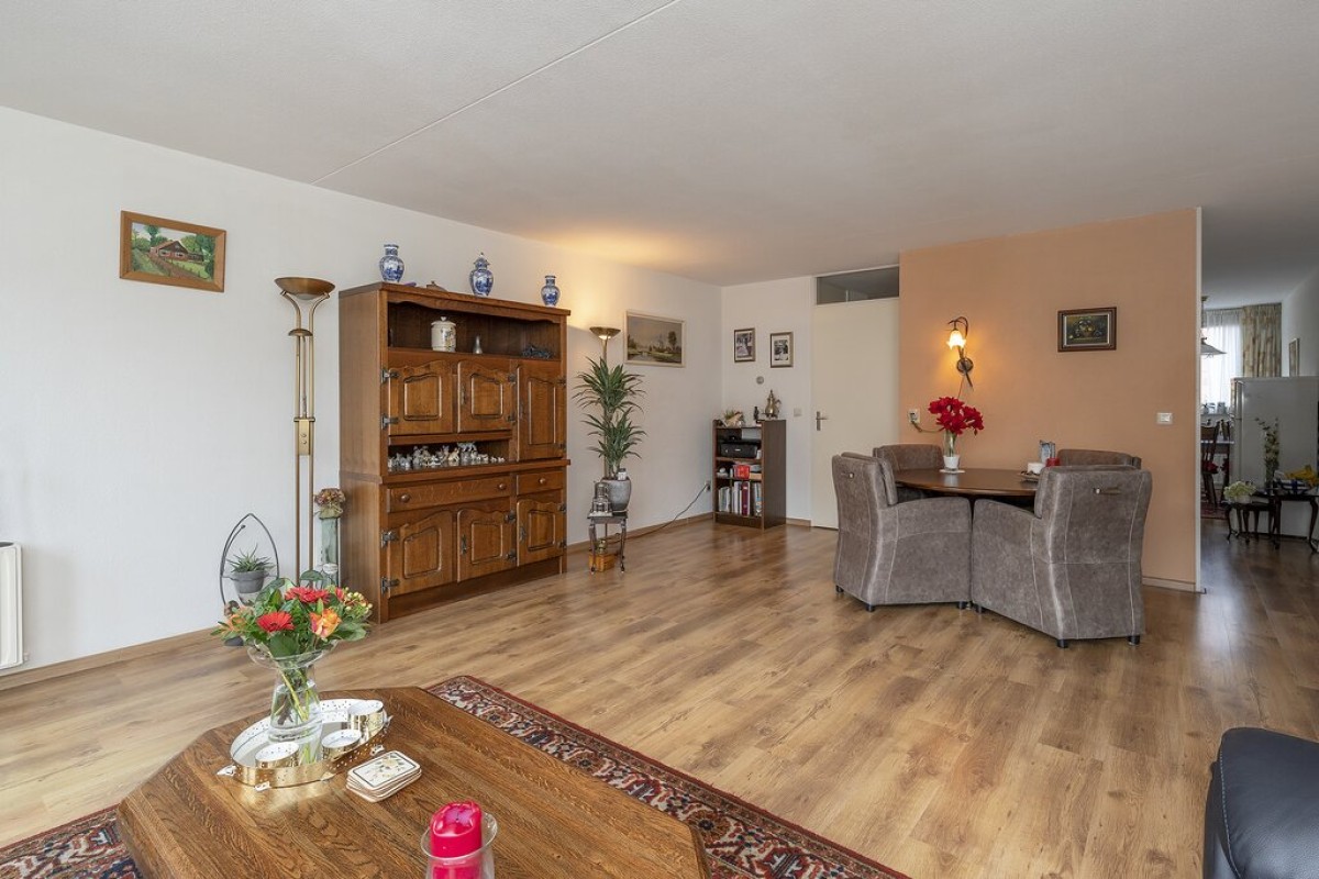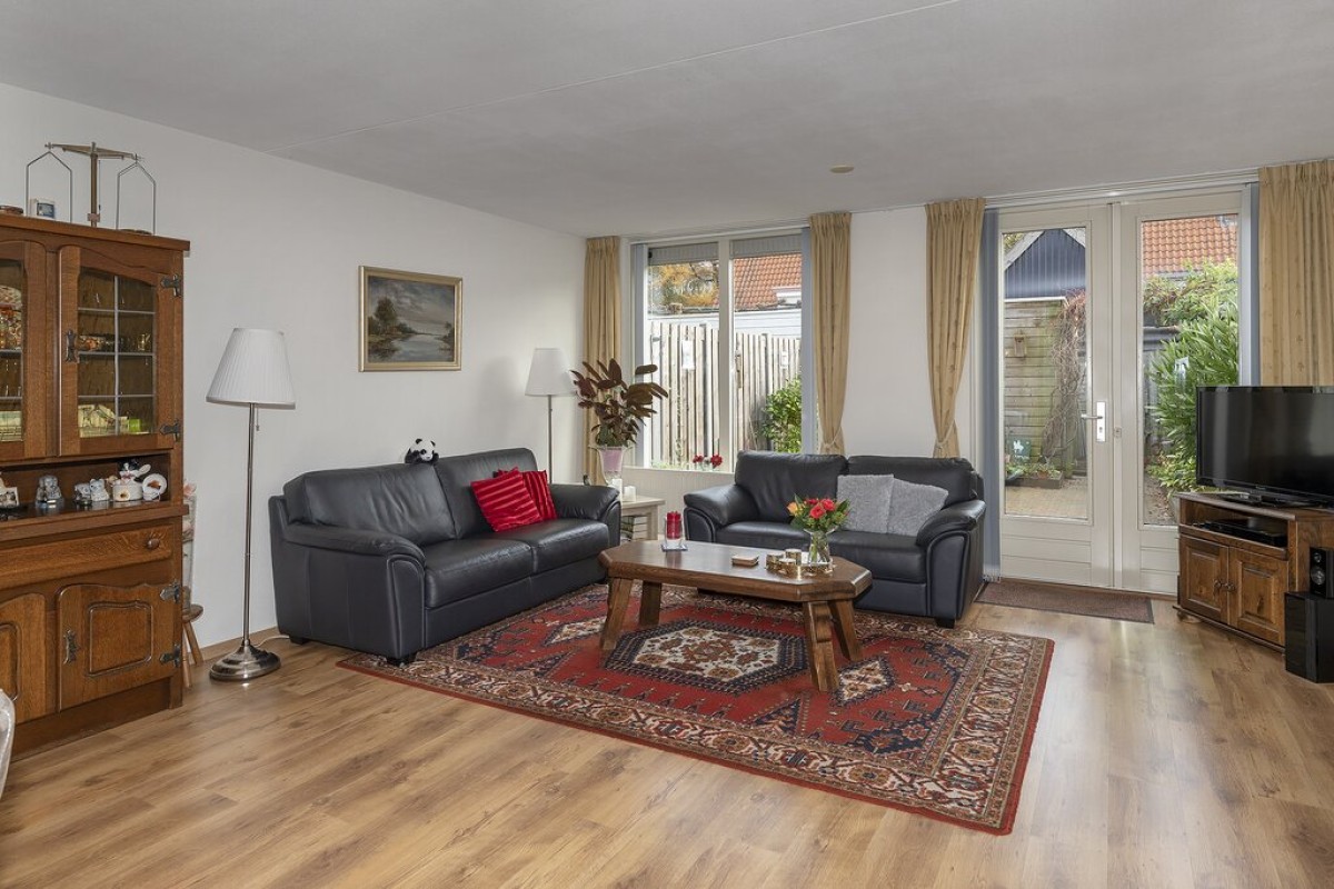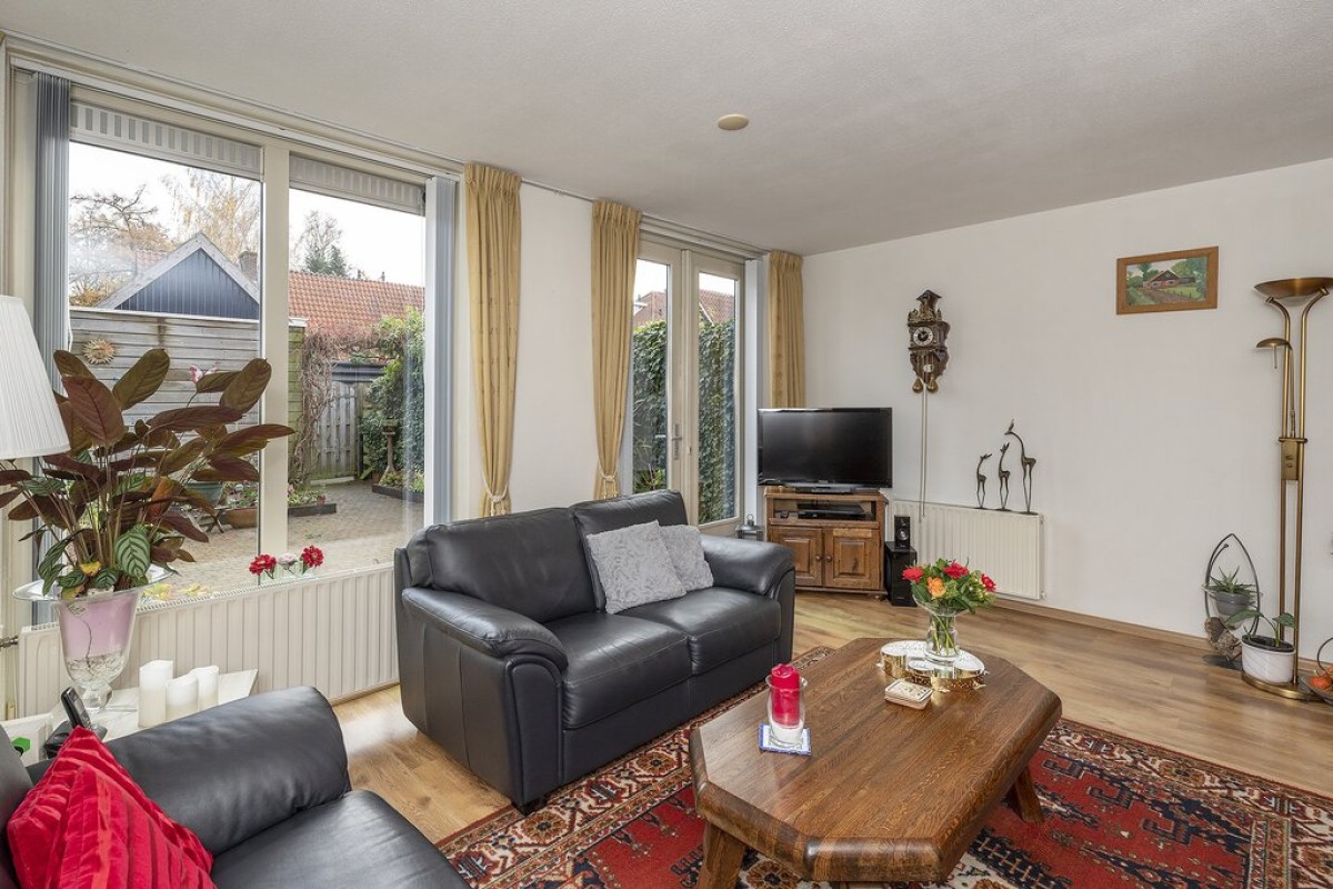Entree, hal met meterkast, trapopgang en je komt binnen in de prachtige ruime woonkamer, deze is voorzien van openslaande deuren naar de achtertuin.