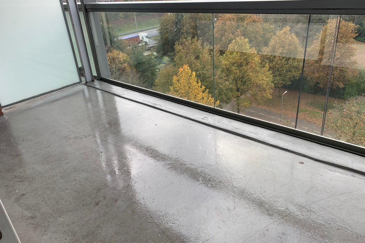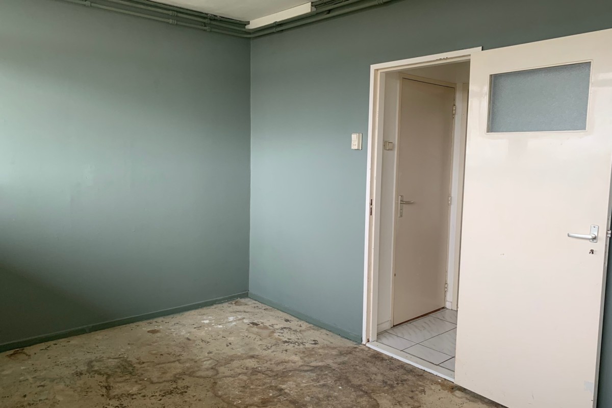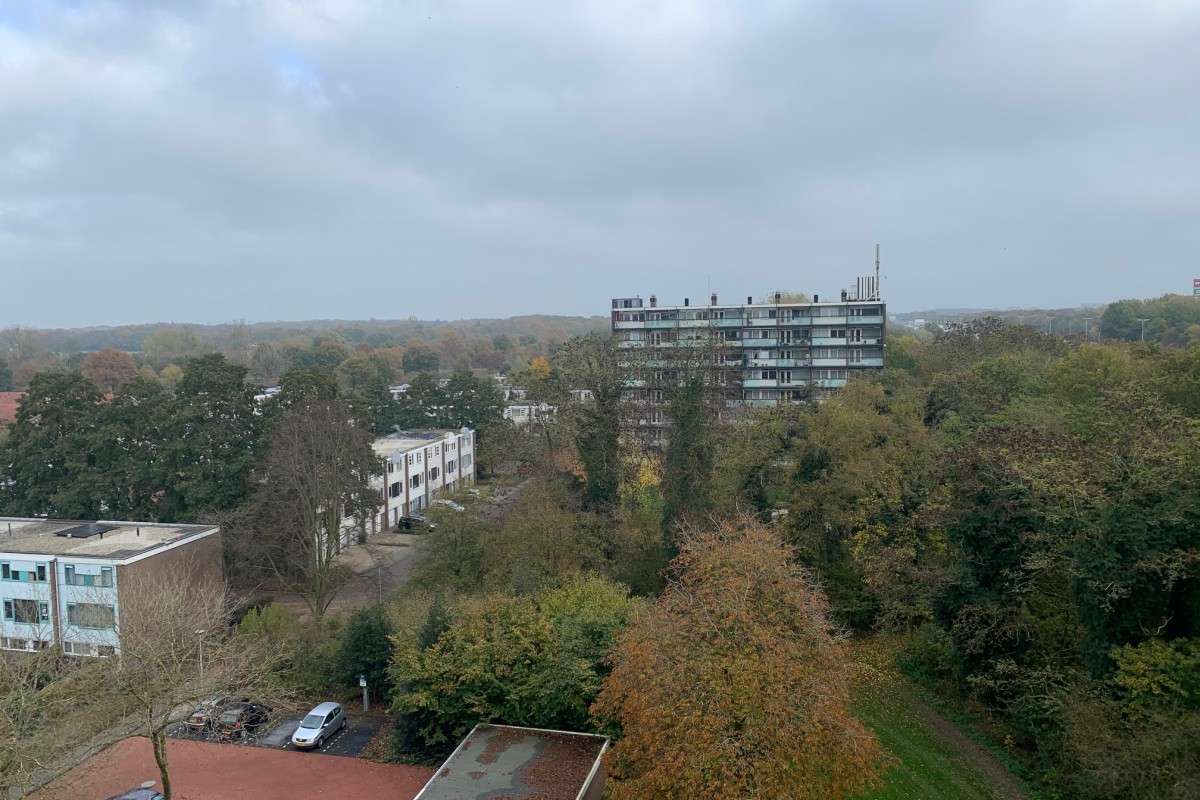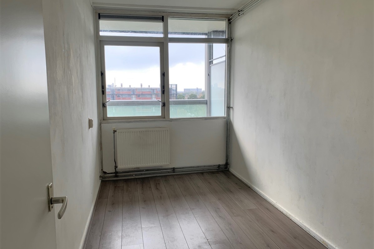 Woonlaag 8: tochtportaal met meterkast, royale woonkamer met toegang naar het riante balkon. Aan de voorzijde bevindt zich de dichte keuken in een rechte opstelling geplaatst. Drie slaapkamers, c.v.-ruimte, toilet, badkamer met douche, toilet en wastafel.