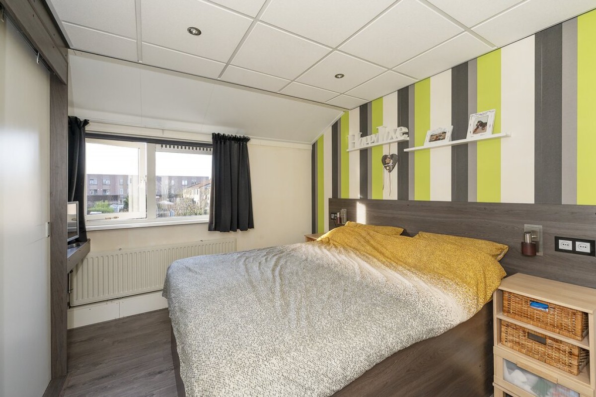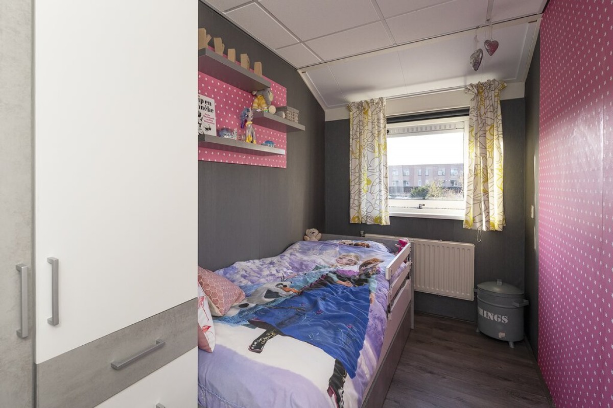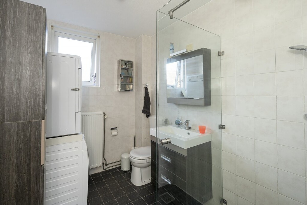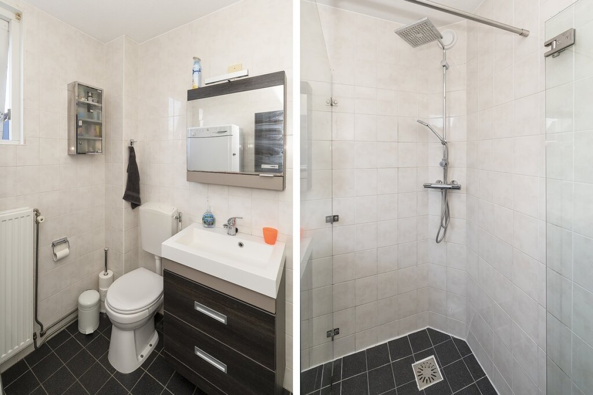 Lees verderDe gehele verdieping is voorzien van een laminaatvloer. De nette badkamer is ingericht met een douchecabine, 2e toilet, wasmeubel en aansluiting voor de wasmachine. Een vaste trap brengt u naar de tweede verdieping