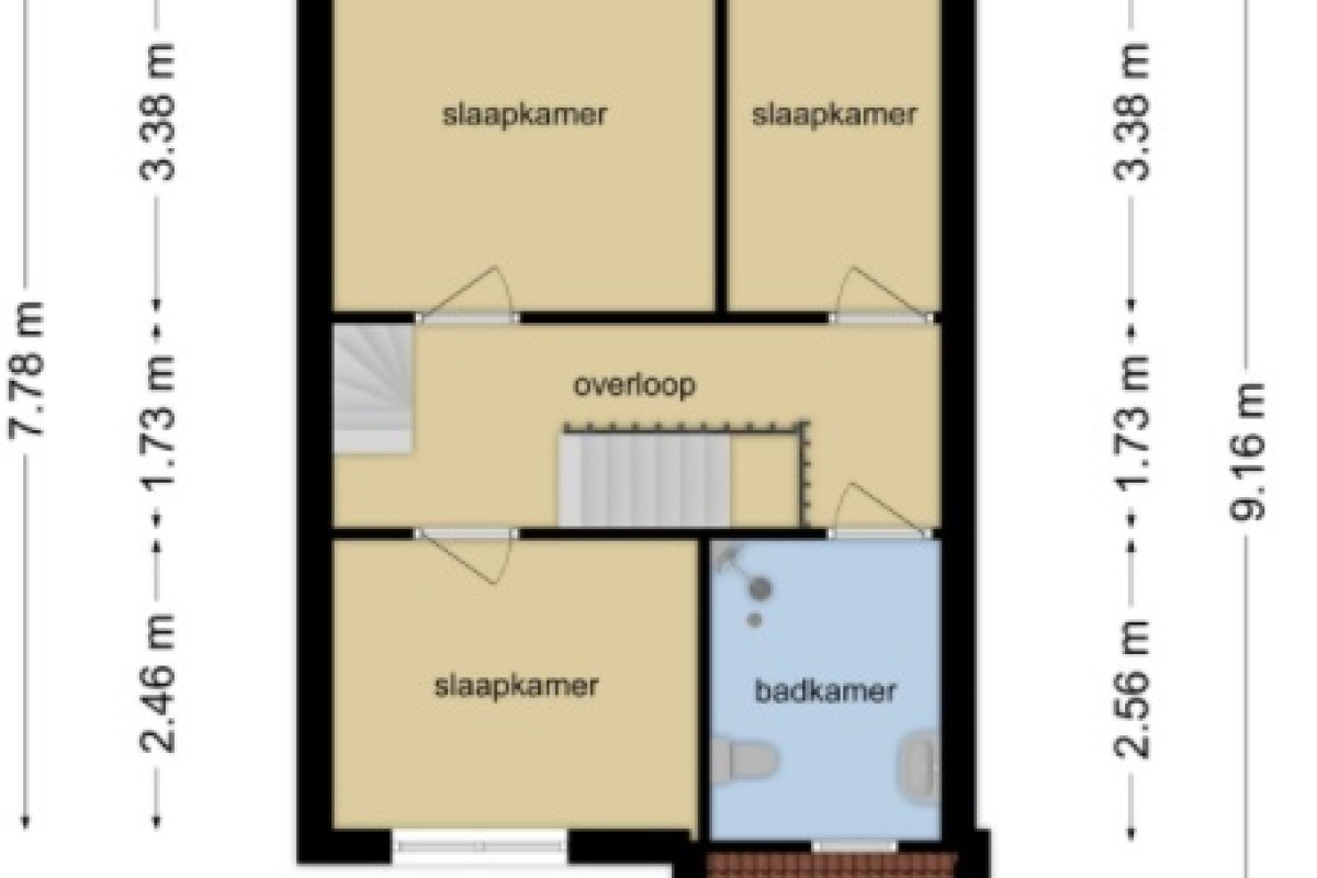 Op deze verdieping bevinden zich drie slaapkamers.