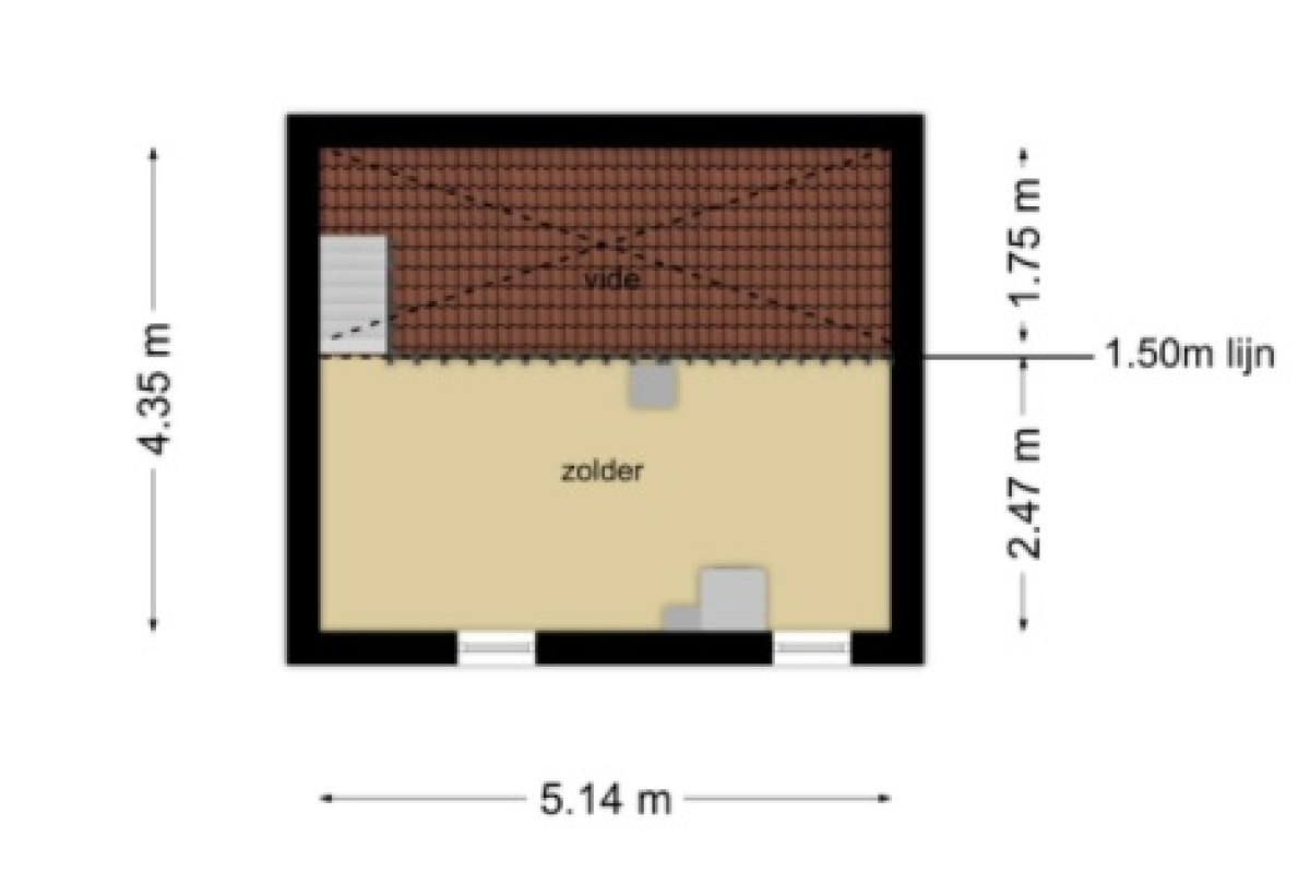 Middels de nieuw geplaatste vaste trap is deze etage bereikbaar. De verdieping is in gebruik als één grote ruimte welke dienst doet als berging en wasruimte. Deze ruimte kan prima omgebouwd worden tot een 4e slaapkamer.