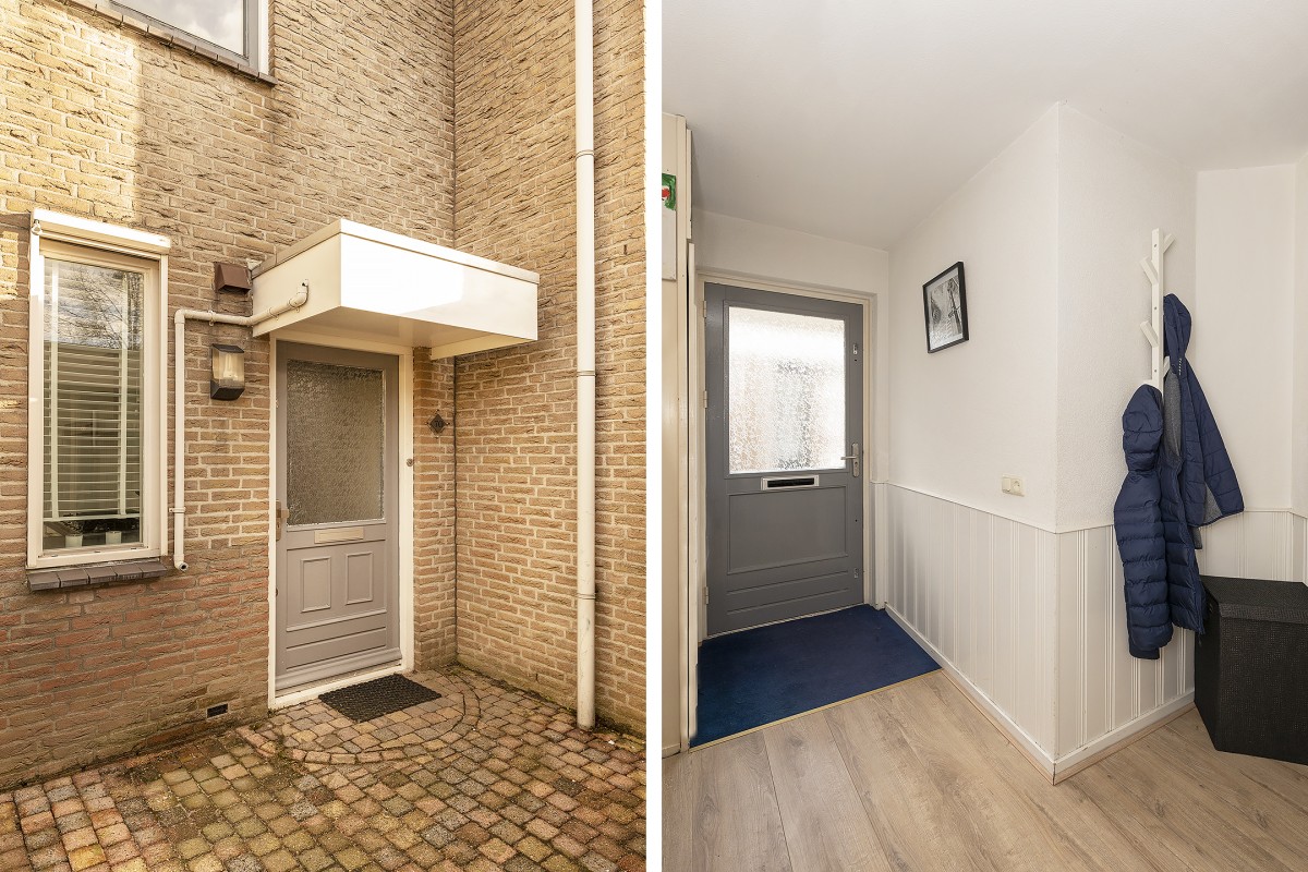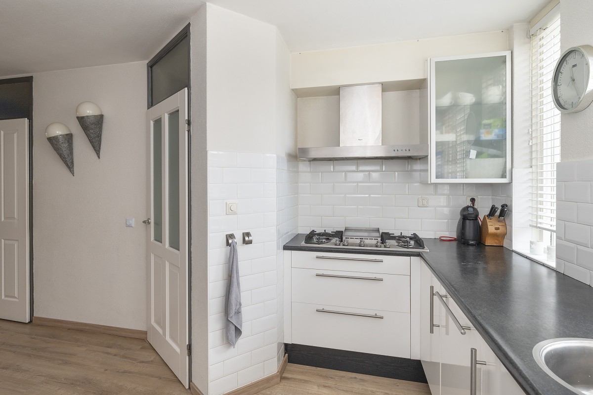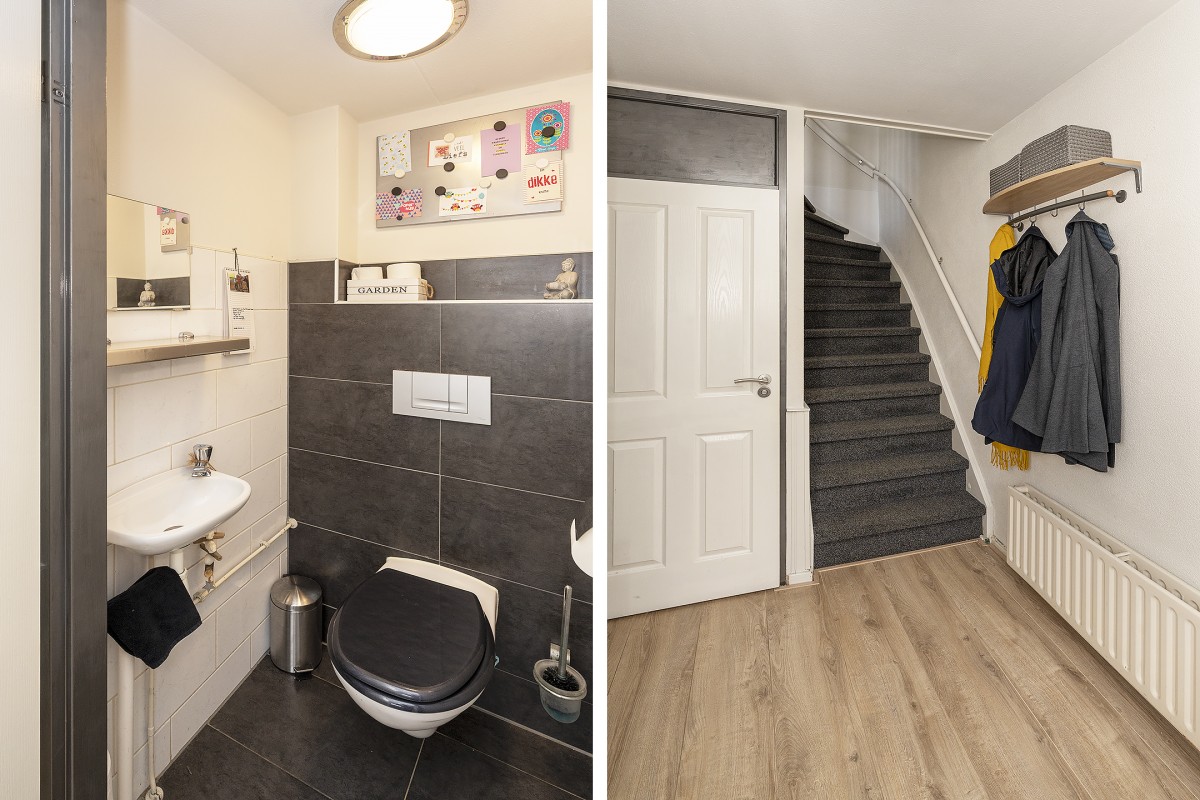 Begane grond: De entree geeft u toegang tot de hal met meterkast, trapopgang en toilet met fonteintje. De tuingerichte woonkamer is voorzien van een laminaatvloer. Vanuit de bank heeft u uitzicht op uw eigen tuin. De keuken bevindt zich aan de voorzijde van de woning en is van alle gemakken voorzien. Aan de achterzijde van de woning is een fraaie overkapping geplaatst over de volledige breedte van de woning waardoor u al snel lekker buiten kan gaan zitten.
