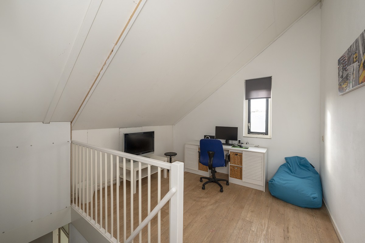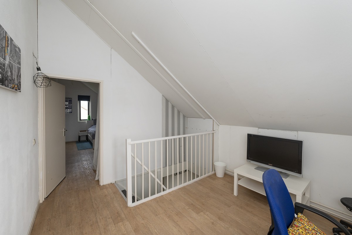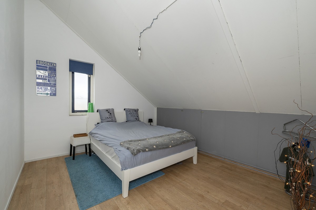 Hier bevindt zich een 4e slaapkamer en een royale bergzolder welke momenteel ingericht is als werkkamer en bergzolder. Centraal op deze verdieping is de cv opstelling alsmede de aansluiting voor het witgoed geplaatst. Achter de knieschotten bevindt zich praktische bergruimte.