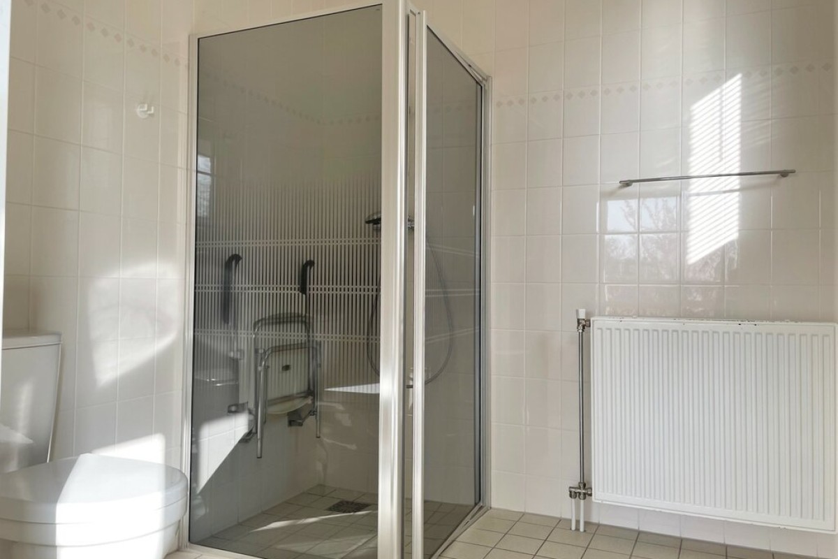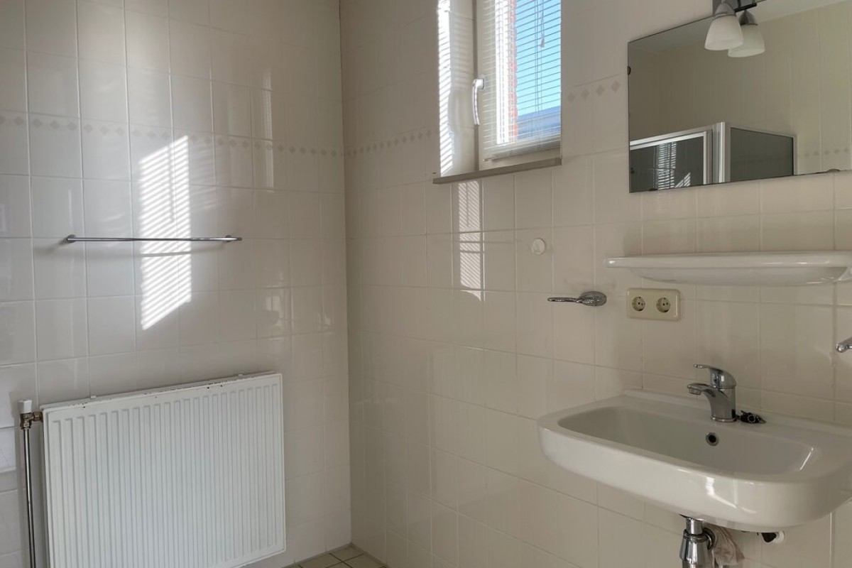 Lees verderTwee ruime slaapkamers waarvan de hoofdslaapkamer toegang geeft tot de badkamer met douchecabine, toilet en wastafel.