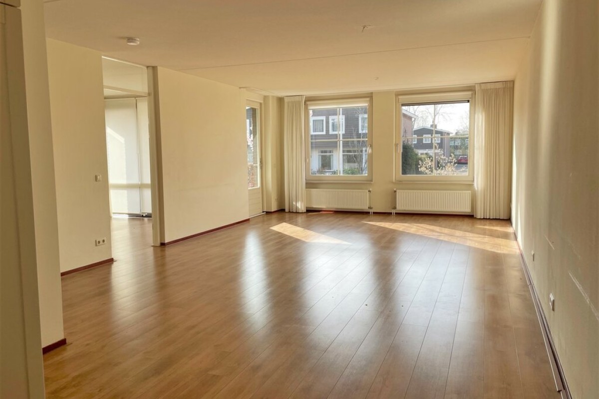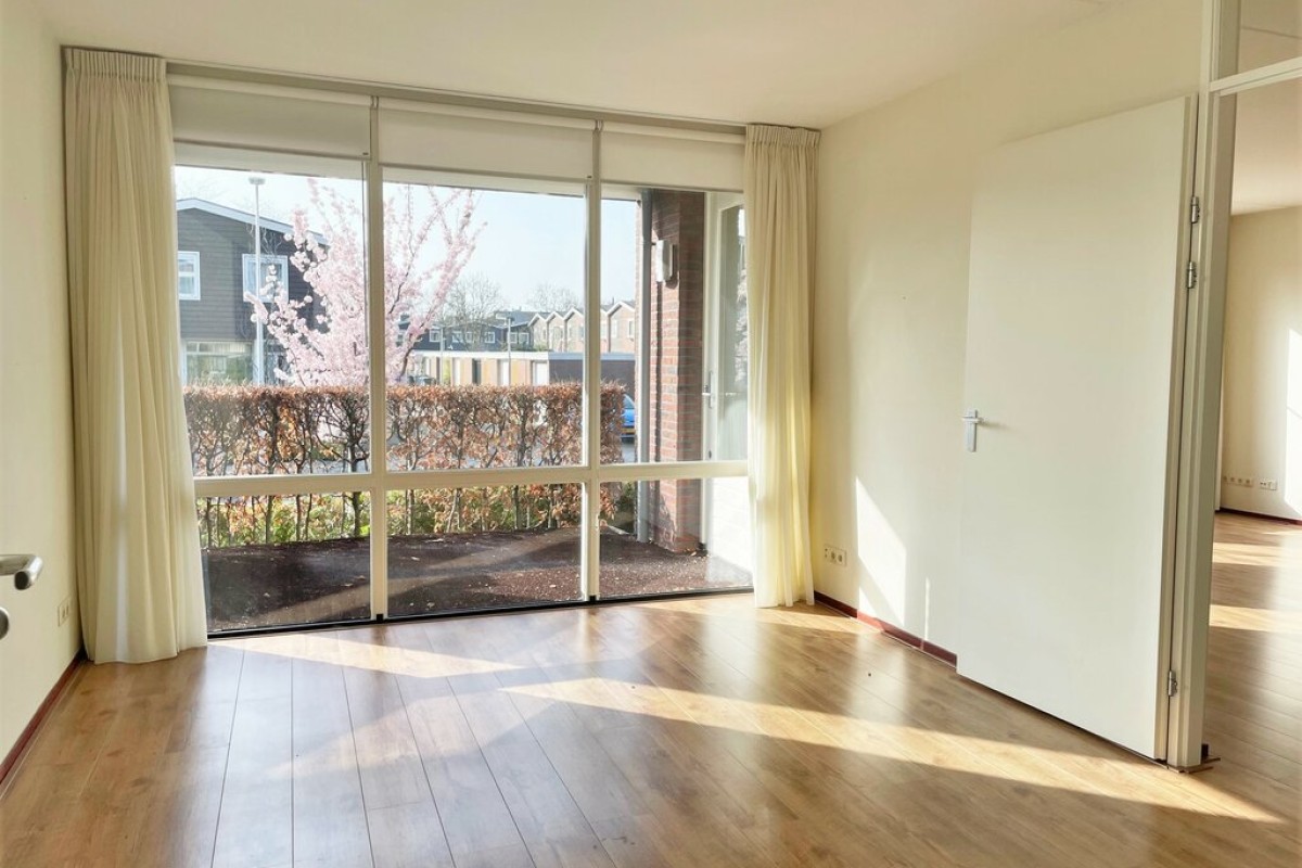 Entree, ruime hal met meterkast, berg-/was-/stookruimte en toilet. Royale woonkamer met toegang tot terras. Keuken in lichte kleurstelling voorzien van inbouwapparatuur.