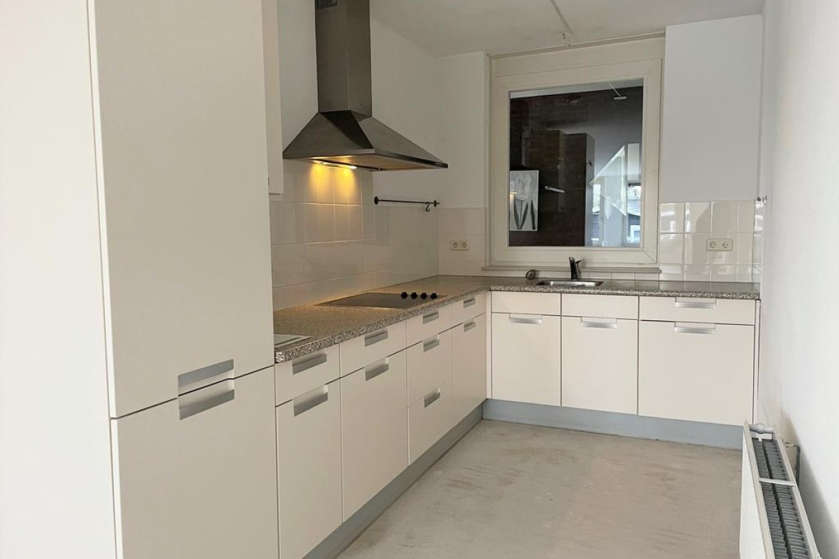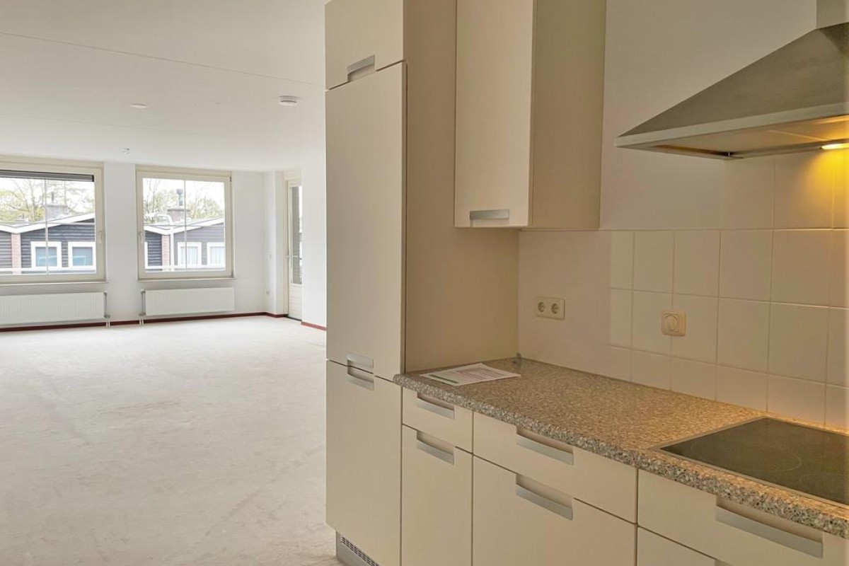 Entree, ruime hal met meterkast, berg-/was-/stookruimte en toilet. Royale woonkamer met toegang tot het balkon welke op het zuidoosten is gelegen. Keuken in lichte kleurstelling voorzien van inbouwapparatuur.