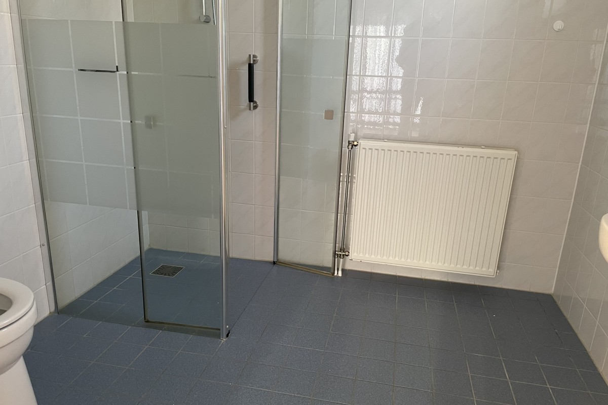 Lees verderTwee ruime slaapkamers waarvan de hoofdslaapkamer toegang geeft tot de badkamer met douchecabine, toilet en wastafel.