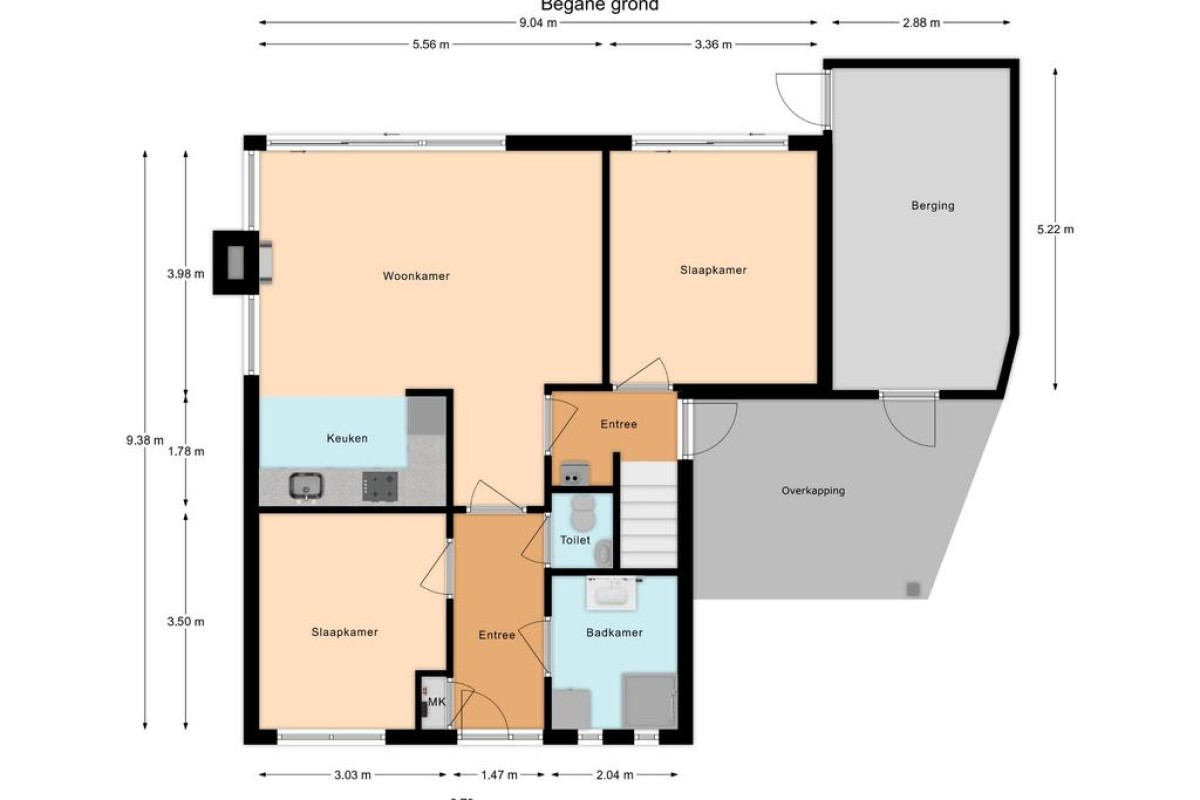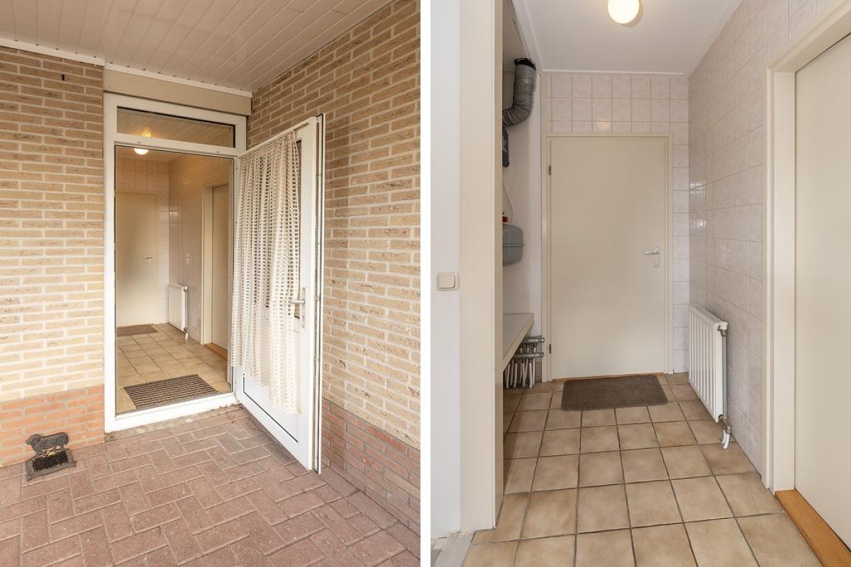 De woning is toegankelijk vanuit de carport ( zij zijde van de woning ) en de voordeur. Vanuit de voordeur komt u in de hal waar u de eerste slaapkamer aan de voorzijde van de woning treft apart toilet alsmede de badkamer welke is voorzien van wastafel, douche.