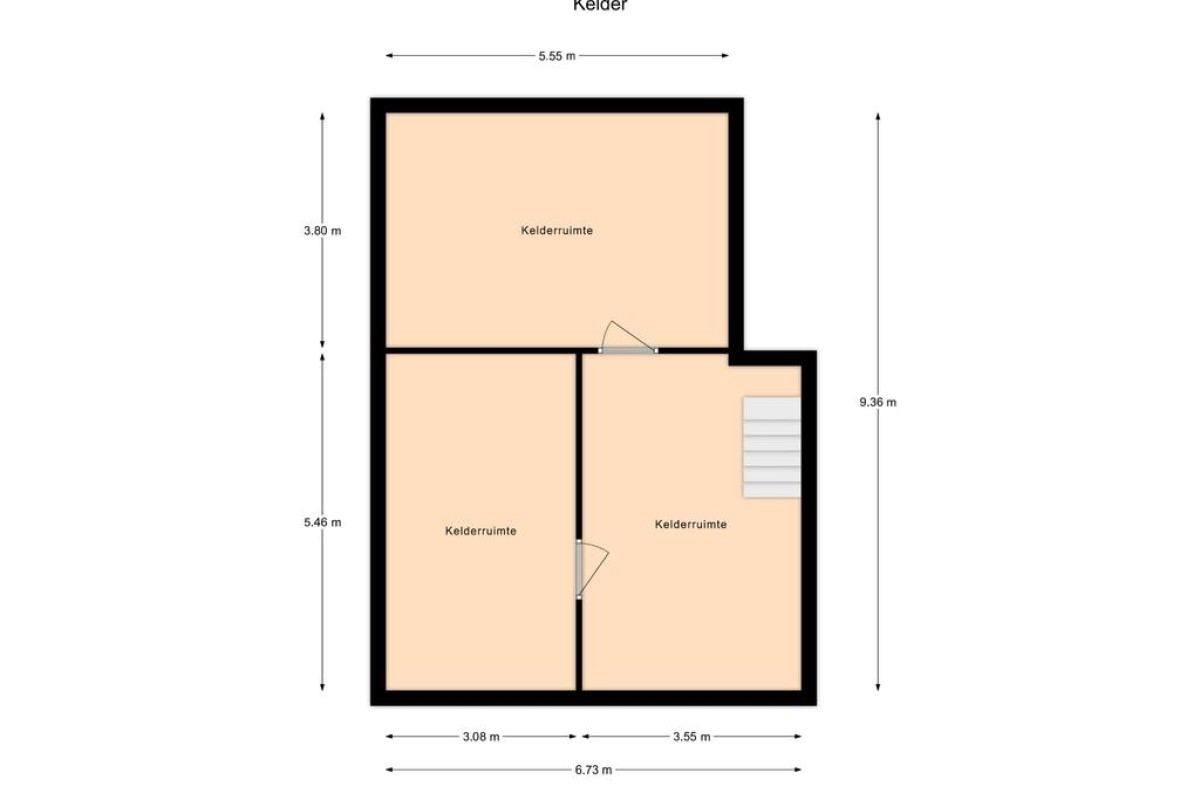 De onderverdieping van ca 58 m2 heeft twee aparte kamers en riante overloop.