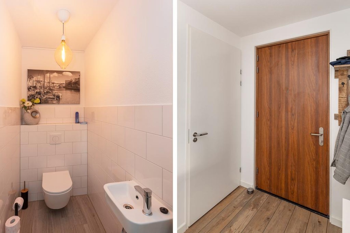 Lees verderLuxe badkamer welke volledig is betegeld voorzien van een inloopdouche en badmeubel. Aparte ruimte voor de witgoedopstelling. Het appartement heeft een separaat toilet.