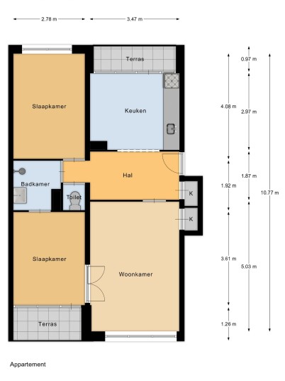 Lees verderEen prettige indeling die zich uitstekend leent voor een gezellige zit- en eethoek. Extra opbergruimte vindt u in de twee handige kasten in de woonkamer. Grenzend aan de woonkamer - aan de voorzijde van het appartement - ligt de halfopen keuken met aansluiting voor inductie. Vanuit de keuken heeft u toegang tot het eerste balkon, gelegen op het noordwesten, een fijne plek om te zitten in de late middagzon.
