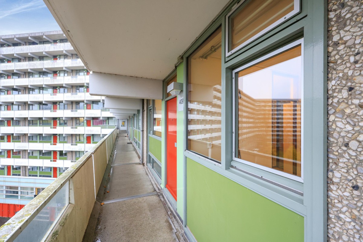 Via het gemeenschappelijke trappenhuis neemt u de lift naar de vierde verdieping, waarna u via een gedeelde galerij bij uw appartement komt.