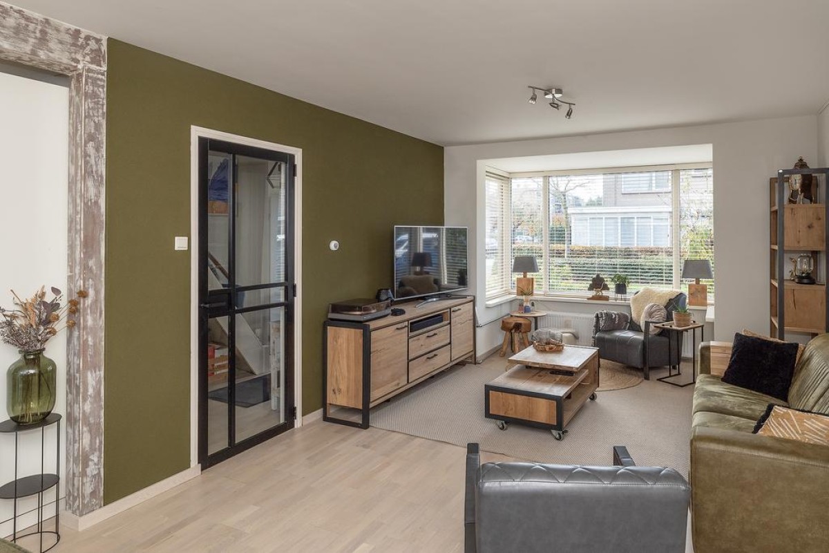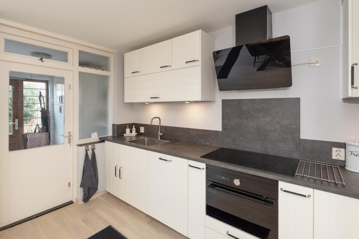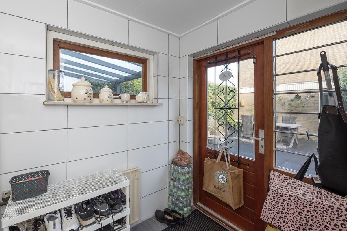 Begane grond: hal met meterkast, provisiekast en toilet, woonkamer is vergroot door de uitbouw aan de voorzijde, halfopen keuken voorzien van inbouwapparatuur en een aangebouwde bijkeuken met doorgang naar de achtertuin. Aan de achterzijde kunt u eveneens de tuin bereiken middels een fraaie schuifpui.