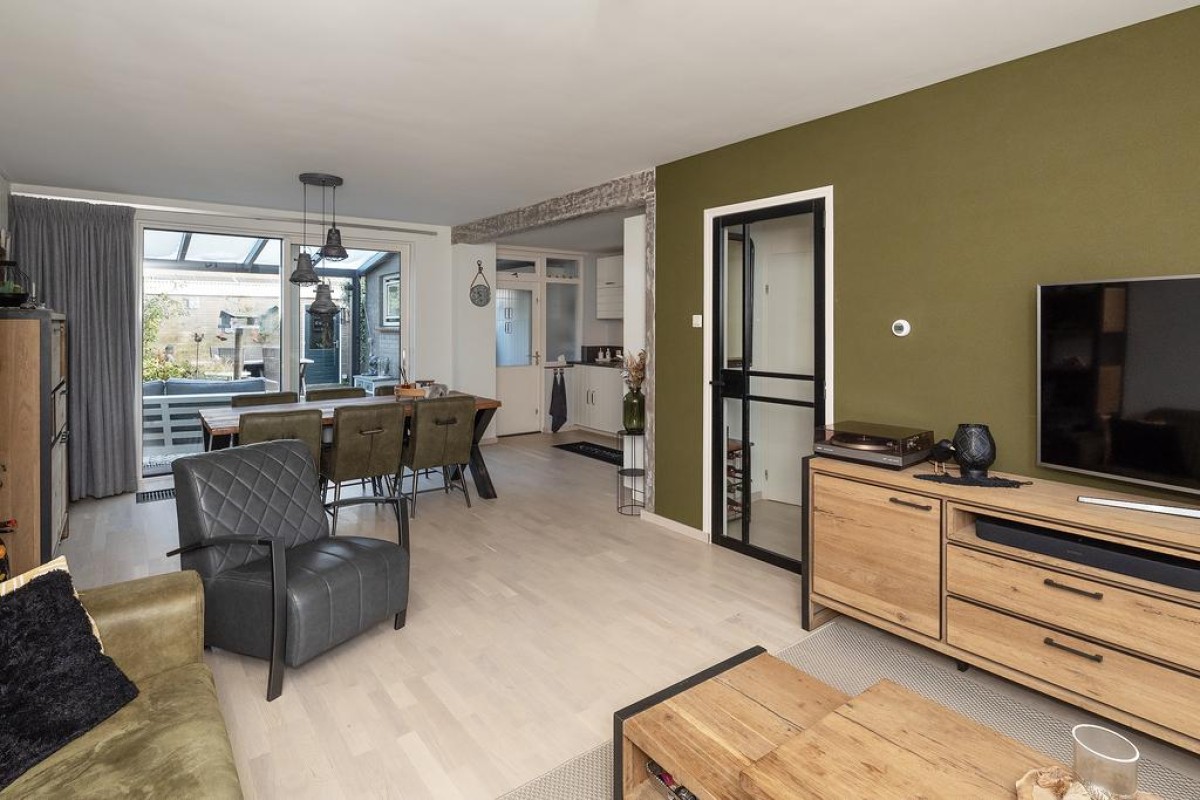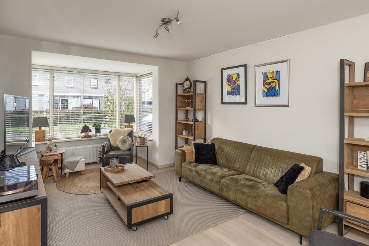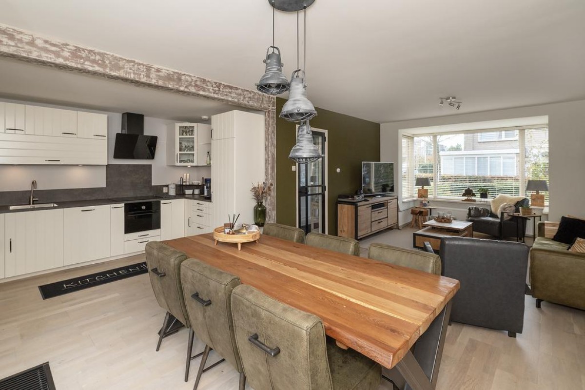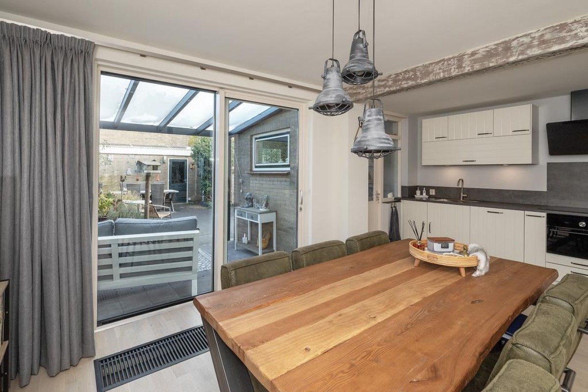 Begane grond: hal met meterkast, provisiekast en toilet, woonkamer is vergroot door de uitbouw aan de voorzijde, halfopen keuken voorzien van inbouwapparatuur en een aangebouwde bijkeuken met doorgang naar de achtertuin. Aan de achterzijde kunt u eveneens de tuin bereiken middels een fraaie schuifpui.