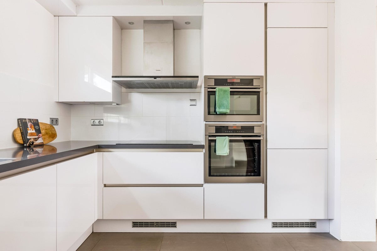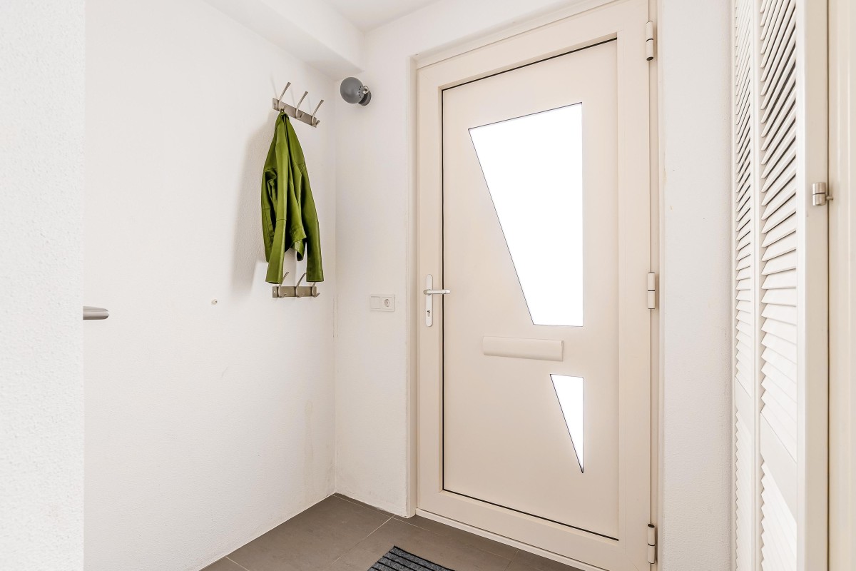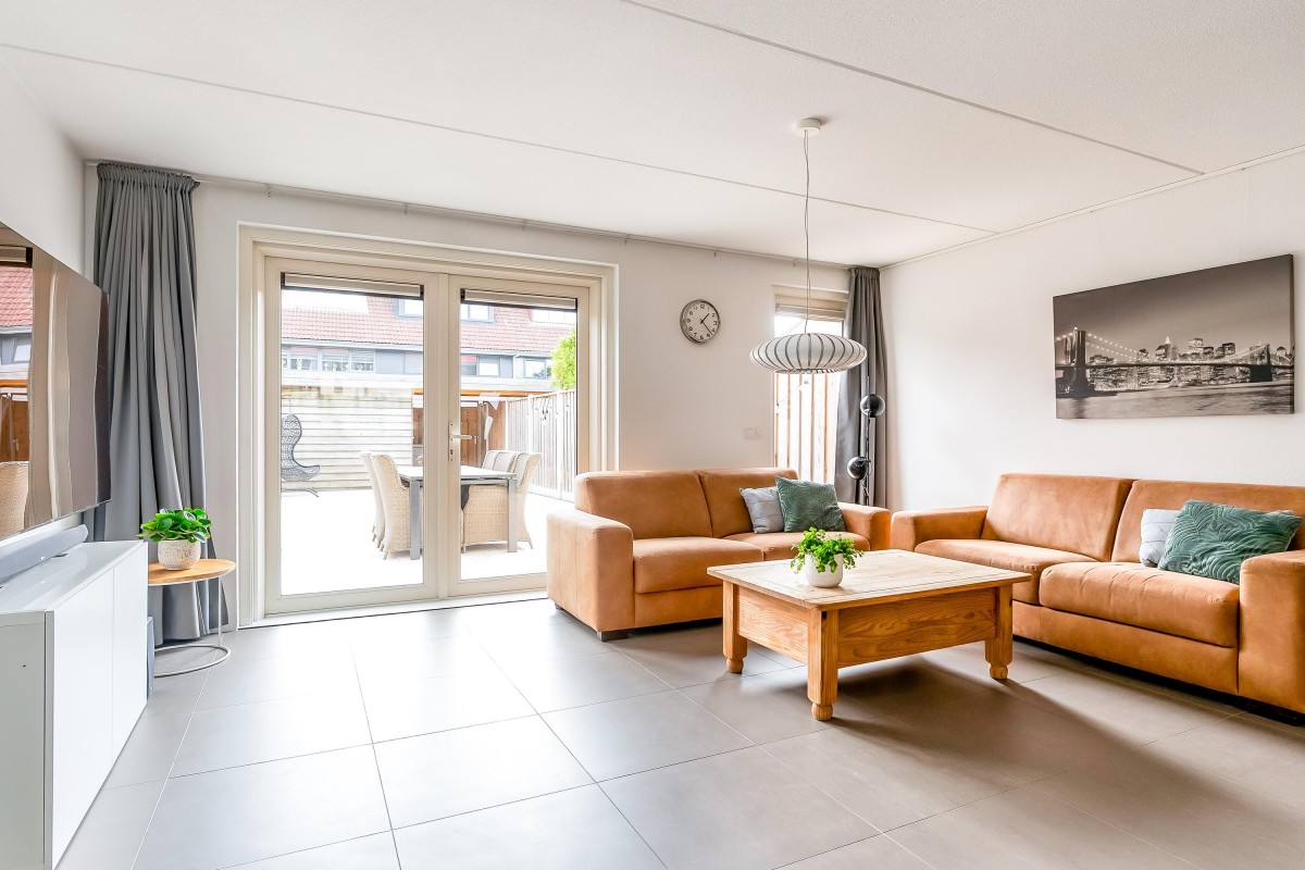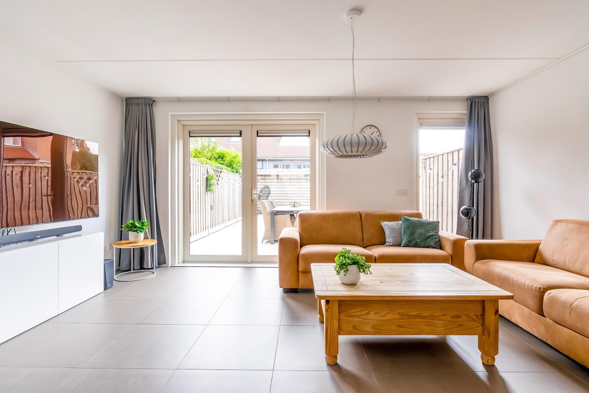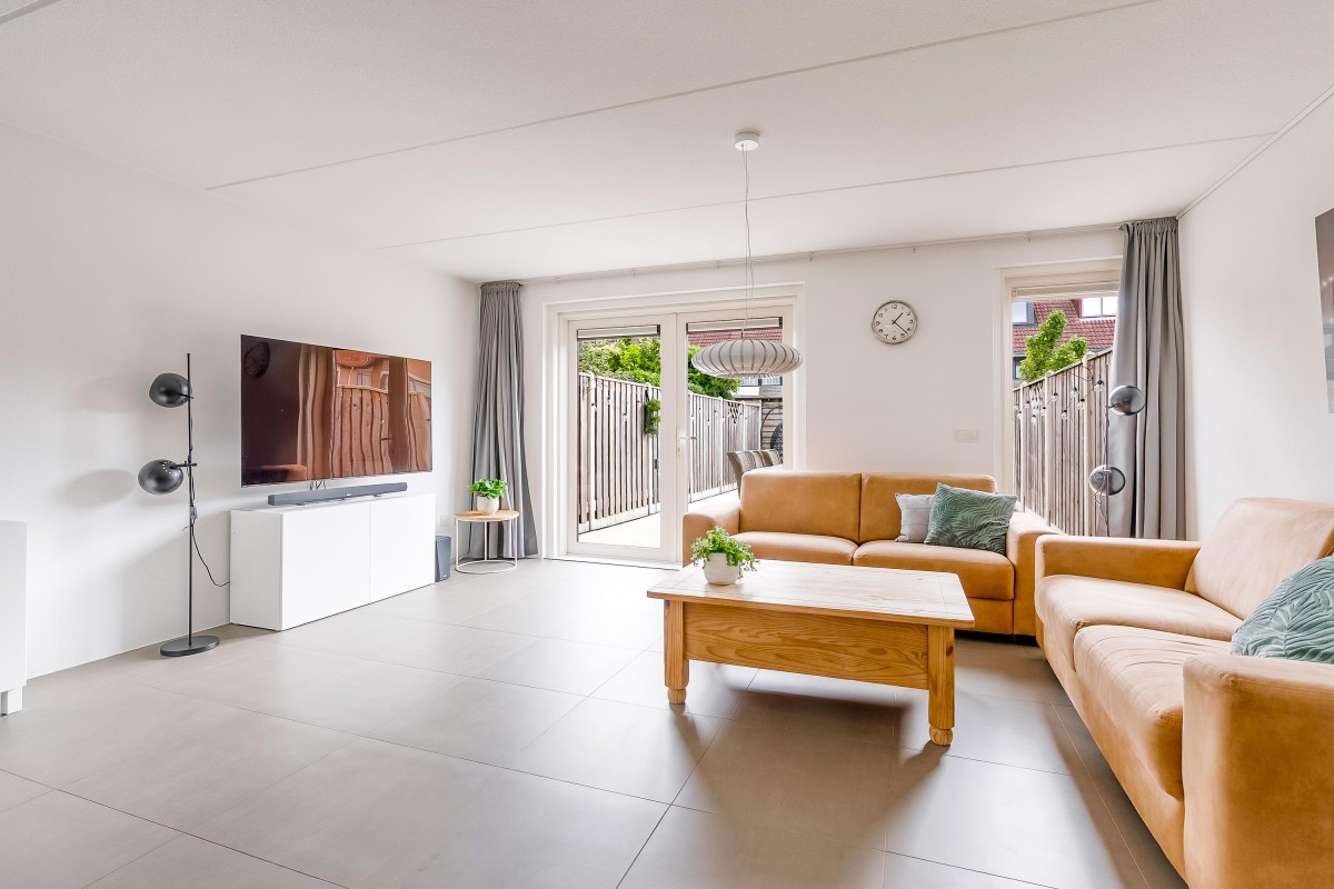 Vanuit de lichte hal met meterkast en modern toilet stap je de tuingerichte woonkamer in. De woonkamer met open keuken en trapopgang naar boven die is voorzien van een moderne tegelvloer met vloerverwarming, grote ramen en openslaande deuren, waardoor het daglicht rijkelijk naar binnen stroomt. Aan de voorzijde vind je de moderne open keuken (vernieuwd in 2017), compleet met inbouwapparatuur zoals een inductiekookplaat, vaatwasser, koel/vries combinatie, oven, combimagnetron, afzuigkap, hoekkast met 'Le Mans' systeem en voldoende werk- en kastruimte.