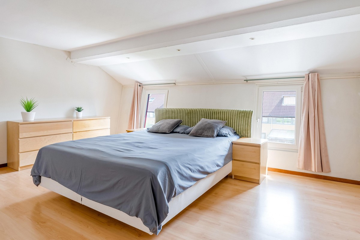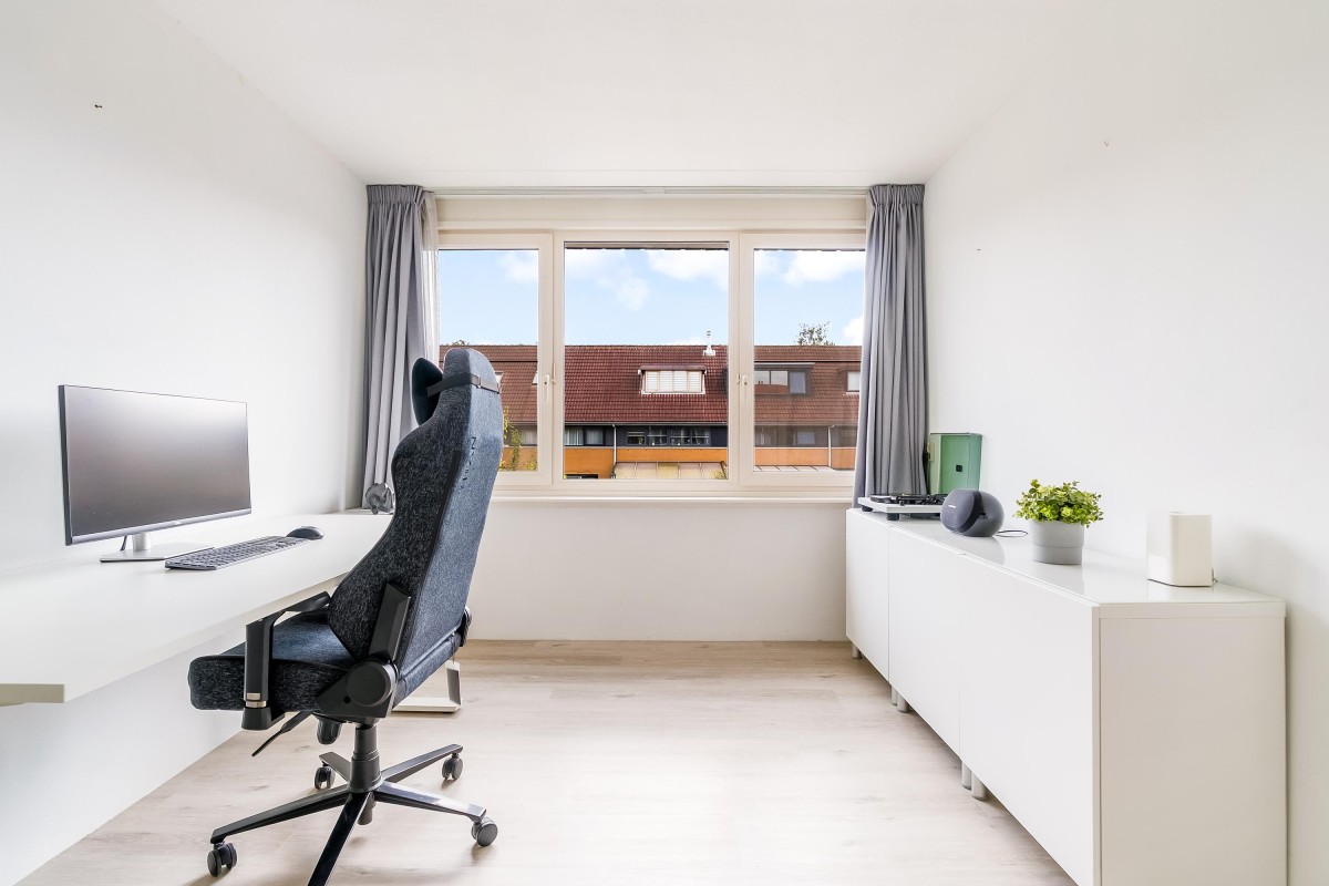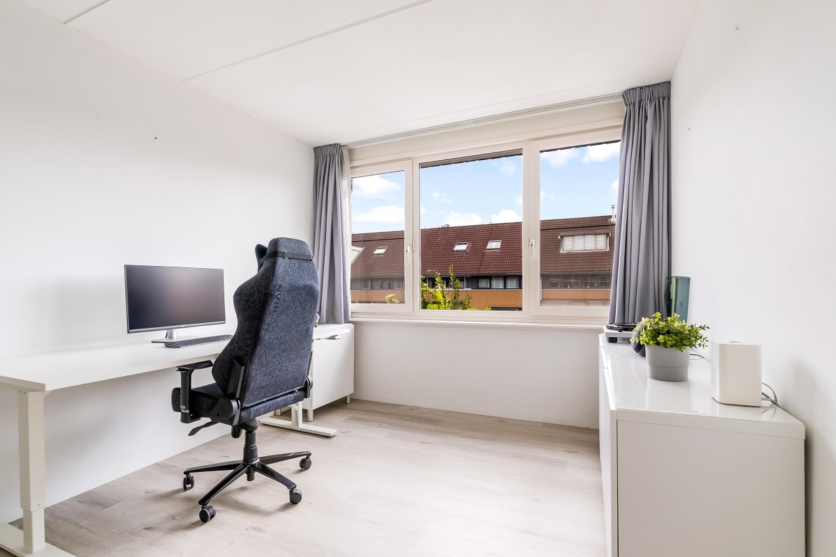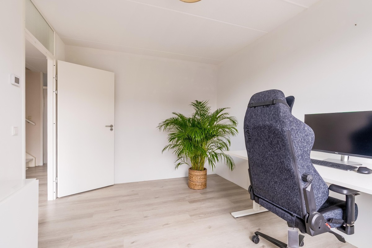 De vaste trap brengt je naar een volwaardige en verrassend ruime zolderverdieping met volwaardige slaapkamer, die dankzij de speelse ramen een bijzonder karakter heeft. Deze verdieping kan ook uitstekend gebruikt worden als werk- of hobbyruimte. Aan de voorzijde bevindt zich de praktische wasruimte met mogelijkheid tot het opbergen van spullen.
