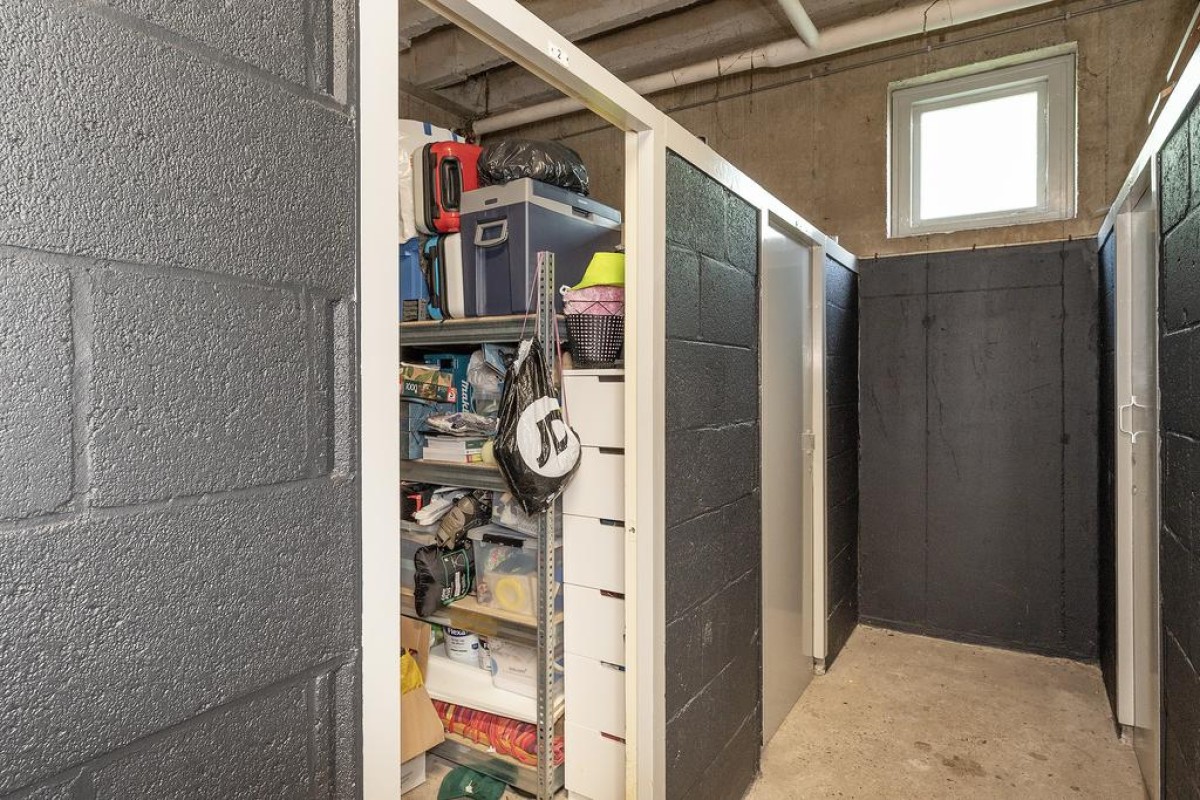 Centrale hal met intercominstallatie en brievenbus, gang met trappenhuis en lift, gemeenschappelijke fietsenberging en een aparte eigen berging.