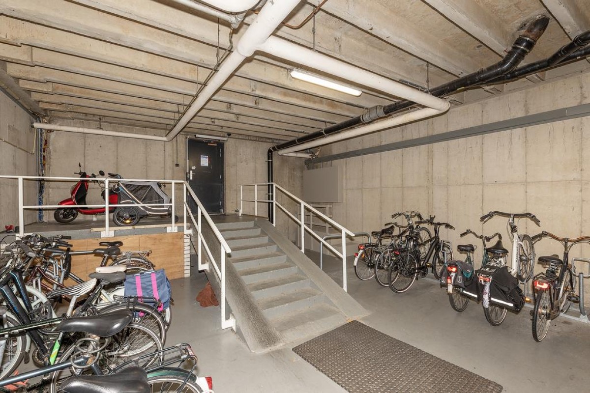 Centrale hal met intercominstallatie en brievenbus, gang met trappenhuis en lift, gemeenschappelijke fietsenberging en een aparte eigen (fietsen)berging.