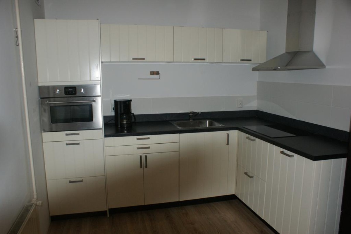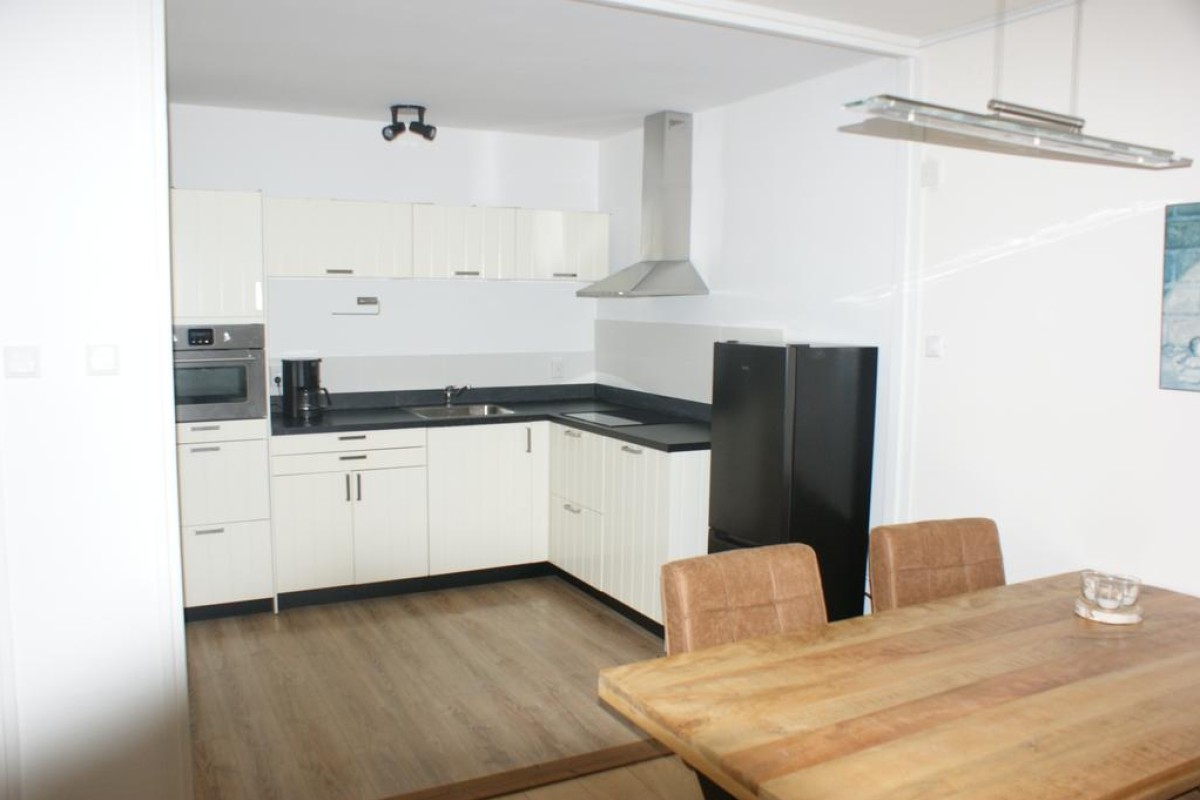 De woonkamer is ruim en heeft een nette laminaatvloer. De open keuken heeft een hoekopstelling met nieuwe aanrechtbladen (2023), inductiekookplaat (2023), afzuigkap (2023), vaatwasser en oven/magnetron.
