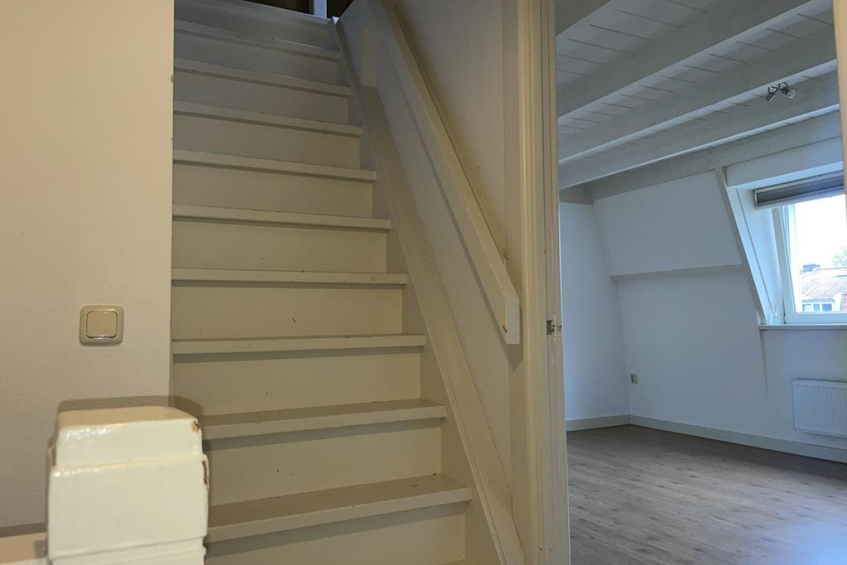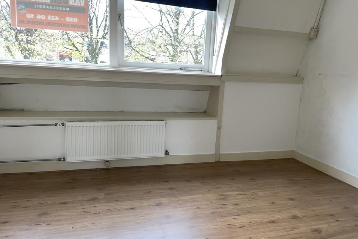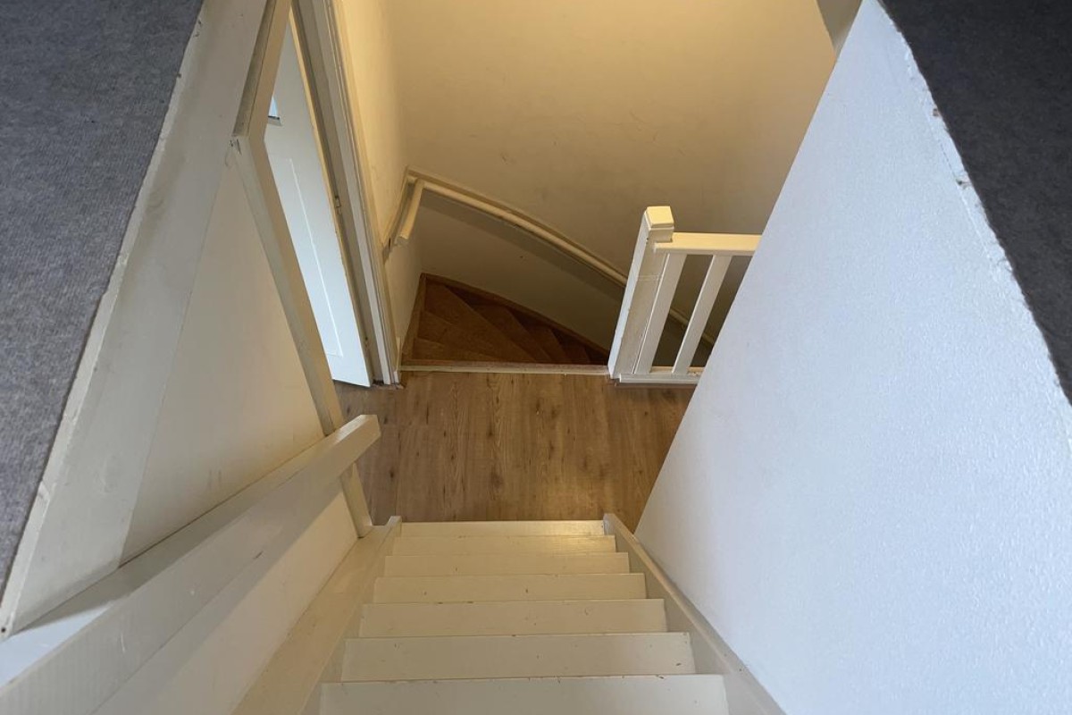 Van origine is deze etage voorzien van 3 slaapkamers momenteel zijn de twee slaapkamers aan de achterzijde bijelkaar gevoegd zodat een gezellige living is ontstaan ook hier geldt dat op eenvoudige wijze dit weer terug gebracht kan worden. Royale slaapkamer aan de voorzijde tussenhal met badkamer welke is voorzien van een wastafel en douche. Op de overloop treft u een separaat toilet en de vaste trap naar de zolder.