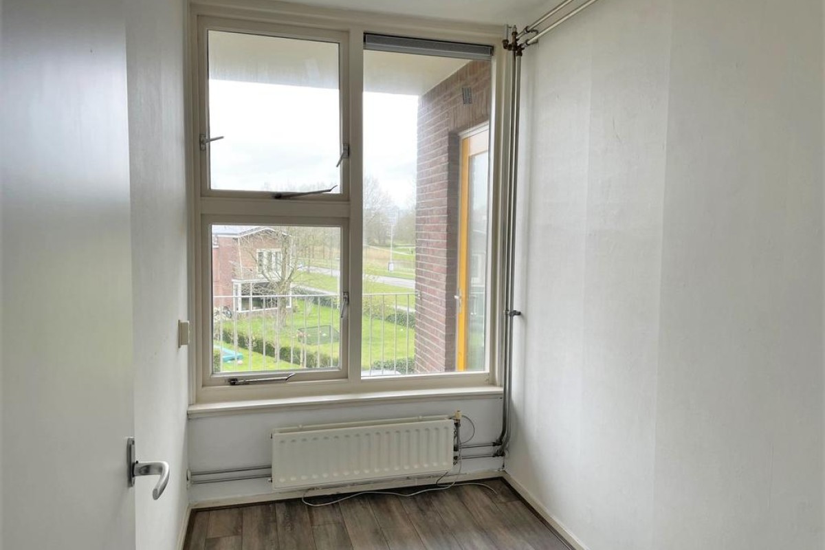 Vanuit de woonkamer is er een tussenhal bereikbaar met toegang tot de 3 slaapkamers (11, 8 en 5m2), separaat toilet en de badkamer. De grote slaapkamer is gelegen aan de achterzijde . De andere slaapkamers zijn gelegen aan de voorzijde van het appartement. De badkamer is voorzien van een douchegelegenheid en een wastafel.