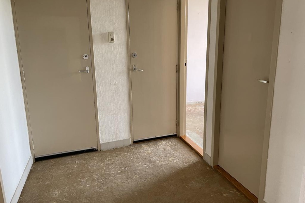 Vanuit de woonkamer is er een tussenhal bereikbaar met toegang tot de 3 slaapkamers (11, 8 en 5m2), separaat toilet en de badkamer. De grote slaapkamer is gelegen aan de achterzijde . De andere slaapkamers zijn gelegen aan de voorzijde van het appartement. De badkamer is voorzien van een douchegelegenheid en een wastafel.
