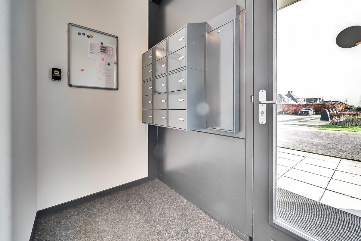 Entree met bellentableau en in de centrale hal bevinden zich de postvakken, het trappenhuis, fietsenberging, technische ruimten en de lift.
