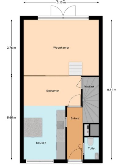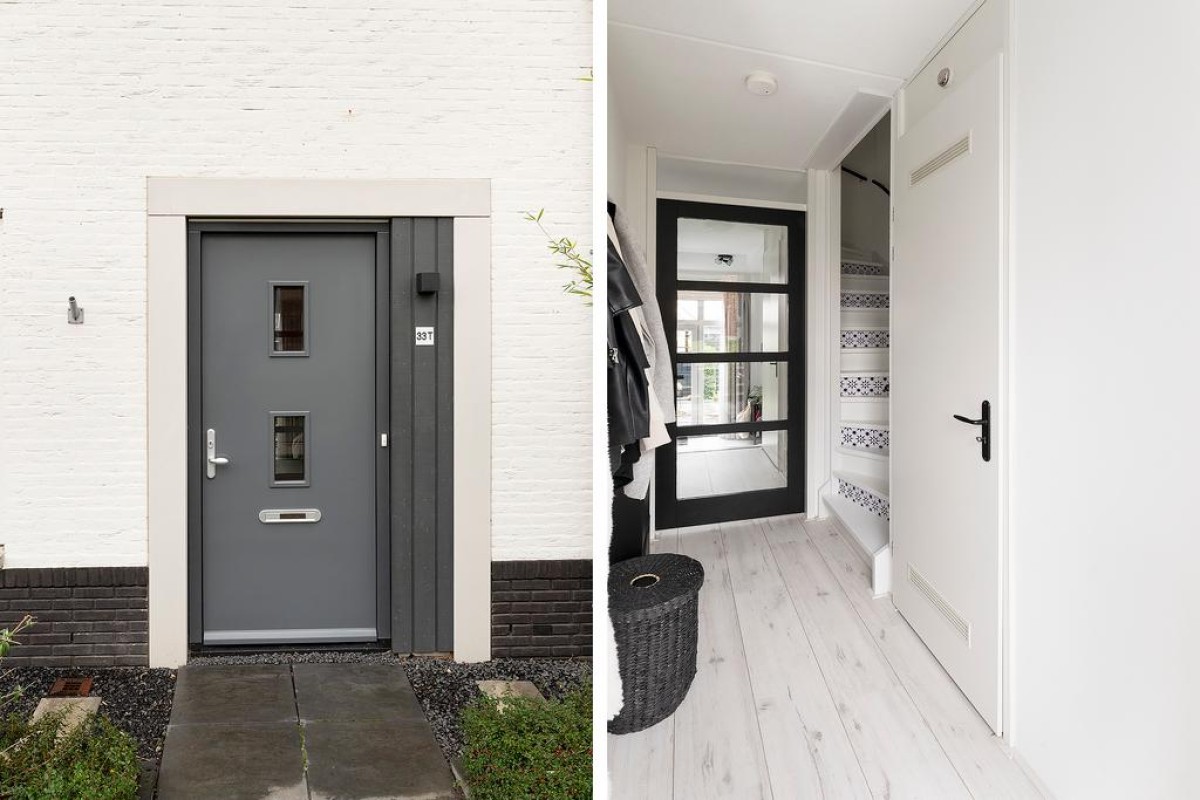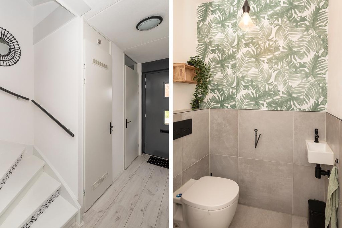 Entree, hal met hangend toilet, trapopgang en doorgang naar de woonkeuken en woonkamer.