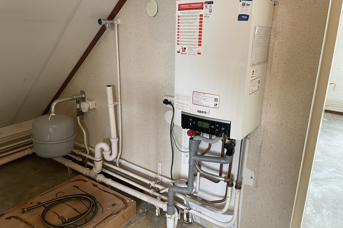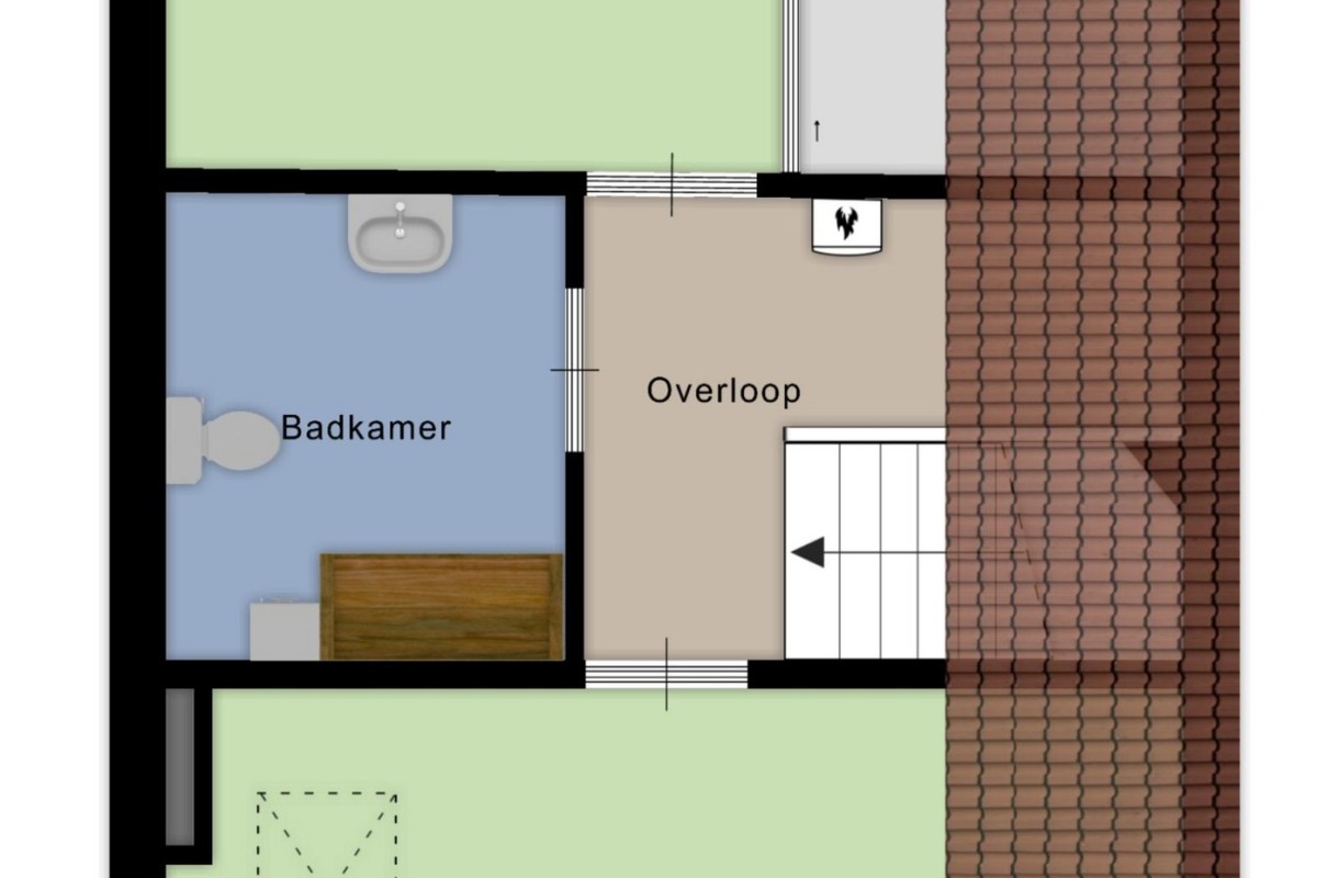 Op de verdieping treft u een ruime overloop, twee grote slaapkamers en een badkamer met douche, wastafel en aansluiting voor wasmachine en wasdroger. Middels een vlizotrap is de grote vliering bereikbaar.