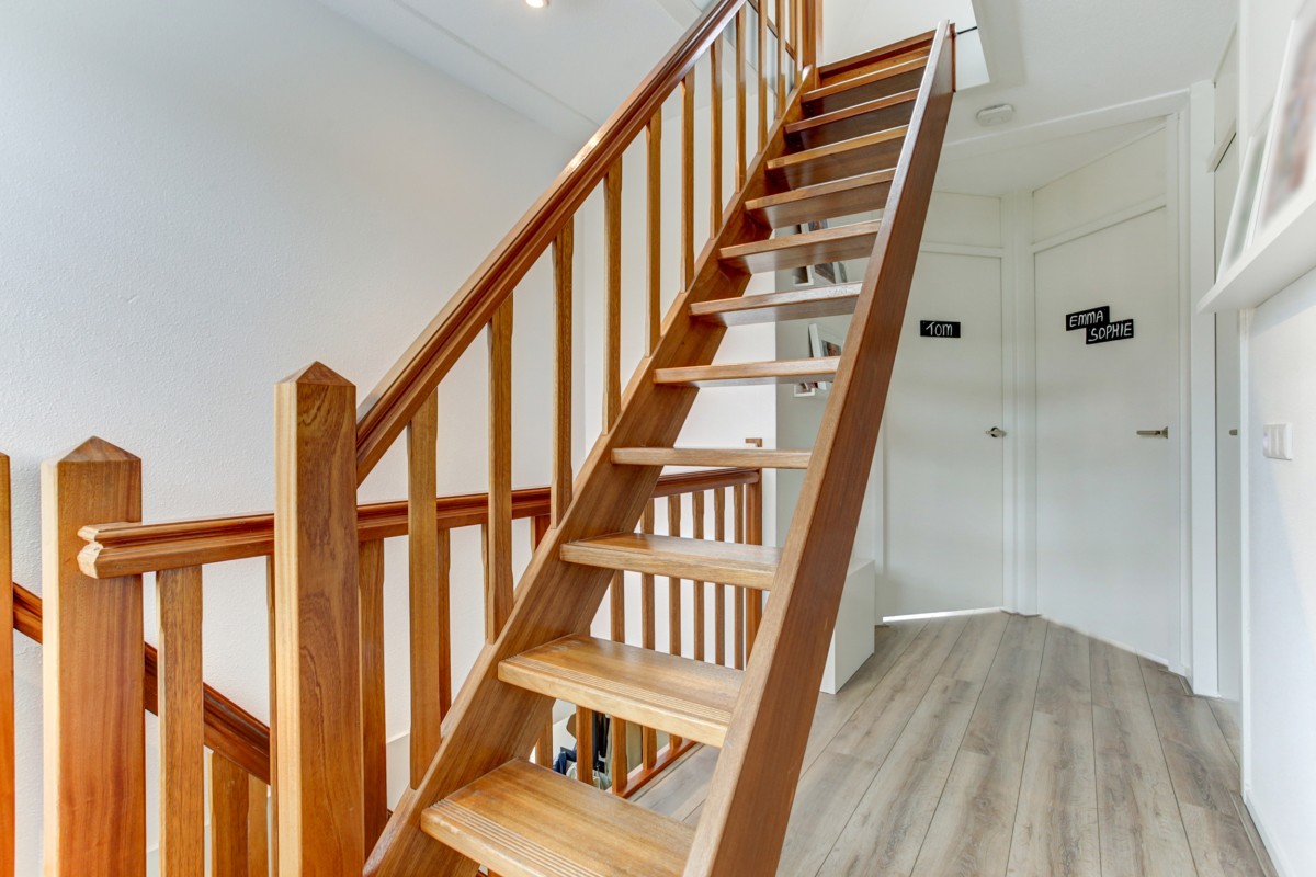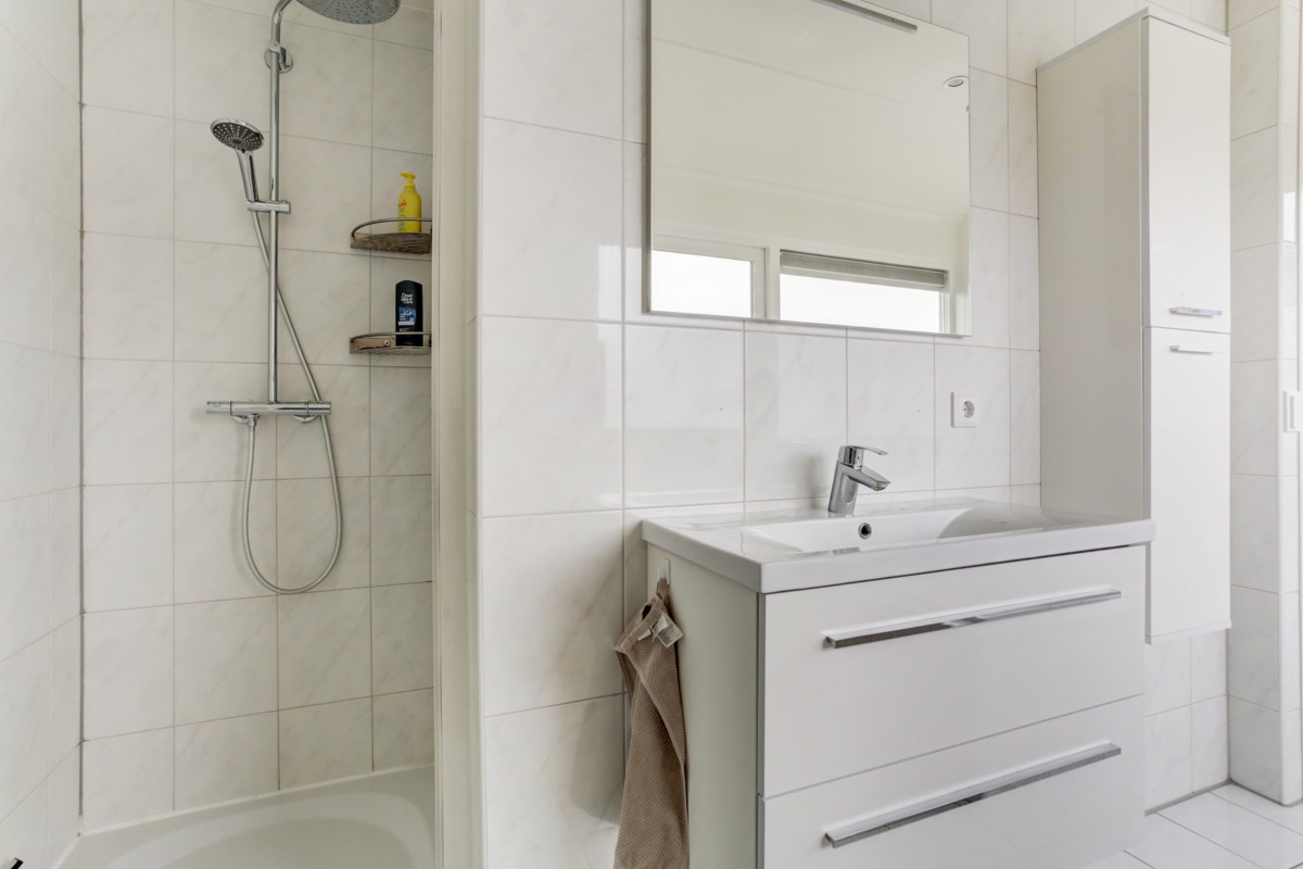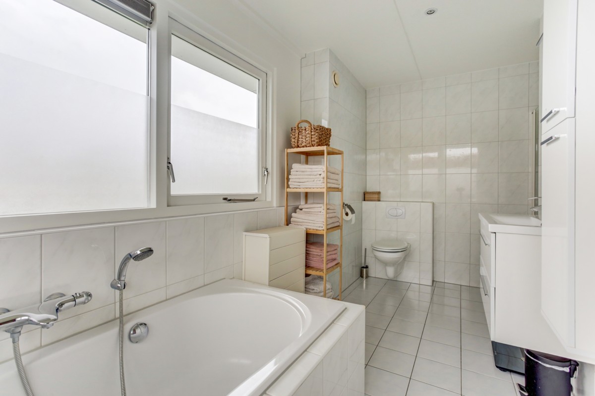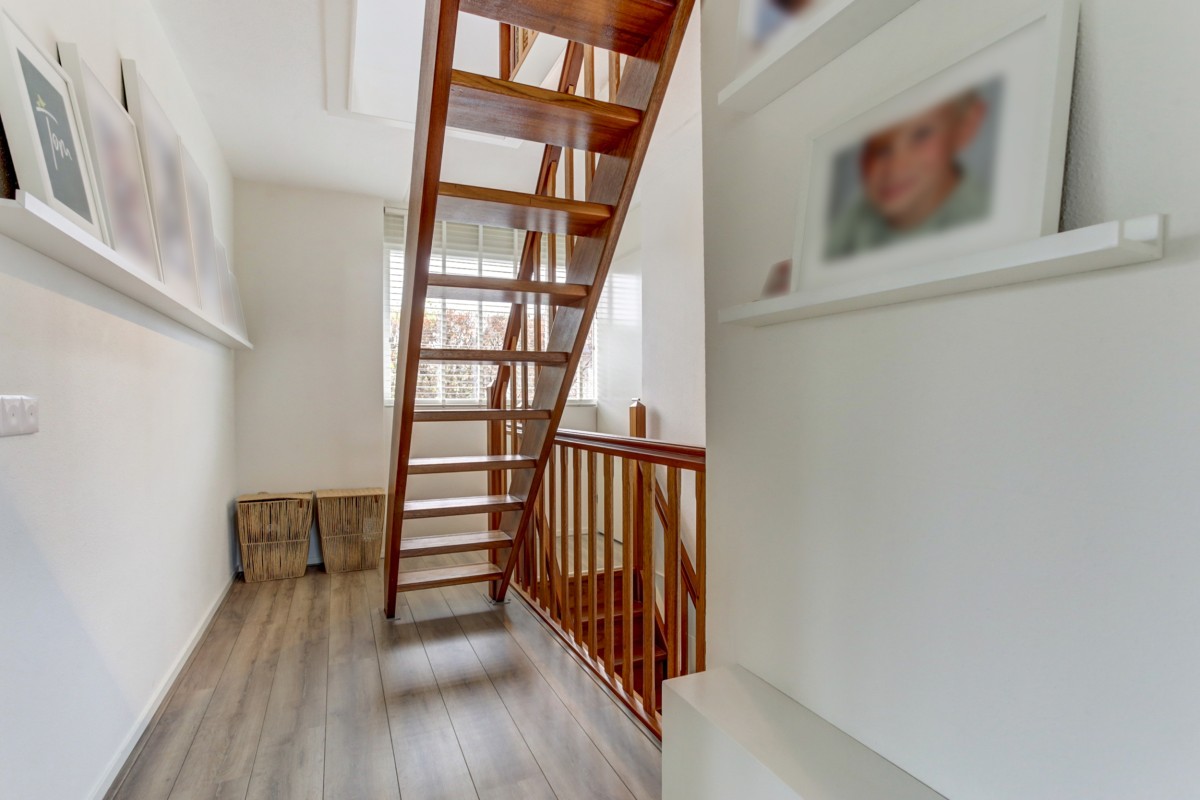 Eerste verdieping: de hardhouten steektrap geeft toegang tot de lichte overloop met aansluitend 3 mooie slaapkamers met veel lichtinval. Aan de voorzijde van de woning is de badkamer gelegen. De overloop en slaapkamers beschikken over een moderne laminaatvloer en eveneens over een vlakke wandafwerking. De badkamer is in een lichte kleurstelling uitgevoerd en biedt een ligbad, inloopdouche, 2e hangcloset en wastafelmeubel.