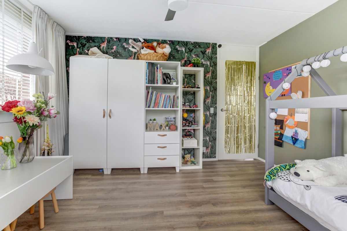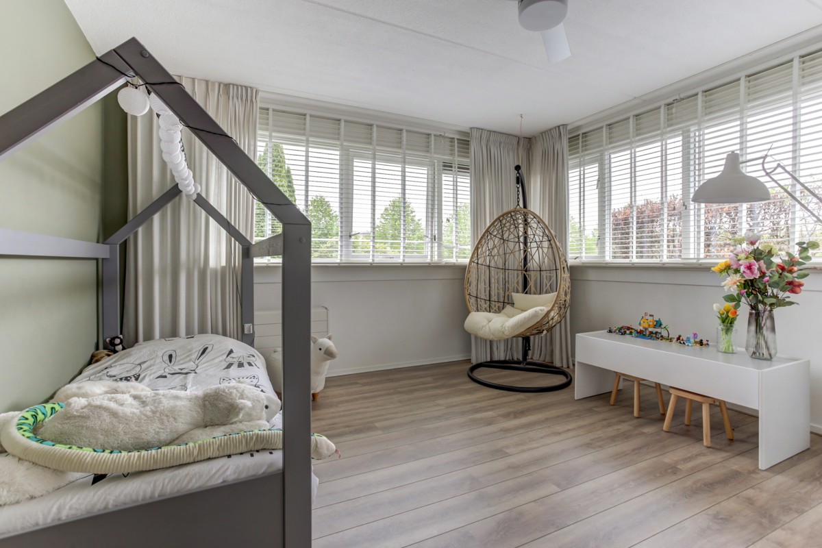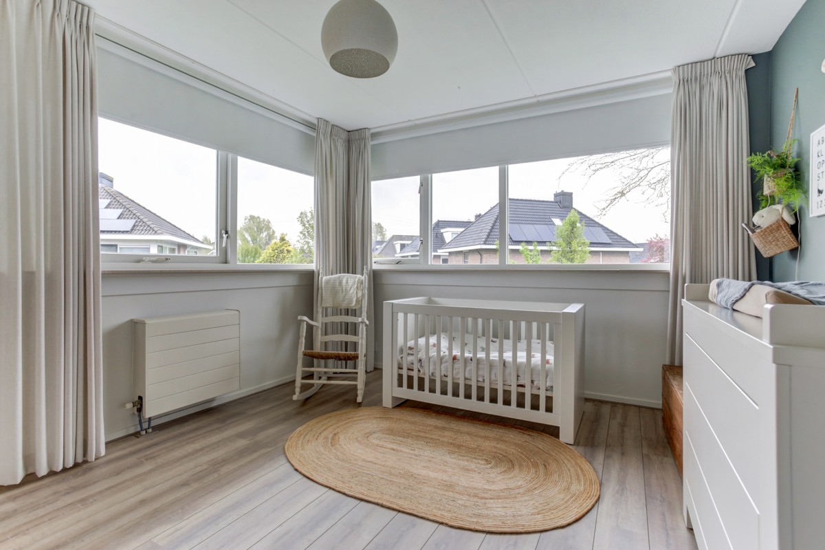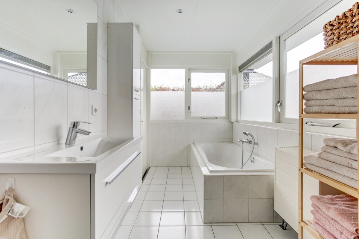 Eerste verdieping: de hardhouten steektrap geeft toegang tot de lichte overloop met aansluitend 3 mooie slaapkamers met veel lichtinval. Aan de voorzijde van de woning is de badkamer gelegen. De overloop en slaapkamers beschikken over een moderne laminaatvloer en eveneens over een vlakke wandafwerking. De badkamer is in een lichte kleurstelling uitgevoerd en biedt een ligbad, inloopdouche, 2e hangcloset en wastafelmeubel.