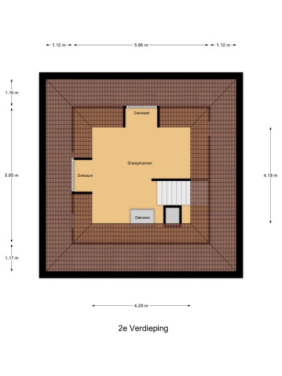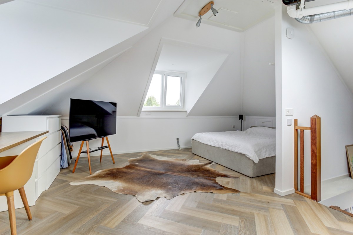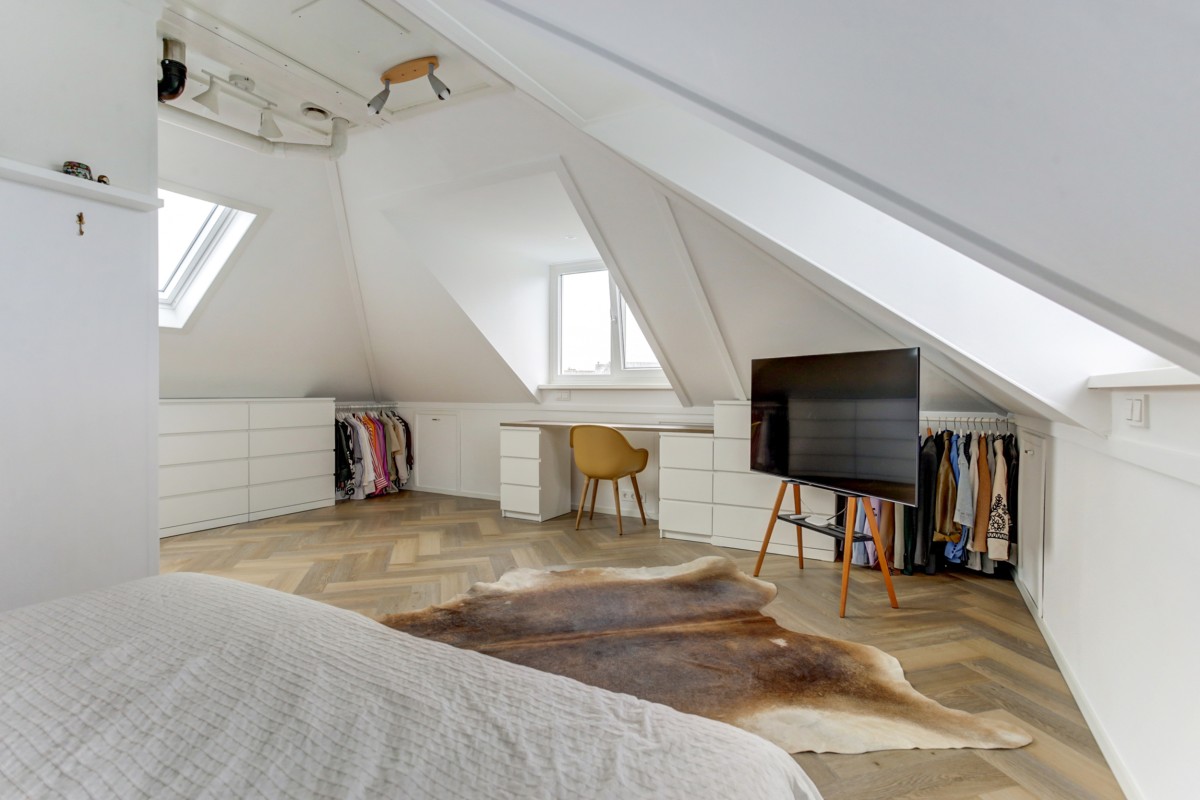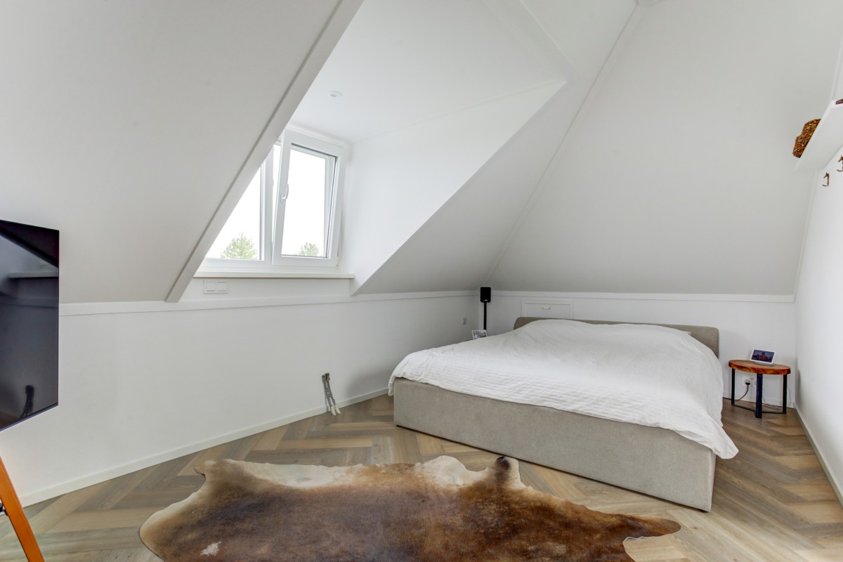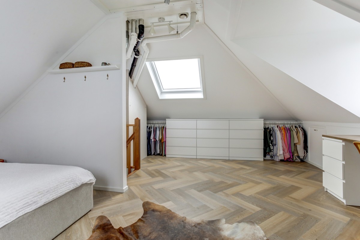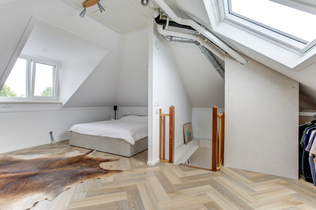Tweede verdieping: een tweede hardhouten steektrap geeft toegang tot de ruime zolderverdieping. Ook deze verdieping is voorzien van vlakke wandafwerking en een mooie pvc-vloer. Voldoende bergruimte biedt mogelijkheid voor opslag van koffers, ski's en overig op te bergen spullen. Mede door het grote kunststof dakraam en de 2 kunststof dakkapellen is deze verdieping in gebruik als 4e slaapkamer.