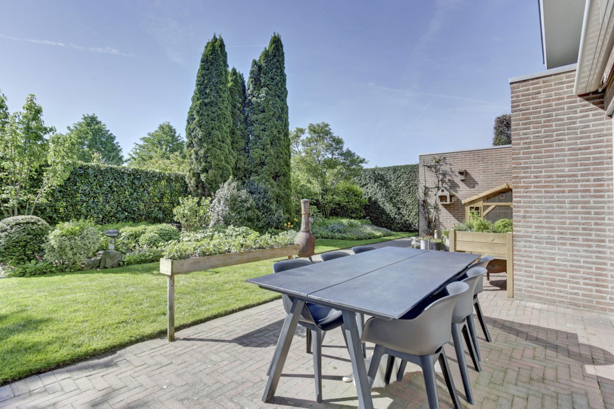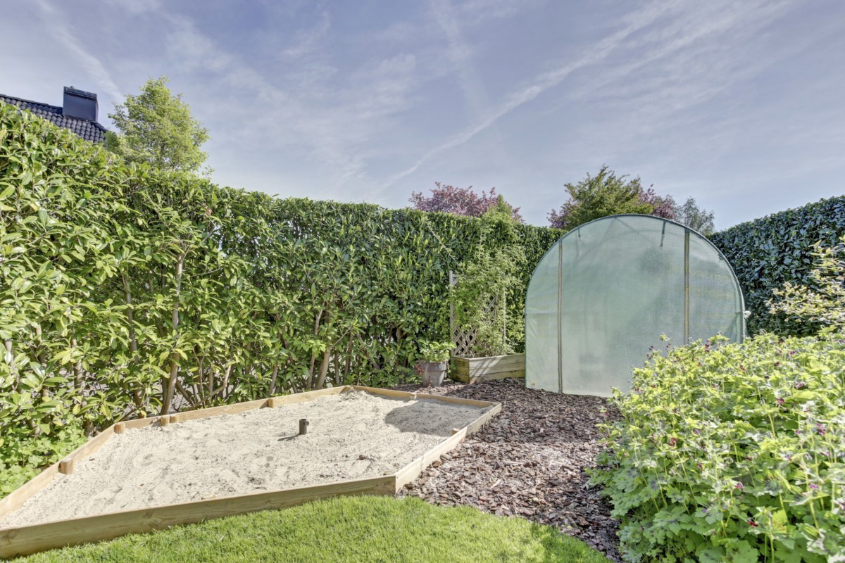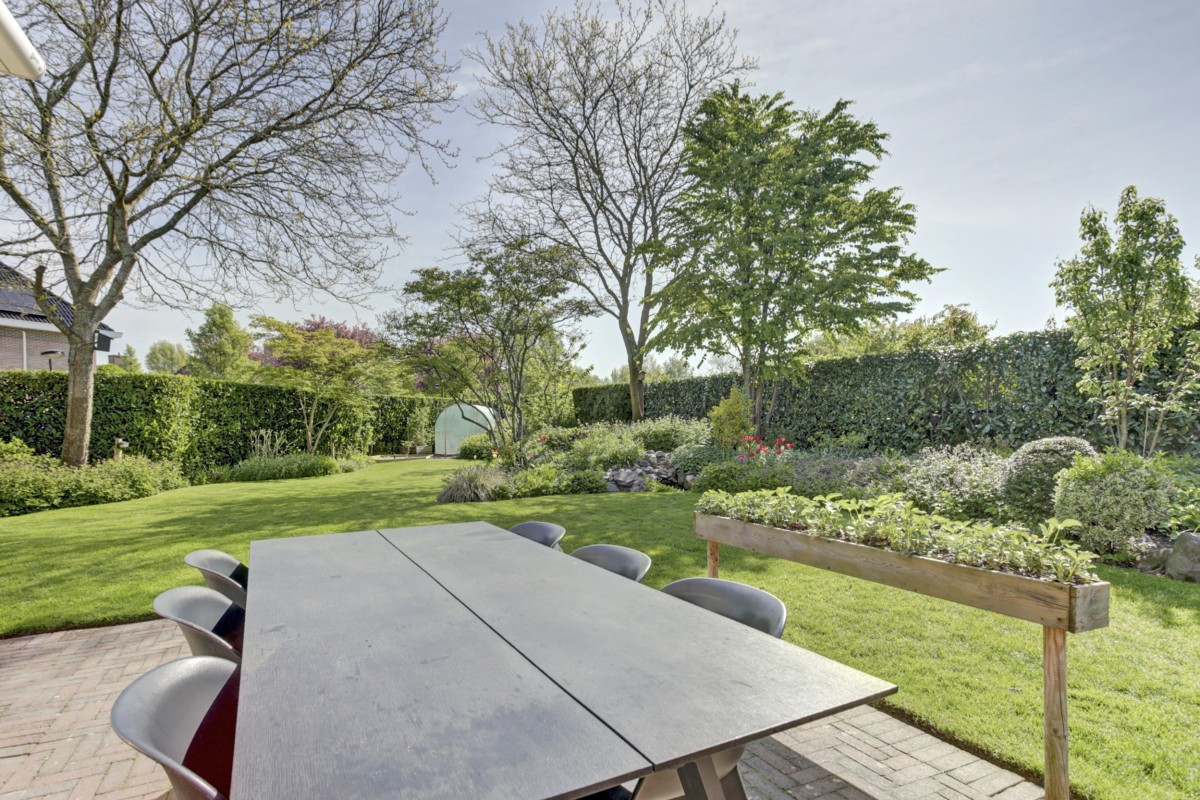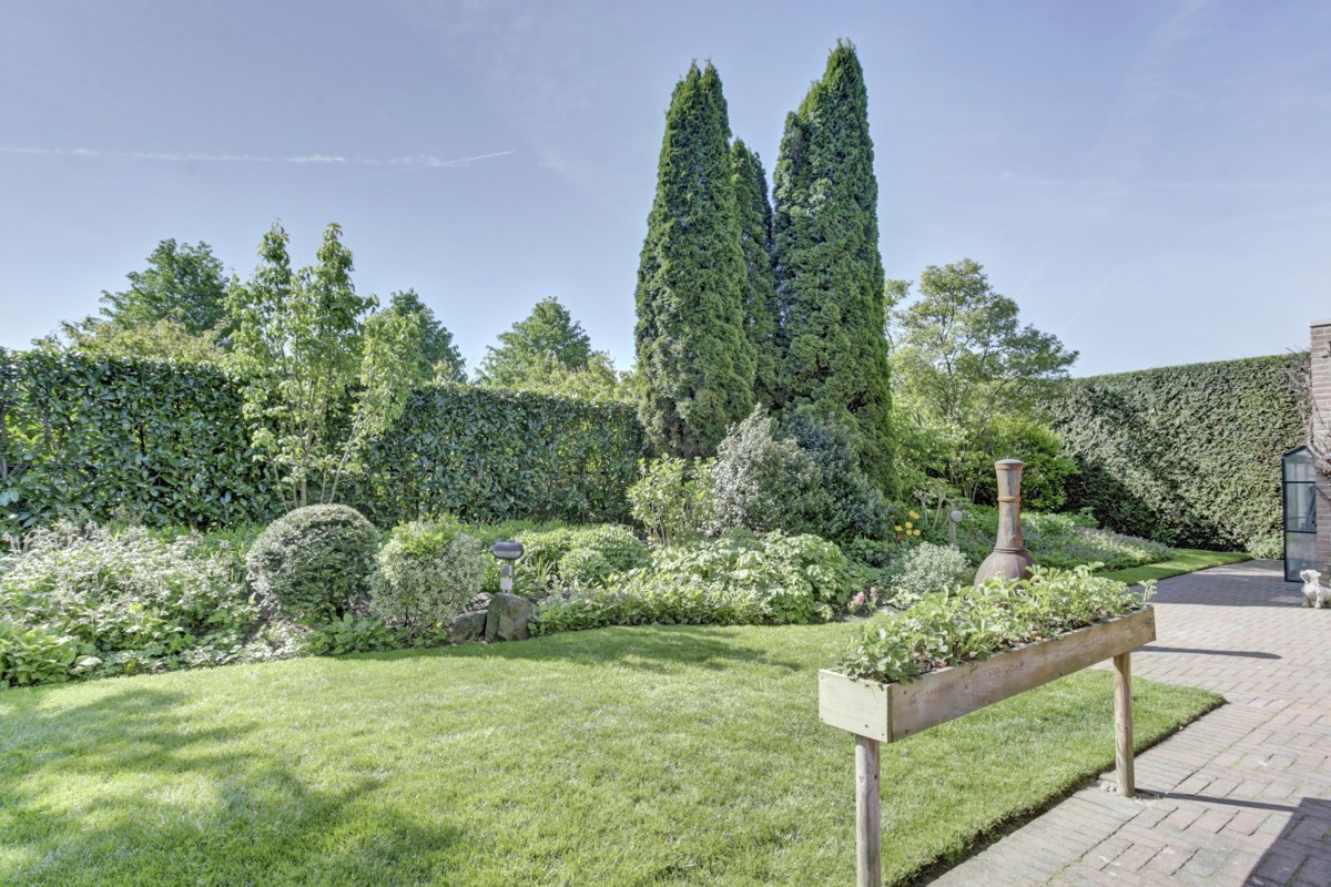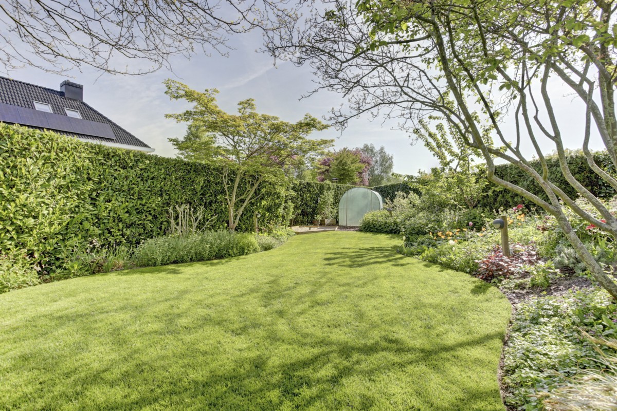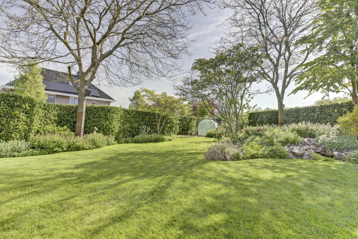 Rondom de woning is een prachtige omheinde tuin aangelegd, voorzien van een gazon, diverse borders, volwassen bomen en een tuinkas. Met de aanleg van de tuin is beschutting en privacy gewaarborgd.