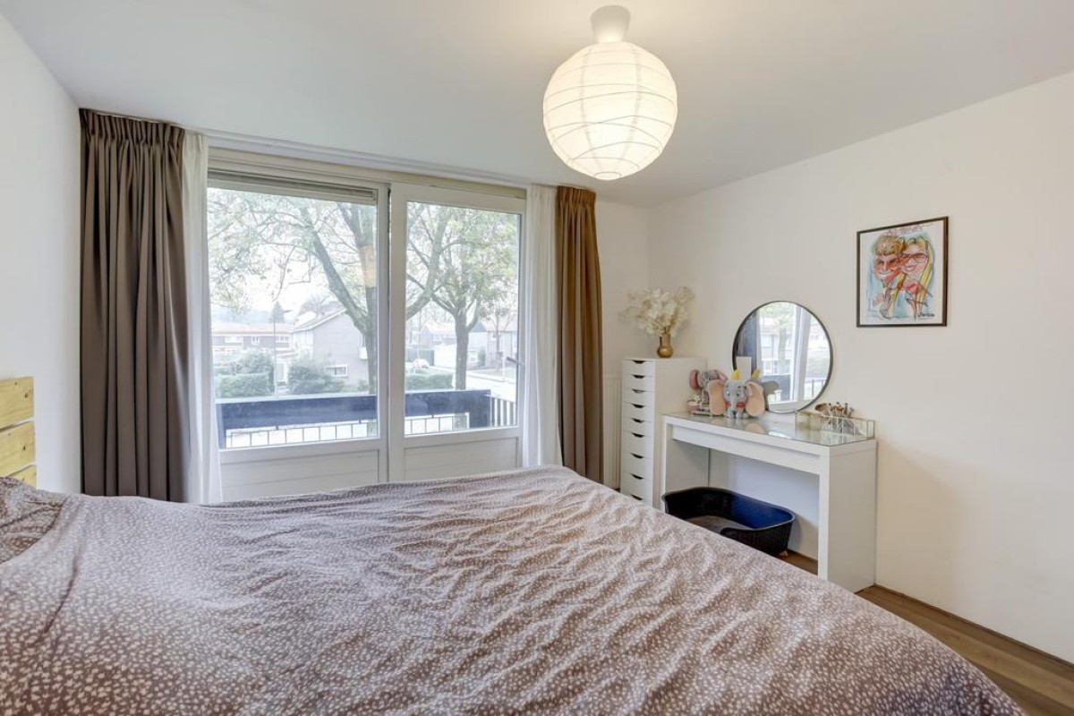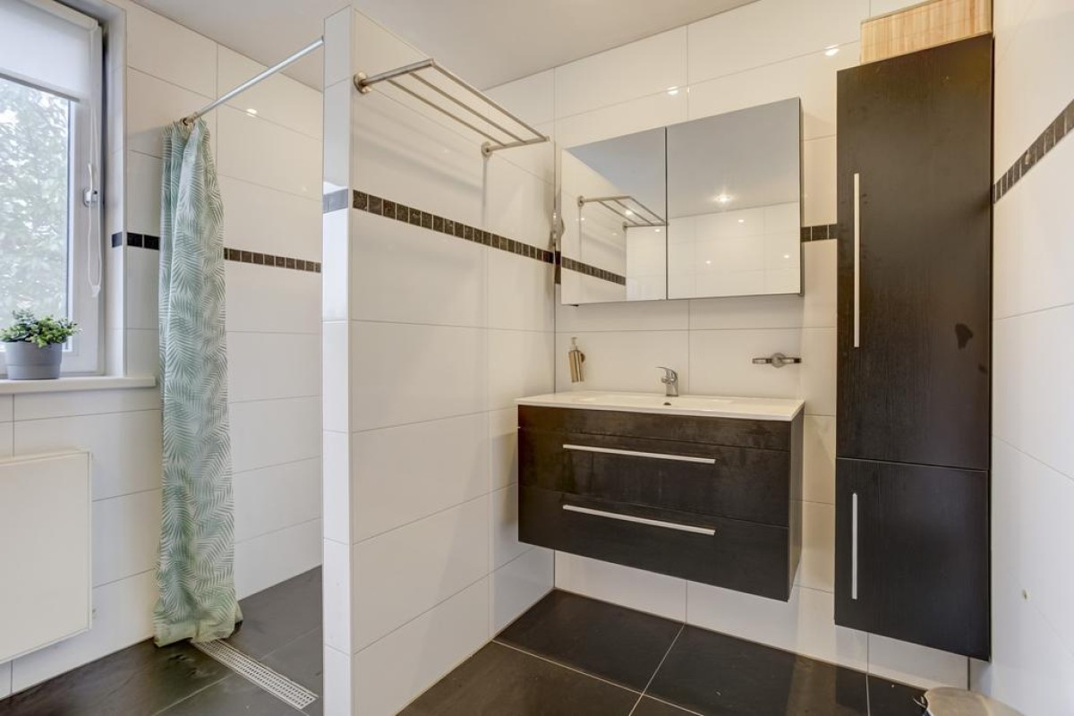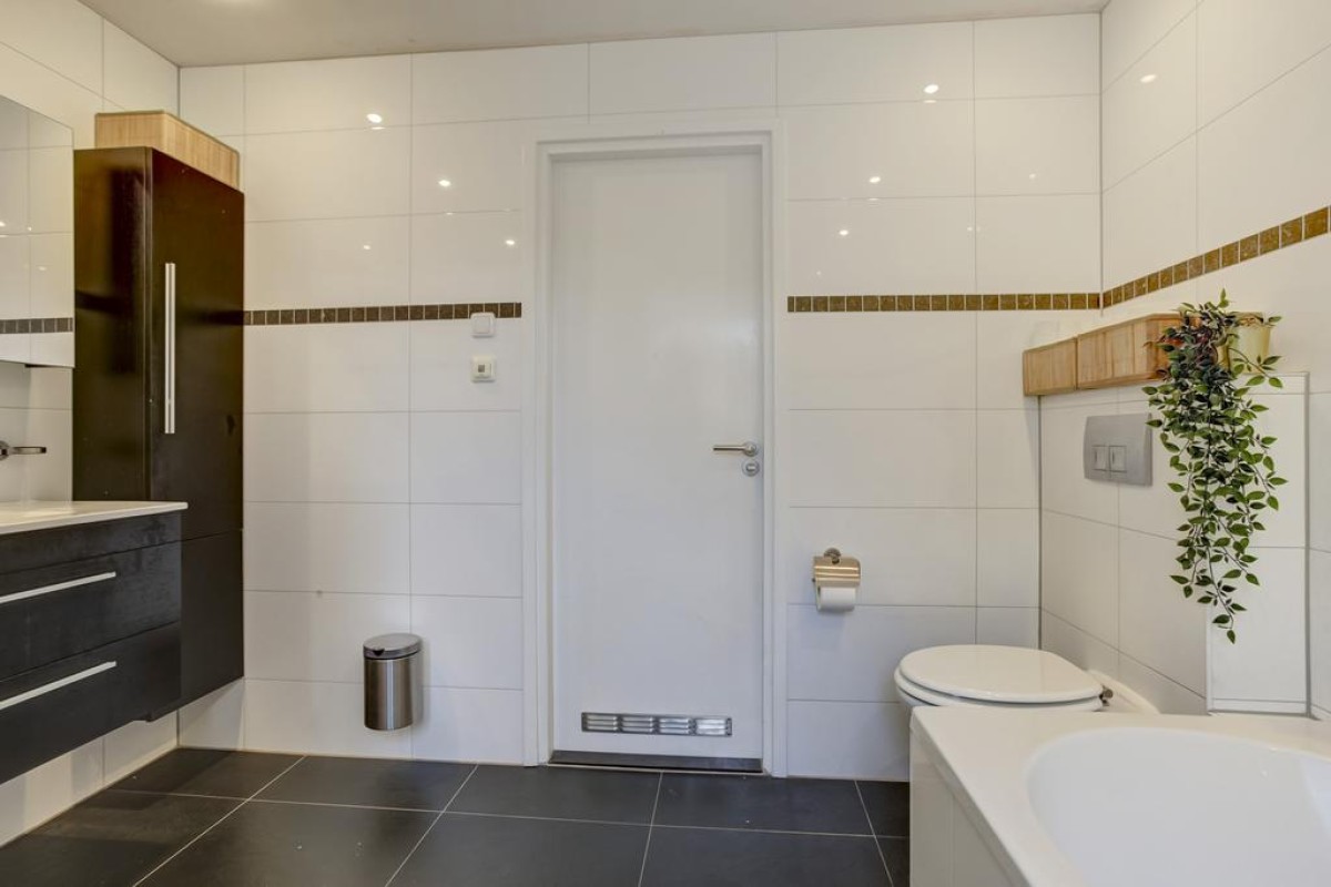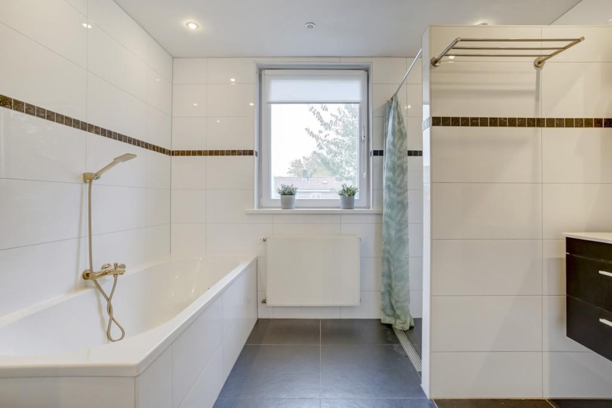1e verdieping: vast trap naar de ruime overloop met aansluitend 3 slaapkamers waarvan de ouderslaapkamer voorzien is van een schuifpui en een balkon, de moderne badkamer is voorzien van vloerverwarming, een inloopdouche, ligbad, zwevend closet, wastafelmeubel en een 2e toilet.