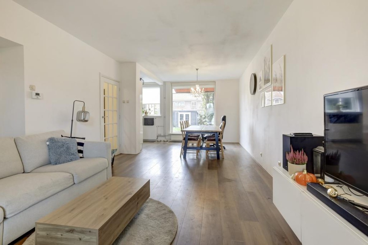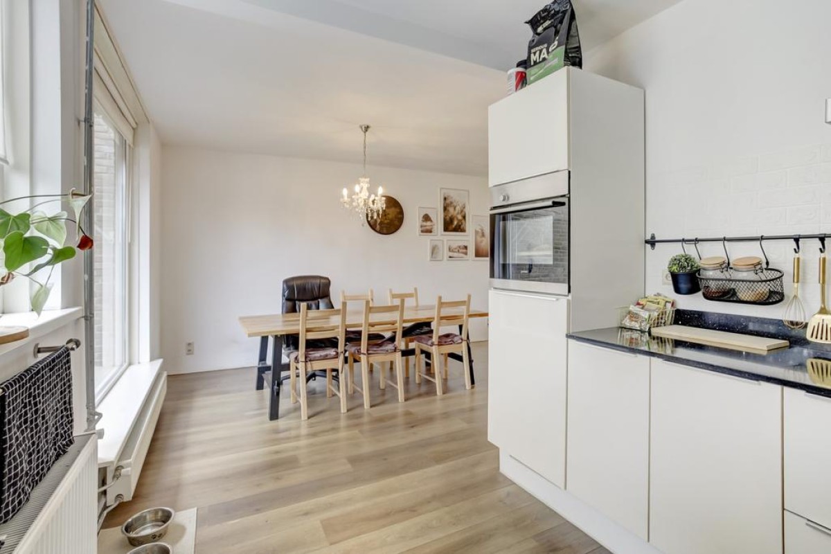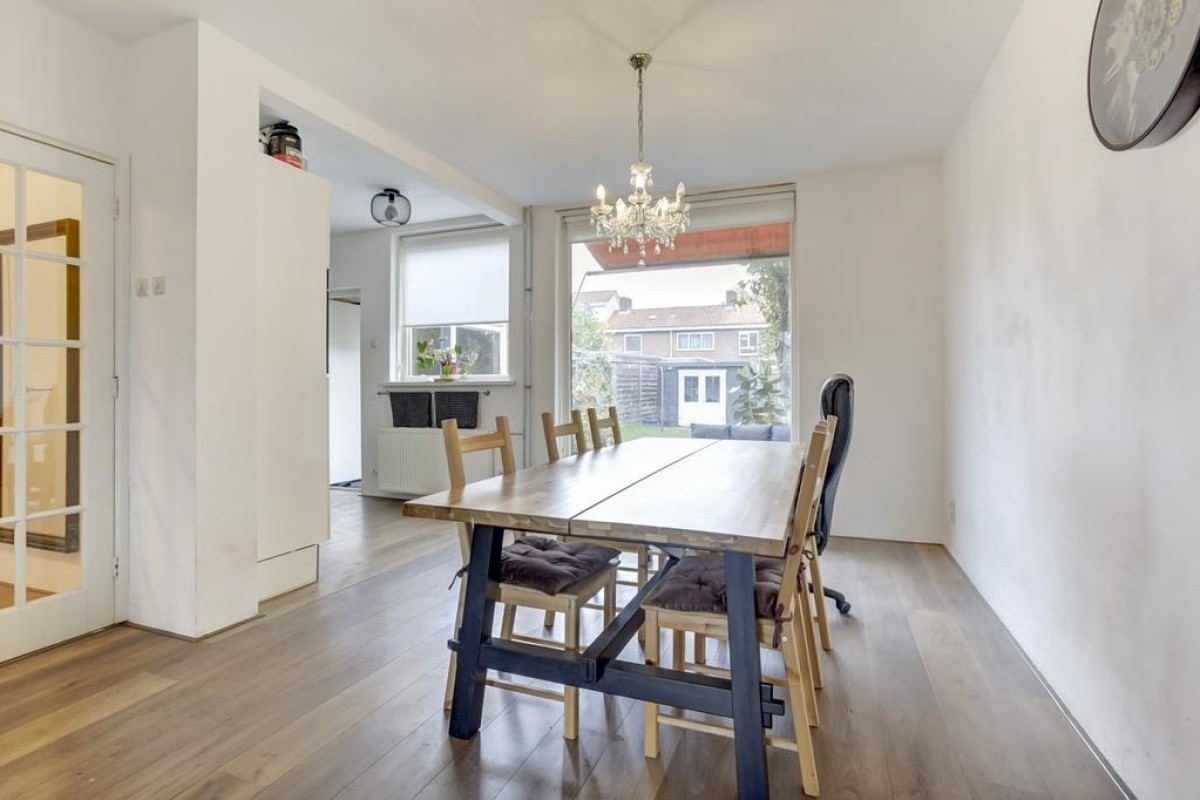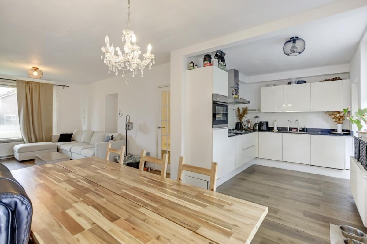 Lees verderDe woonkamer is voorzien van een laminaatvloer en de wanden zijn allemaal voorzien van strak stukwerk. Ruime eethoek met aansluitend de moderne hoek opgestelde keuken (2014) uitgevoerd in een witte opstelling met een zwart composieten werkblad en beschikt over veel opbergruimte mede door de korflades en carrouselkast. De keuken is verder voorzien van een 4-pits gaskookplaat, ingebouwde vaatwasser, koelkast en oven. Aan de achterzijde van de woning is een bijkeuken gelegen voorzien van een wasmachineaansluiting en een doorgang naar de tuin. De diepe tuin is voorzien van een zonneterras, een gazon, borders, 2 houten schuren en een achterom.