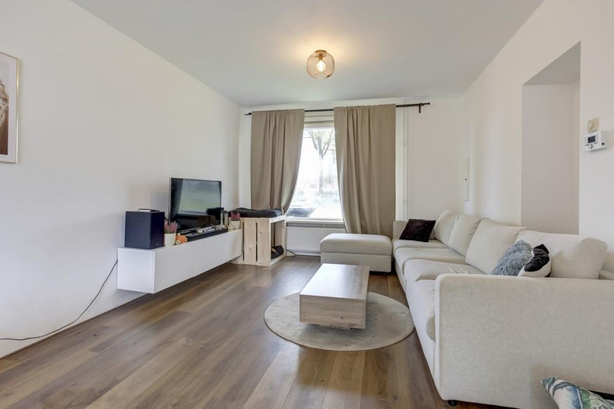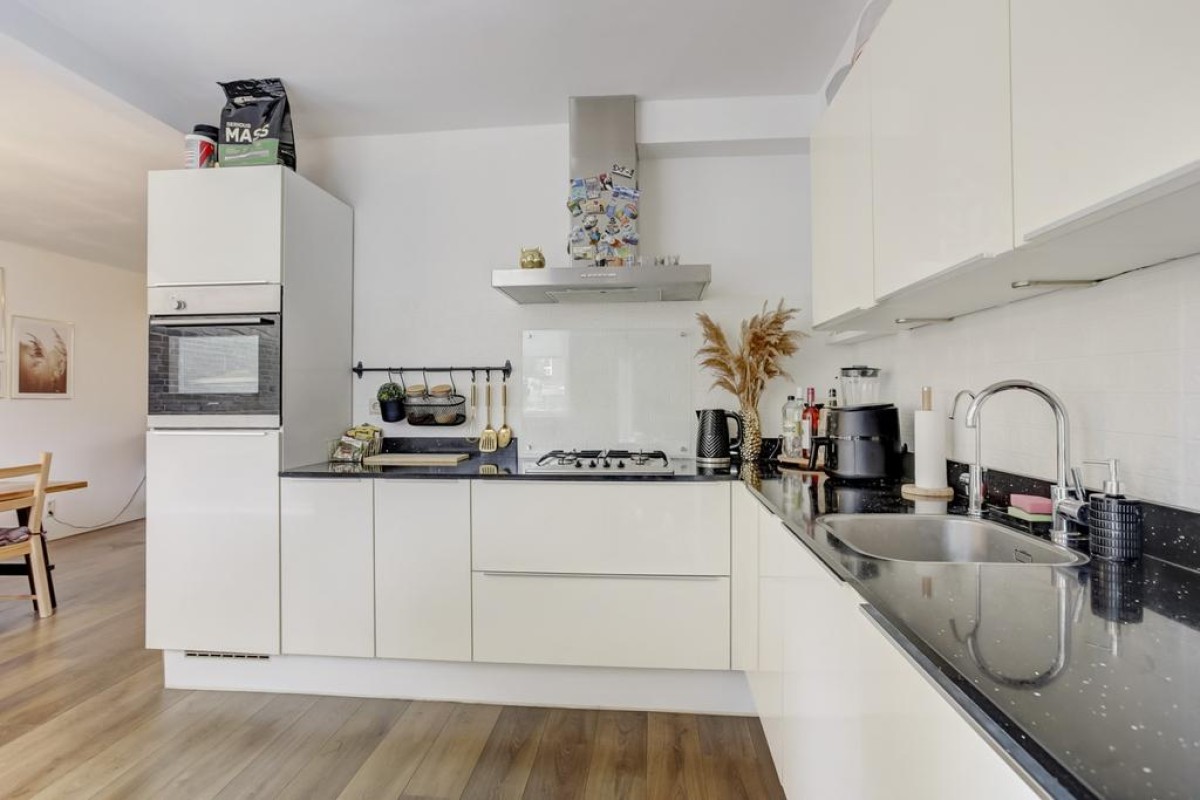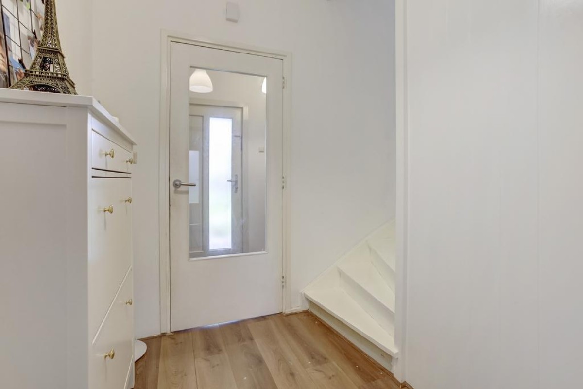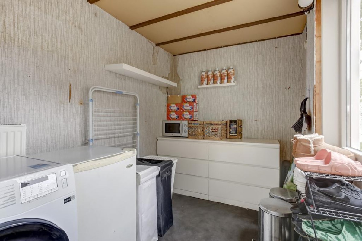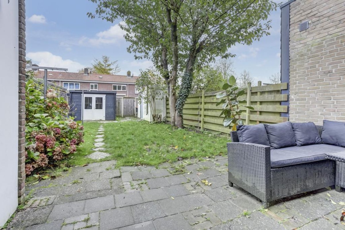 Lees verderDe woonkamer is voorzien van een laminaatvloer en de wanden zijn allemaal voorzien van strak stukwerk. Ruime eethoek met aansluitend de moderne hoek opgestelde keuken (2014) uitgevoerd in een witte opstelling met een zwart composieten werkblad en beschikt over veel opbergruimte mede door de korflades en carrouselkast. De keuken is verder voorzien van een 4-pits gaskookplaat, ingebouwde vaatwasser, koelkast en oven. Aan de achterzijde van de woning is een bijkeuken gelegen voorzien van een wasmachineaansluiting en een doorgang naar de tuin. De diepe tuin is voorzien van een zonneterras, een gazon, borders, 2 houten schuren en een achterom.