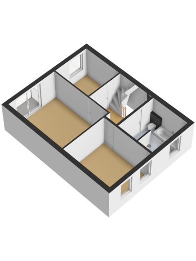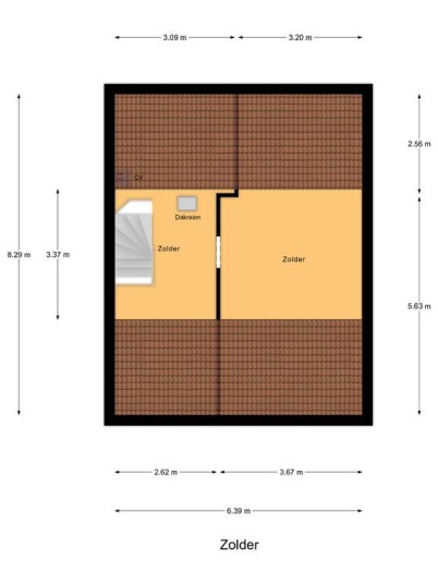 2e verdieping: vaste trap naar de zolderverdieping waar de c.v.-ketel (Vaillant) staat opgesteld. Tevens biedt deze verdieping veel praktische bergruimte.