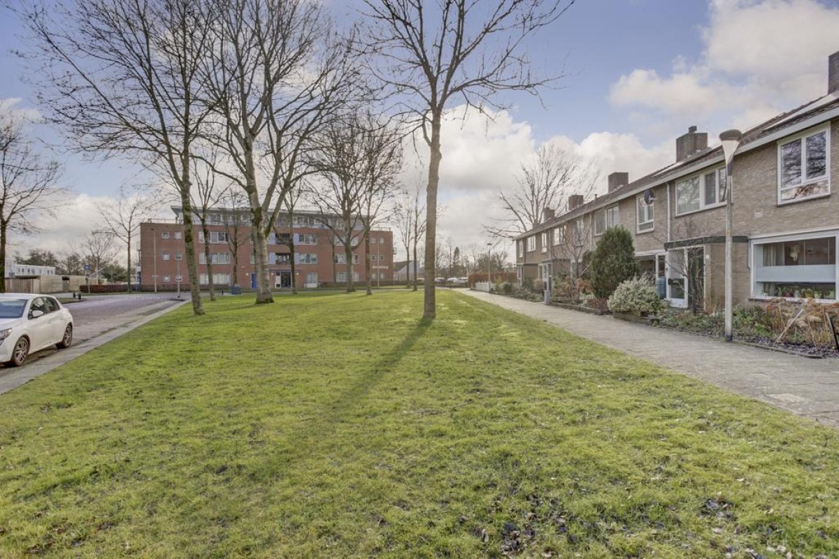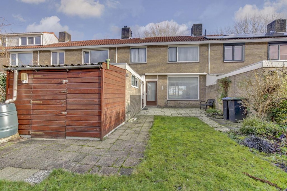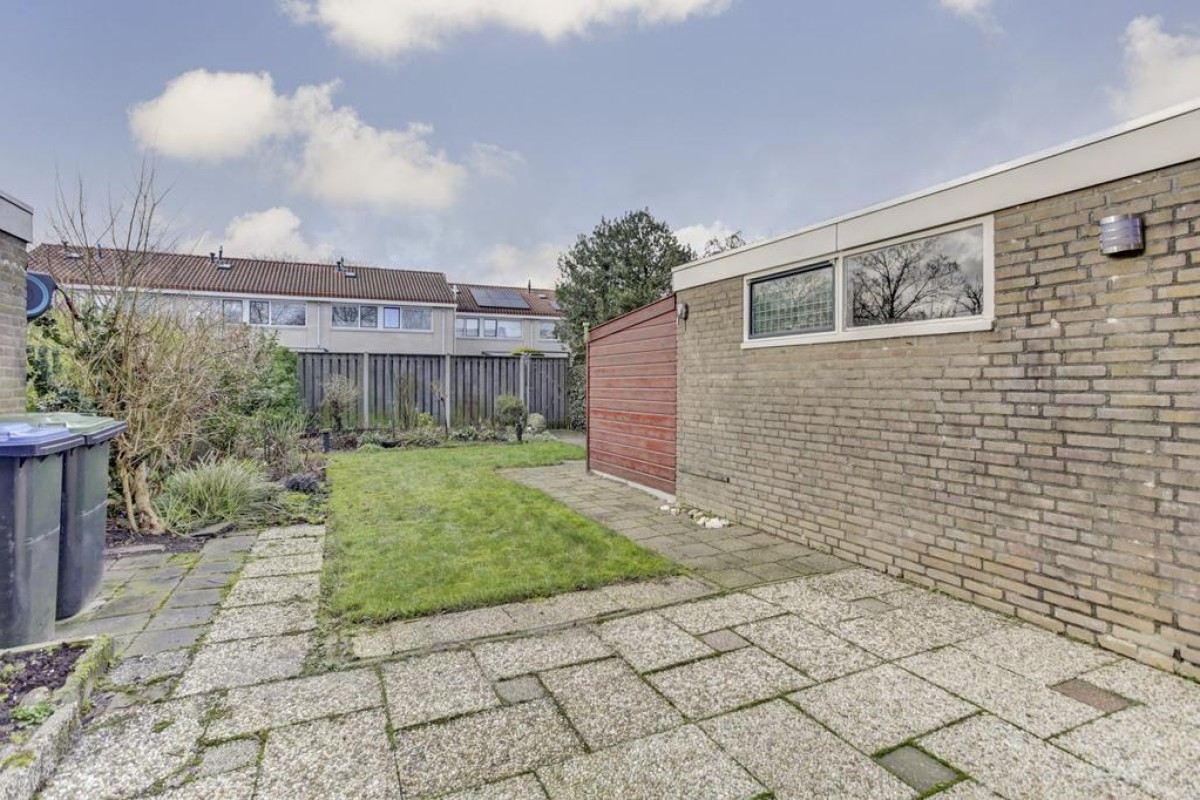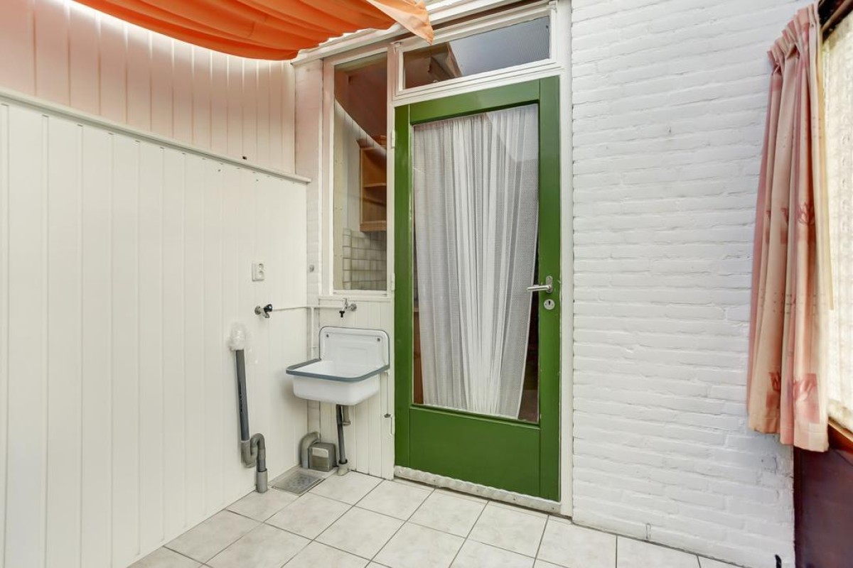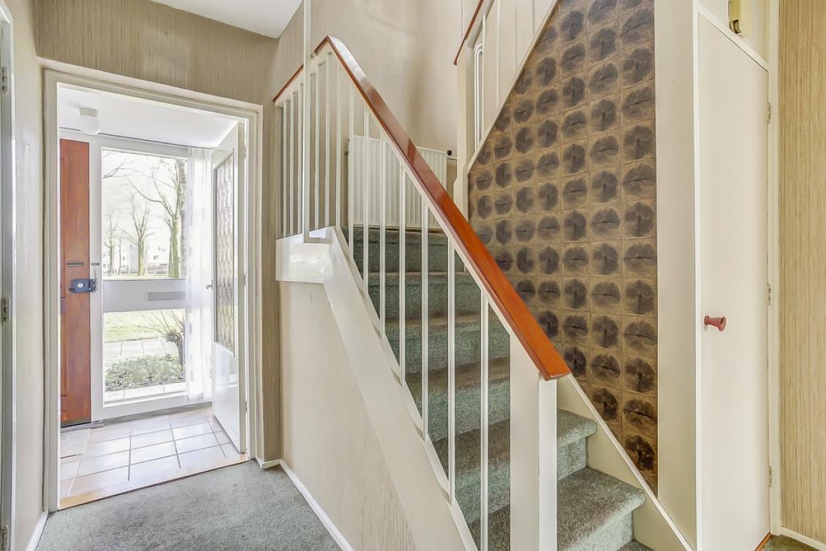 Begane grond: ruime entree met portaal, doorgang naar de hal met meterkast, toiletruimte met toilet en fonteintje, kelderkast onder de bordestrap en doorgang naar de ruime lichte living met fraai uitzicht op de groen voorziening. Een ruime open keuken voorzien een ingebouwde koelkast met vriesvakje (2024), dubbele spoelbak, een oven, 4 pits keramische kookplaat en een vlakscherm afzuiging. Doorgang naar aangebouwde bijkeuken waar de wasmachine, droger, vaatwasser en een uitstortgootsteen gesitueerd zijn, Vanuit de bijkeuken is de aangebouwde stenen berging alsmede de tuin bereikbaar. Het terras tegen de achtergevel is voorzien van een elektrisch bedienbaar zonnescherm. De tuin is op het westen gelegen en voorzien van een gazon, vaste beplanting en een achterom. Aan de achterzijde van de aangebouwde berging is een houten schuur welke is voorzien van elektra.