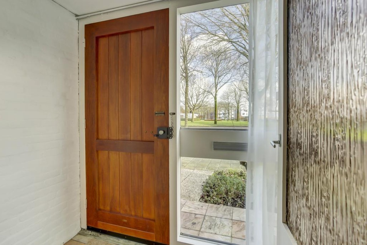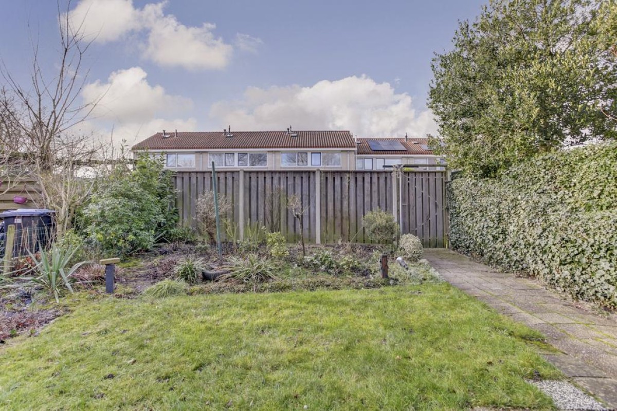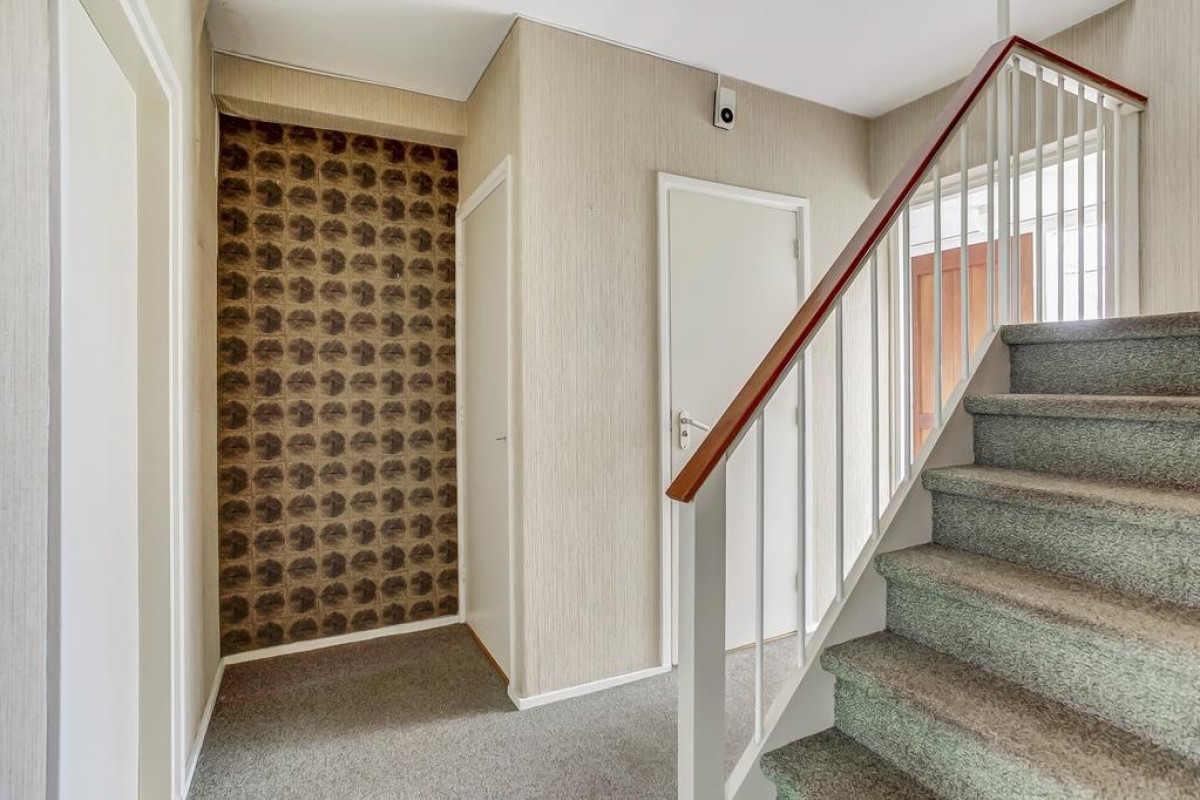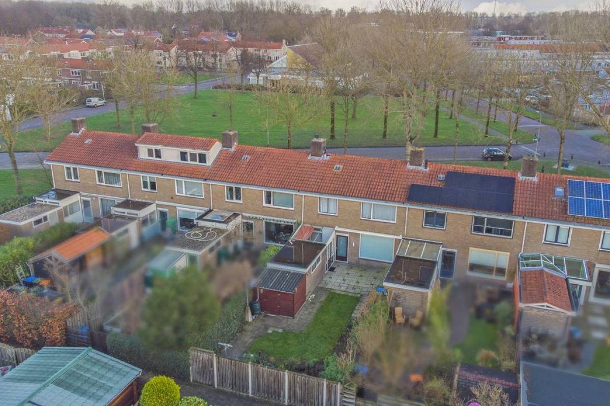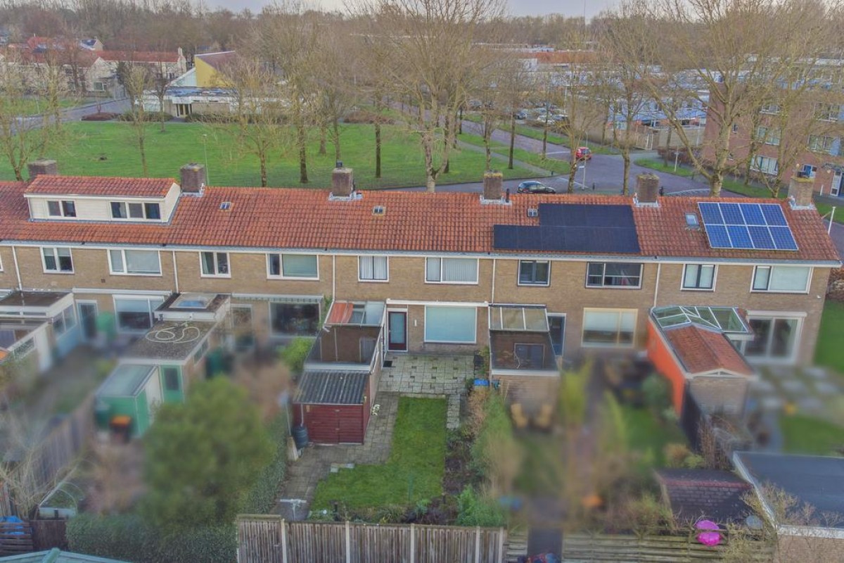 Begane grond: ruime entree met portaal, doorgang naar de hal met meterkast, toiletruimte met toilet en fonteintje, kelderkast onder de bordestrap en doorgang naar de ruime lichte living met fraai uitzicht op de groen voorziening. Een ruime open keuken voorzien een ingebouwde koelkast met vriesvakje (2024), dubbele spoelbak, een oven, 4 pits keramische kookplaat en een vlakscherm afzuiging. Doorgang naar aangebouwde bijkeuken waar de wasmachine, droger, vaatwasser en een uitstortgootsteen gesitueerd zijn, Vanuit de bijkeuken is de aangebouwde stenen berging alsmede de tuin bereikbaar. Het terras tegen de achtergevel is voorzien van een elektrisch bedienbaar zonnescherm. De tuin is op het westen gelegen en voorzien van een gazon, vaste beplanting en een achterom. Aan de achterzijde van de aangebouwde berging is een houten schuur welke is voorzien van elektra.