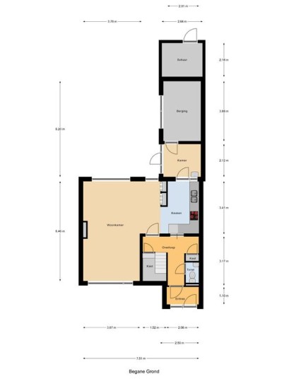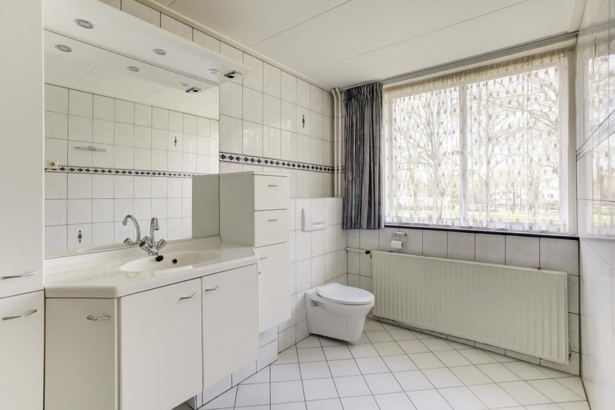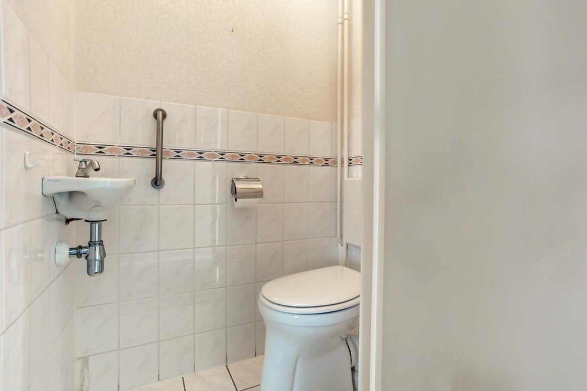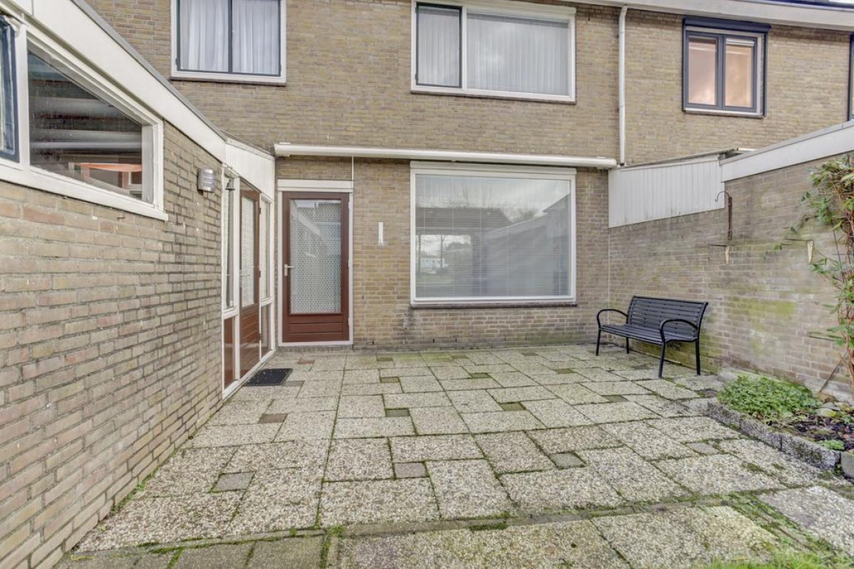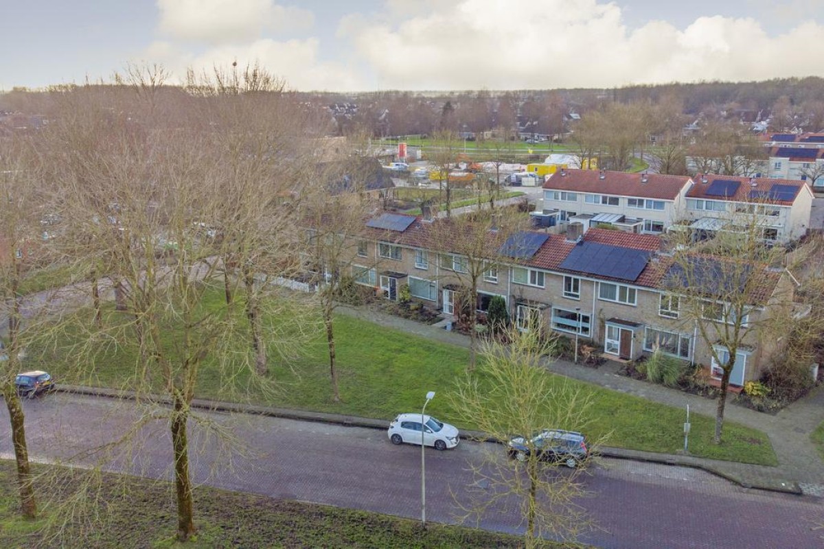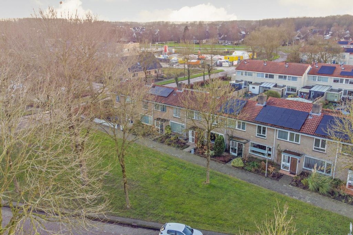 Begane grond: ruime entree met portaal, doorgang naar de hal met meterkast, toiletruimte met toilet en fonteintje, kelderkast onder de bordestrap en doorgang naar de ruime lichte living met fraai uitzicht op de groen voorziening. Een ruime open keuken voorzien een ingebouwde koelkast met vriesvakje (2024), dubbele spoelbak, een oven, 4 pits keramische kookplaat en een vlakscherm afzuiging. Doorgang naar aangebouwde bijkeuken waar de wasmachine, droger, vaatwasser en een uitstortgootsteen gesitueerd zijn, Vanuit de bijkeuken is de aangebouwde stenen berging alsmede de tuin bereikbaar. Het terras tegen de achtergevel is voorzien van een elektrisch bedienbaar zonnescherm. De tuin is op het westen gelegen en voorzien van een gazon, vaste beplanting en een achterom. Aan de achterzijde van de aangebouwde berging is een houten schuur welke is voorzien van elektra.