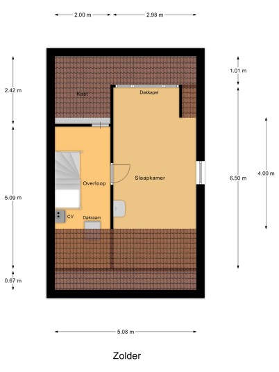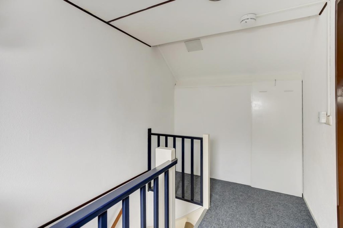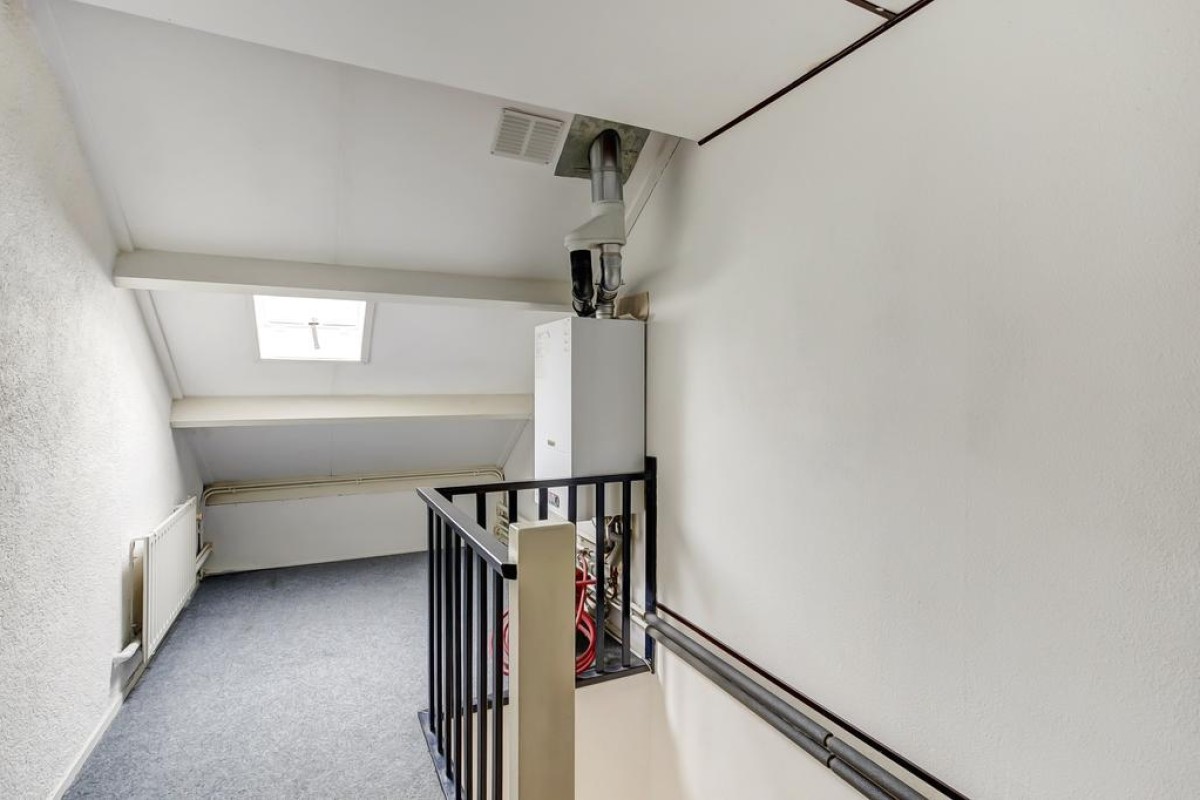 Tweede verdieping: vaste trap naar de voorzolder waar de c.v.-ketel en een 4-pans dakraam zijn geplaatst, ruime 4e slaapkamer met dakkapel. Deze verdieping biedt tevens veel bergruimte.