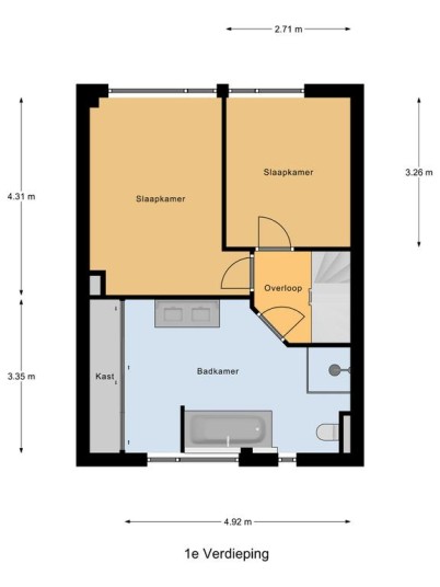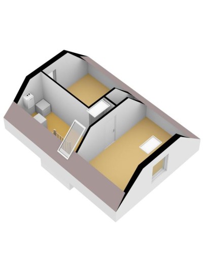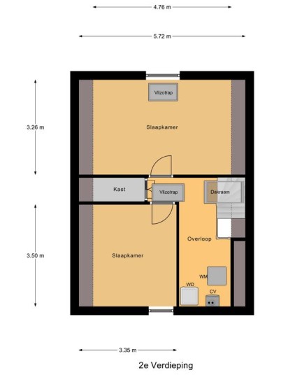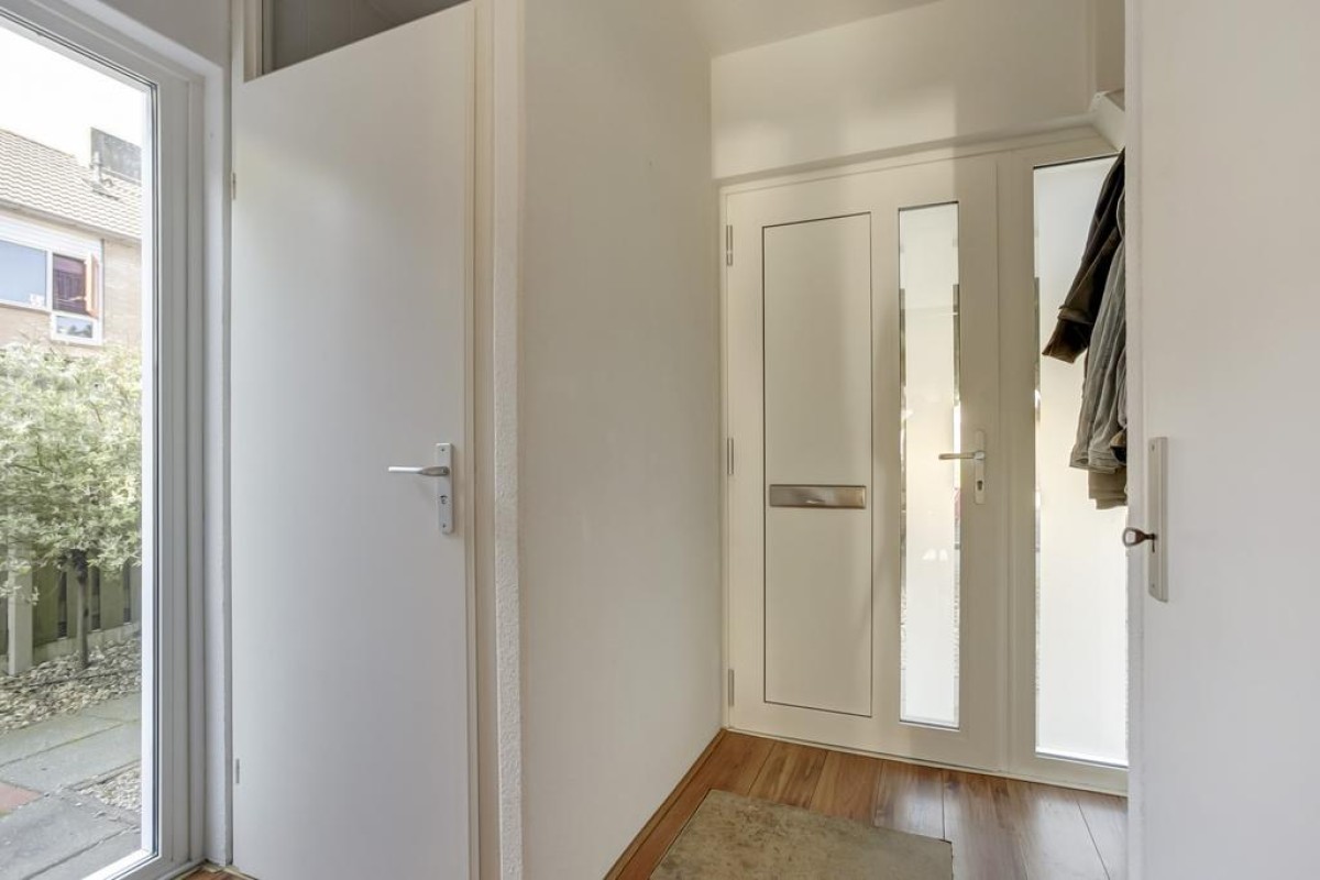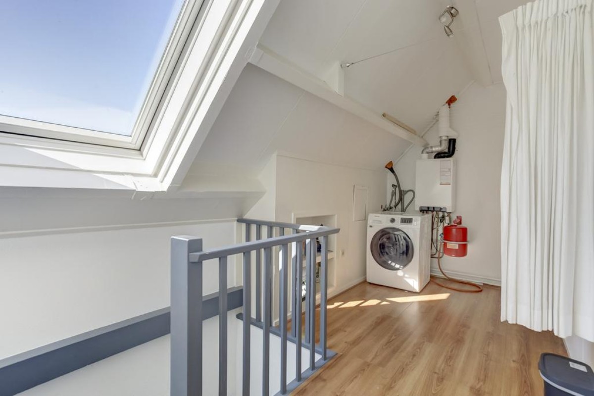 Tweede verdieping: vaste trap naar de voorzolder welke is voorzien van een "Velux" dakraam, met opstelplaats voor de wasmachine, droger en c.v.-ketel en aangrenzend, 2 ruime slaapkamers voorzien van elektrische screens.