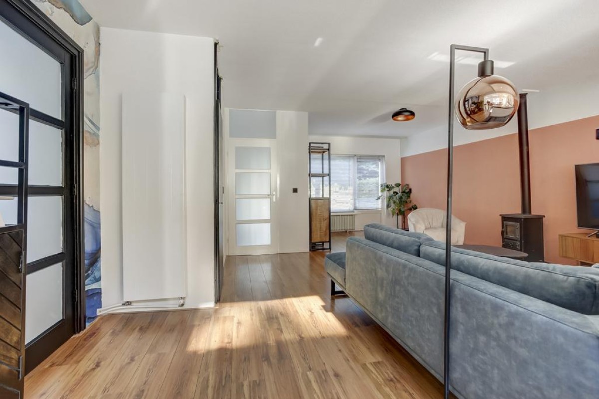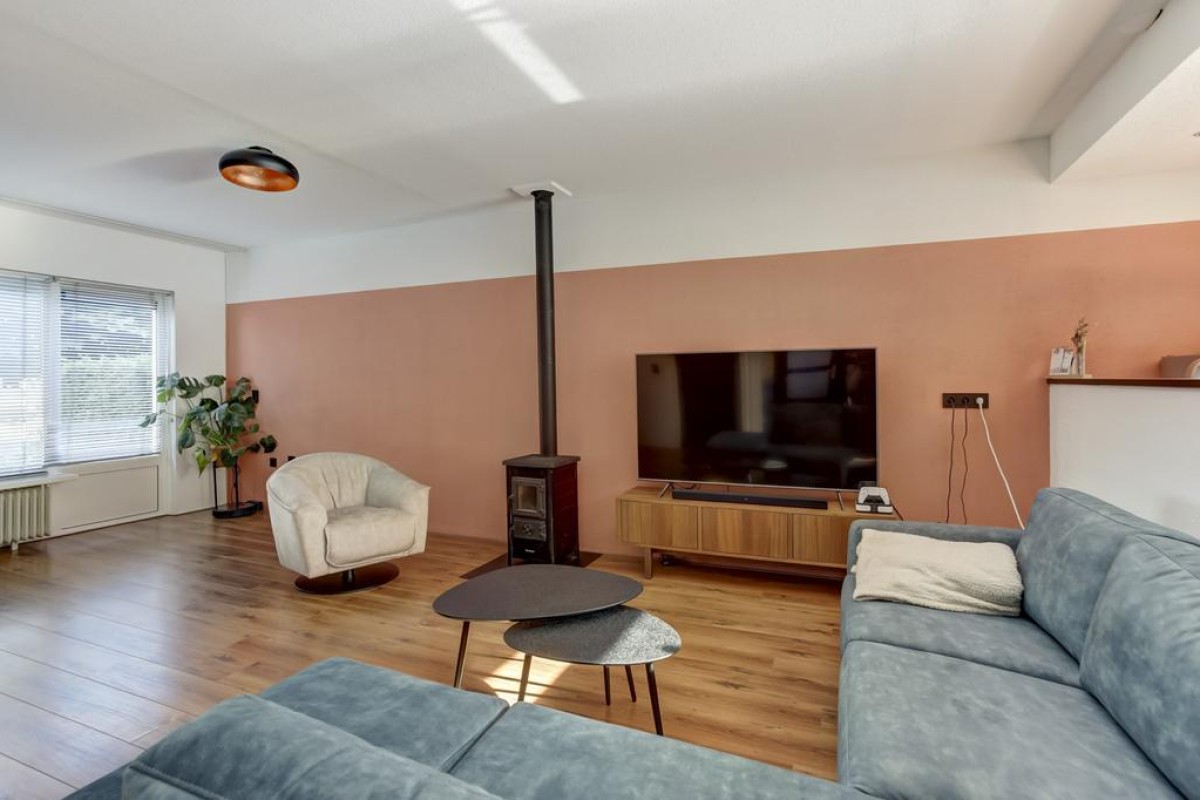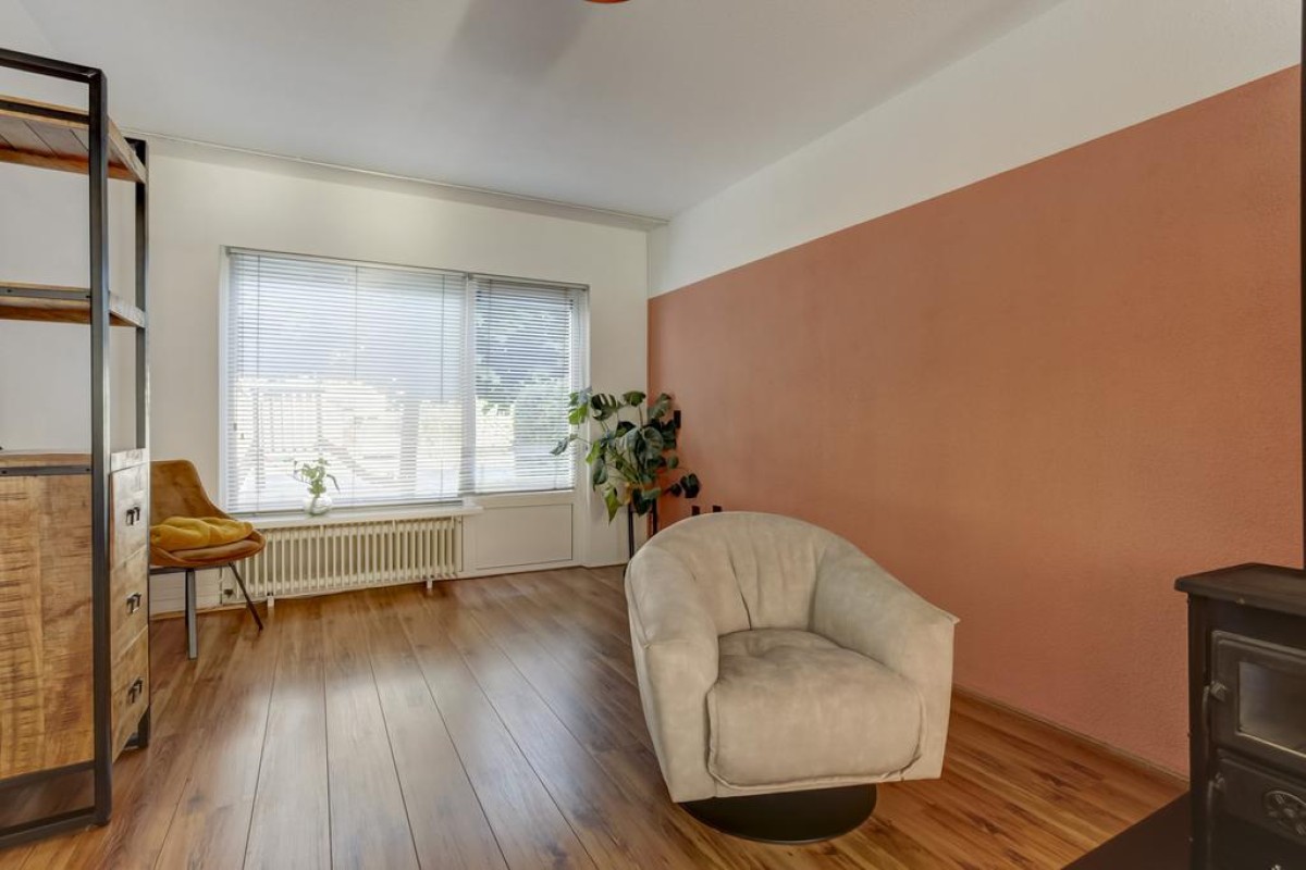 Begane grond: Ruime entree, meterkast, toiletruimte met hangcloset, ruime living voorzien van een laminaatvloer, praktische trapkast en een sfeervolle houtkachel, doorgang naar aangebouwde bijkeuken welke is voorzien van een lichtkoepel. De riant uitgebouwde woonkeuken is voorzien van 3 grote “Velux” dakramen met zonwering welke voor veel lichtinval zorgen. De keuken is voorzien van een ingebouwde vaatwasser (2024), close-in-boiler 15L, 5-pits gasfornuis met oven, RVS afzuigkap en heeft een zwart granieten werkblad. Middels een loopdeur of openslaande deuren toegang naar de diepe tuin op het oosten met een terras, een gazon, vaste beplanting en een vrijstaande houten berging met overkapping en een achterom.