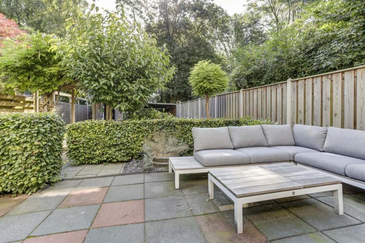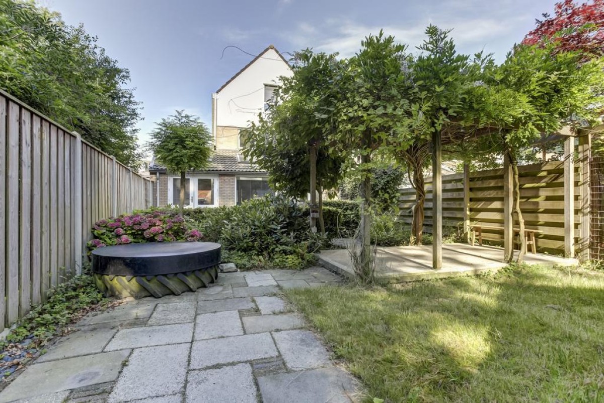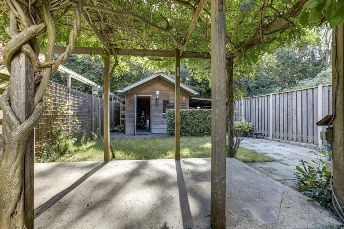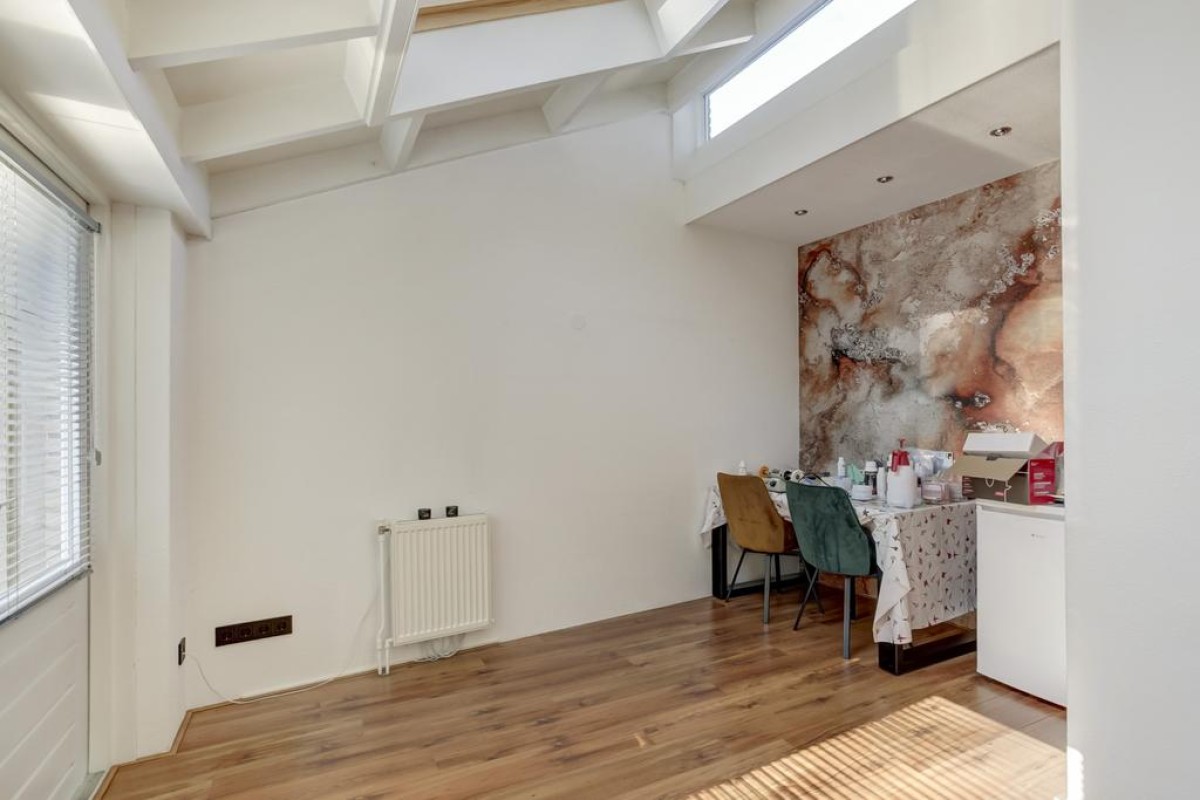 Begane grond: Ruime entree, meterkast, toiletruimte met hangcloset, ruime living voorzien van een laminaatvloer, praktische trapkast en een sfeervolle houtkachel, doorgang naar aangebouwde bijkeuken welke is voorzien van een lichtkoepel. De riant uitgebouwde woonkeuken is voorzien van 3 grote “Velux” dakramen met zonwering welke voor veel lichtinval zorgen. De keuken is voorzien van een ingebouwde vaatwasser (2024), close-in-boiler 15L, 5-pits gasfornuis met oven, RVS afzuigkap en heeft een zwart granieten werkblad. Middels een loopdeur of openslaande deuren toegang naar de diepe tuin op het oosten met een terras, een gazon, vaste beplanting en een vrijstaande houten berging met overkapping en een achterom.
