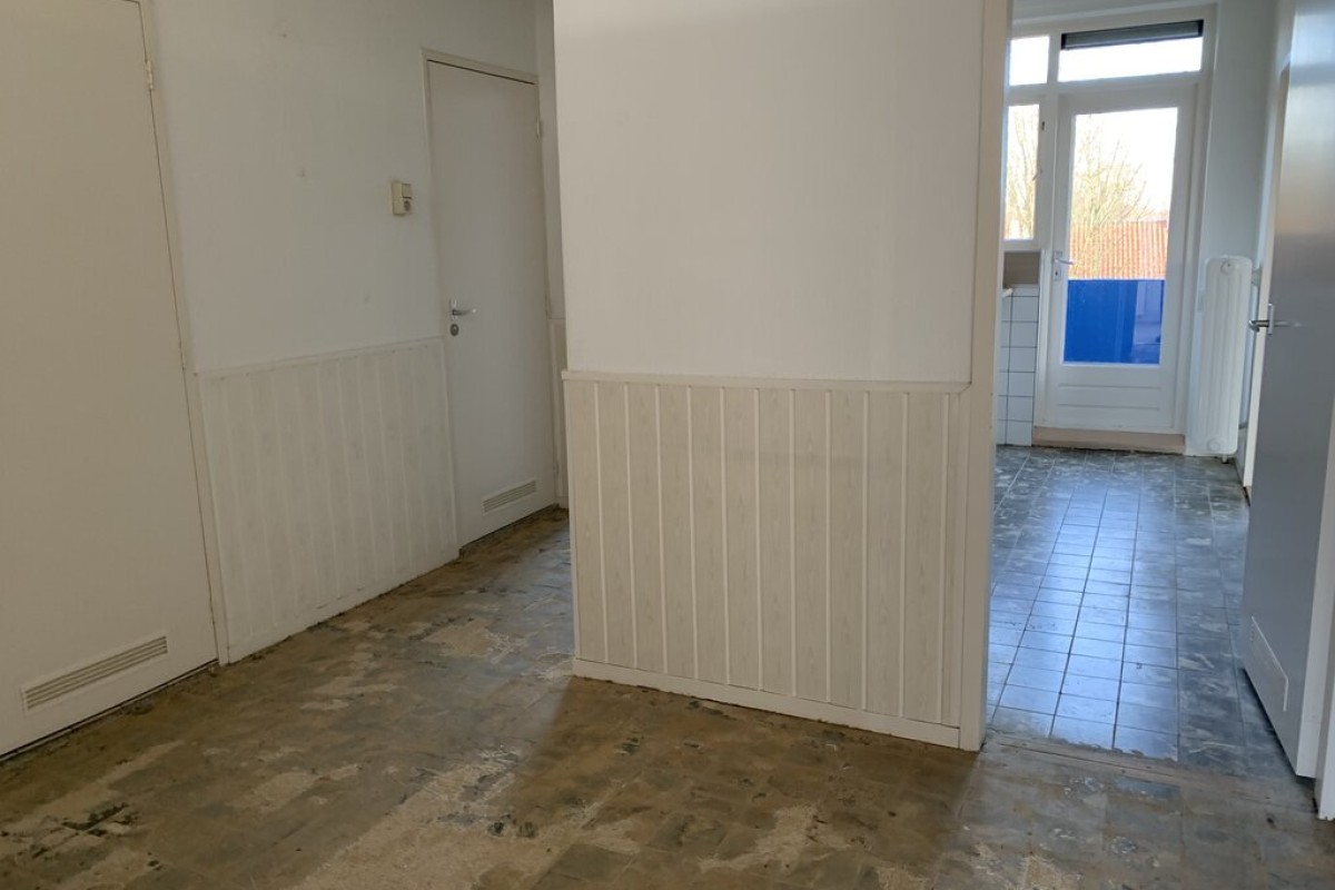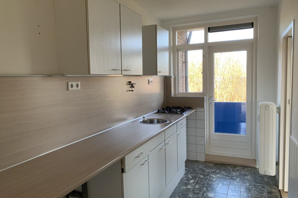 Royale hal, ruime en lichte woonkamer. Dichte keuken met keukenblok, nette badkamer met douche en wastafel, apart toilet en 2 slaapkamers, waarvan 1 met inbouwkasten.