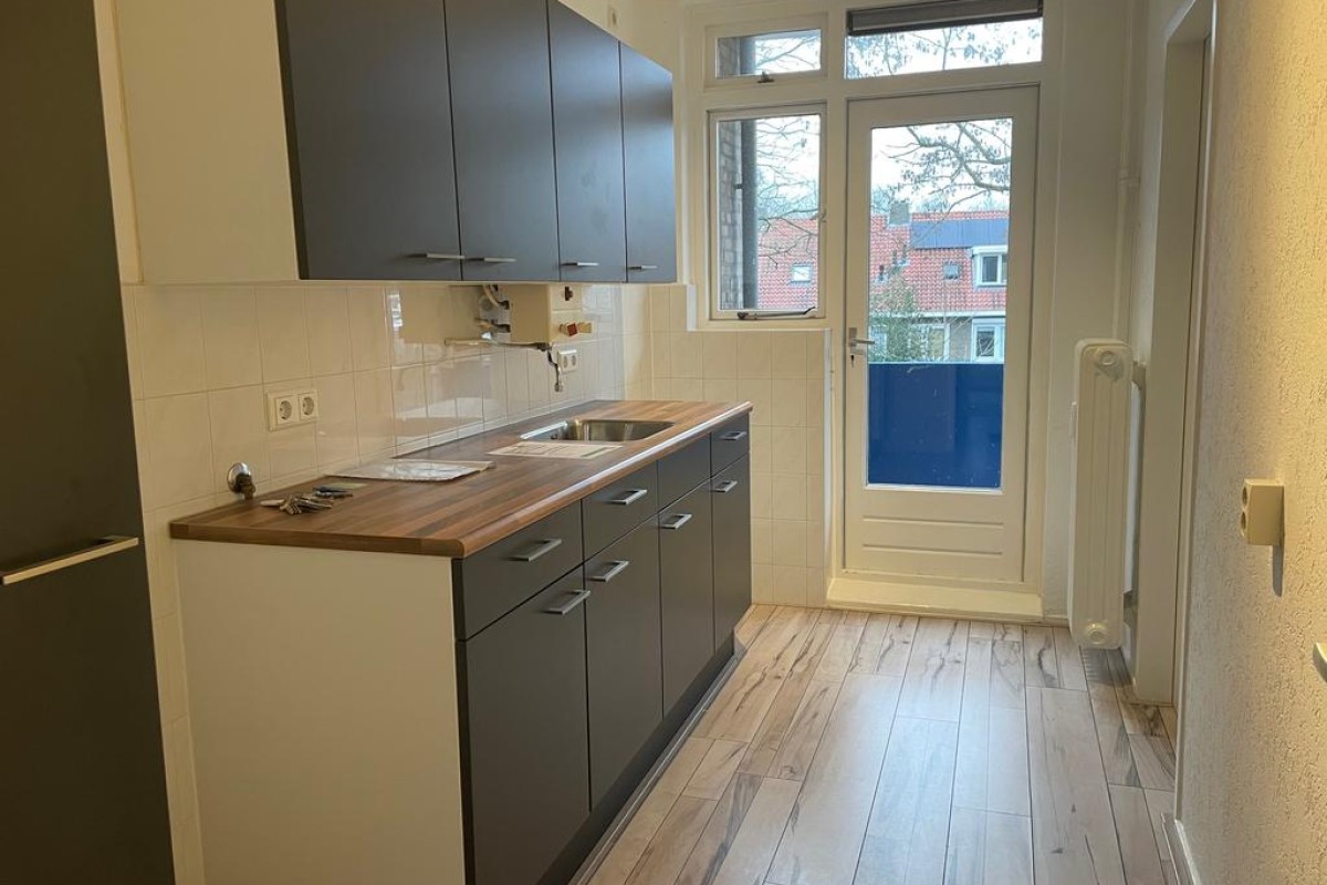 Royale hal, ruime en lichte woonkamer. Dichte keuken met keukenblok, nette badkamer met douche en wastafel, apart toilet en 2 slaapkamers, waarvan 1 met inbouwkasten.