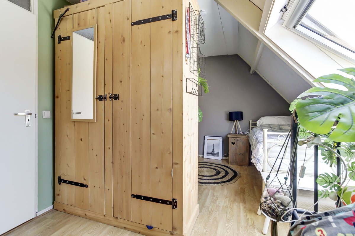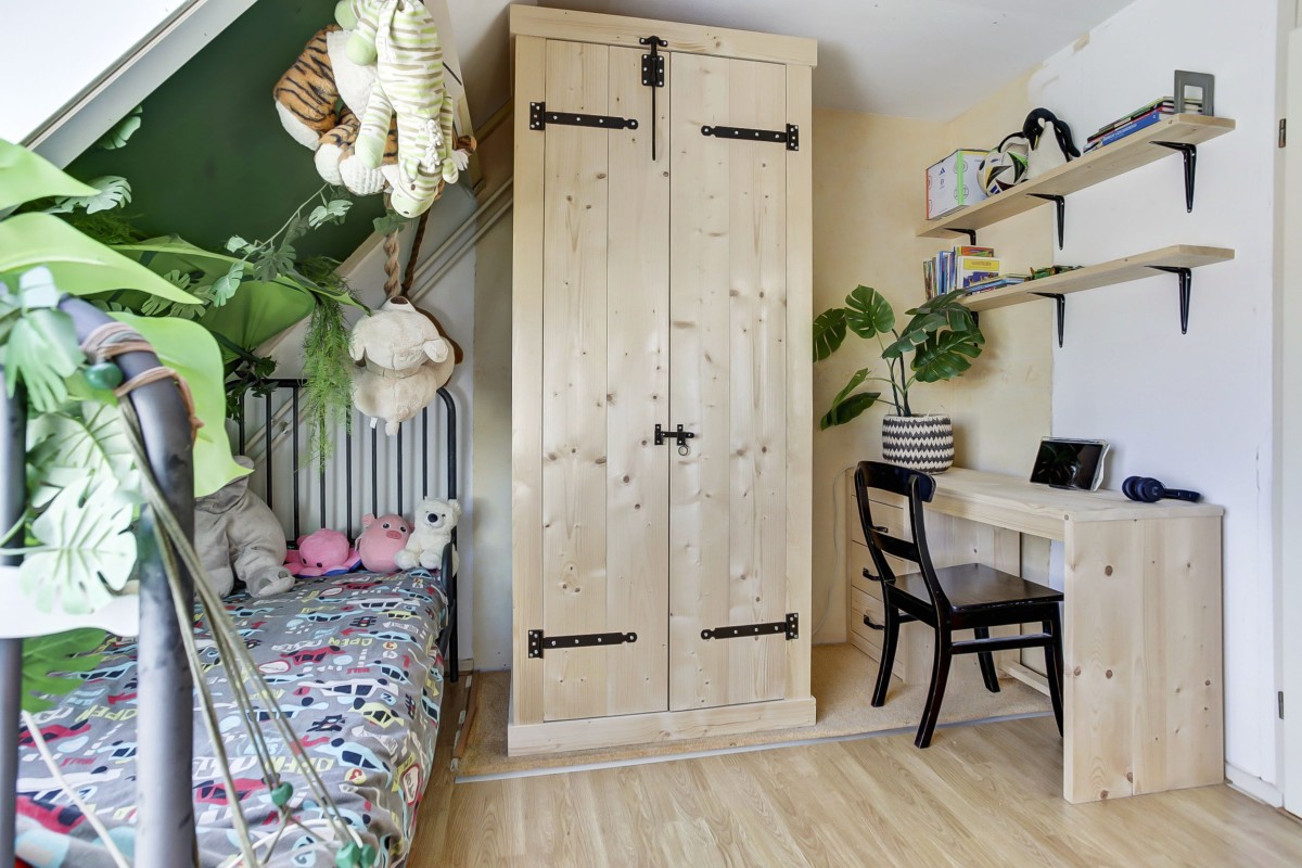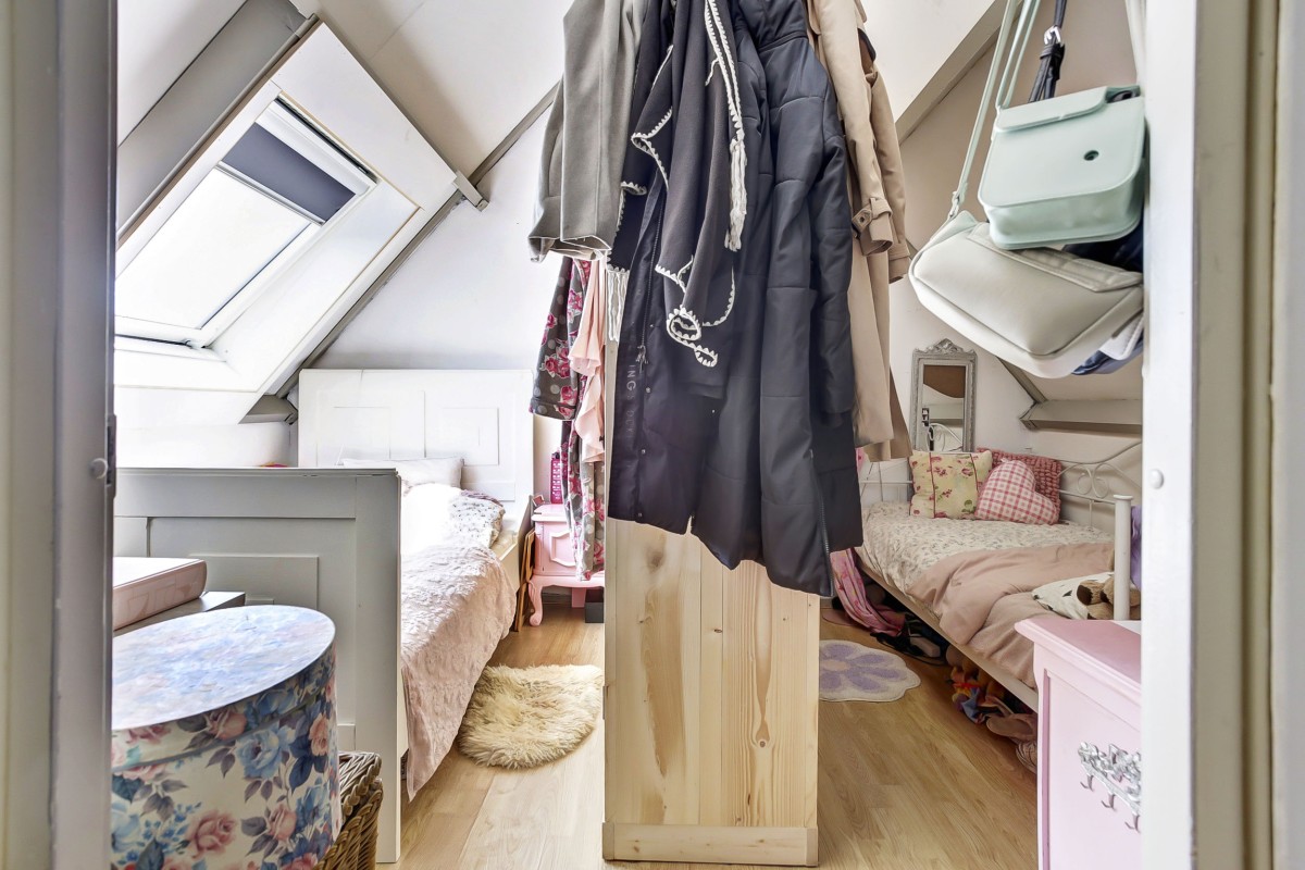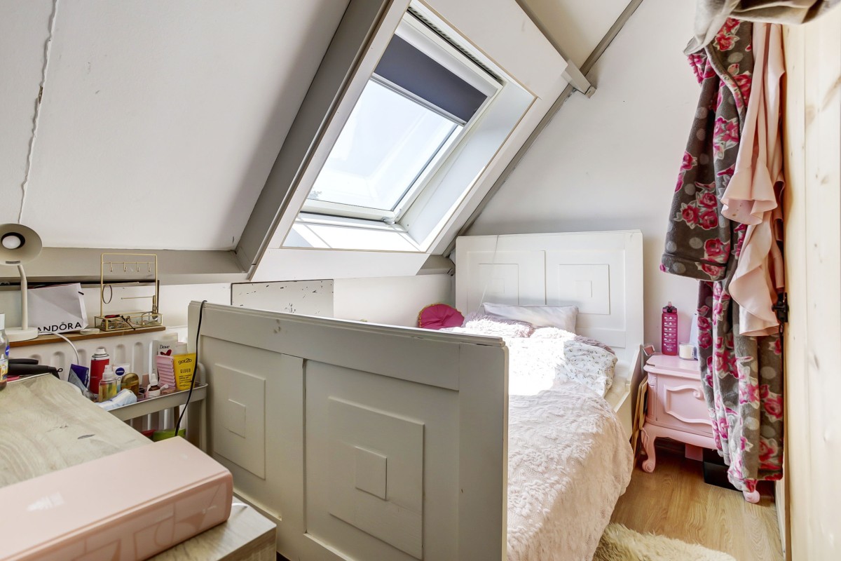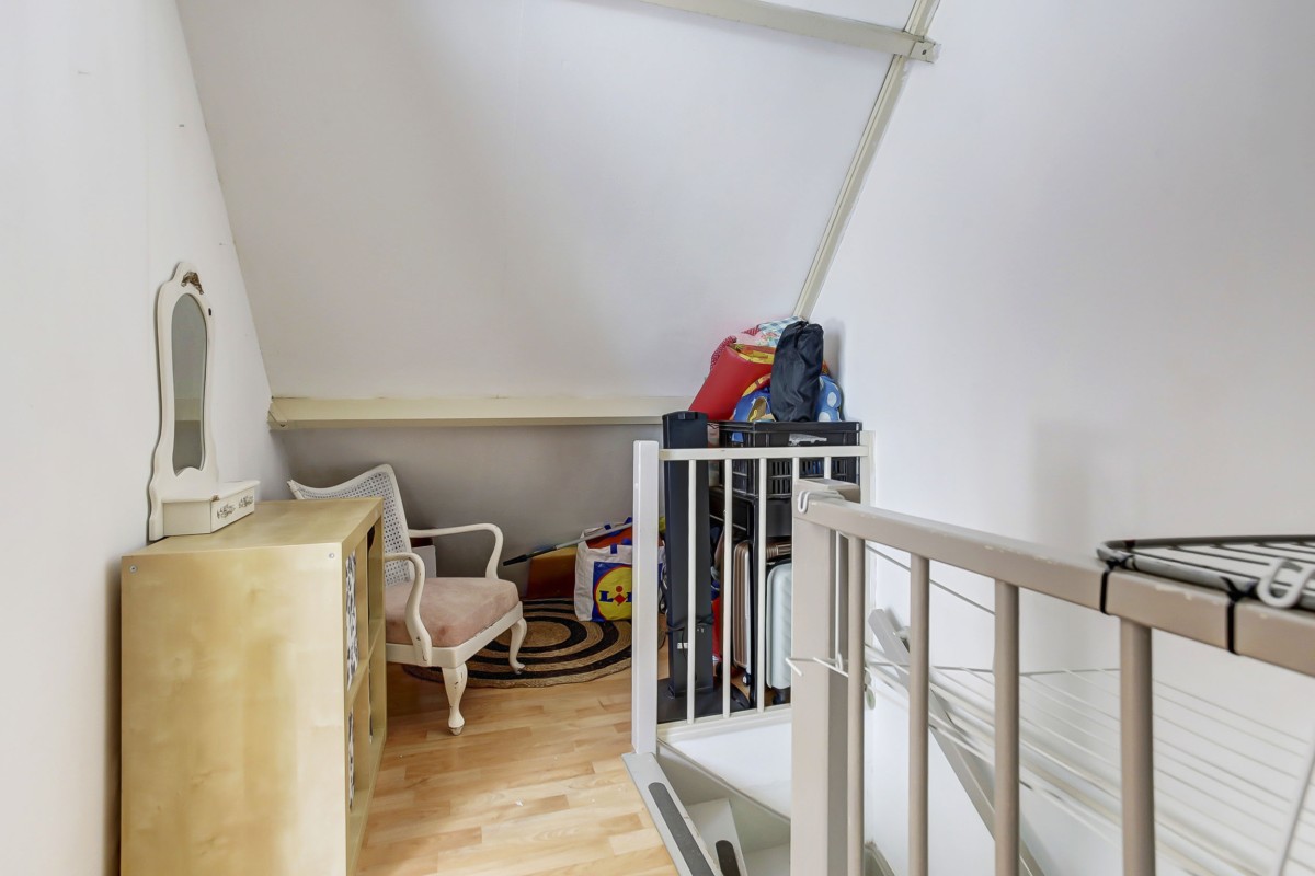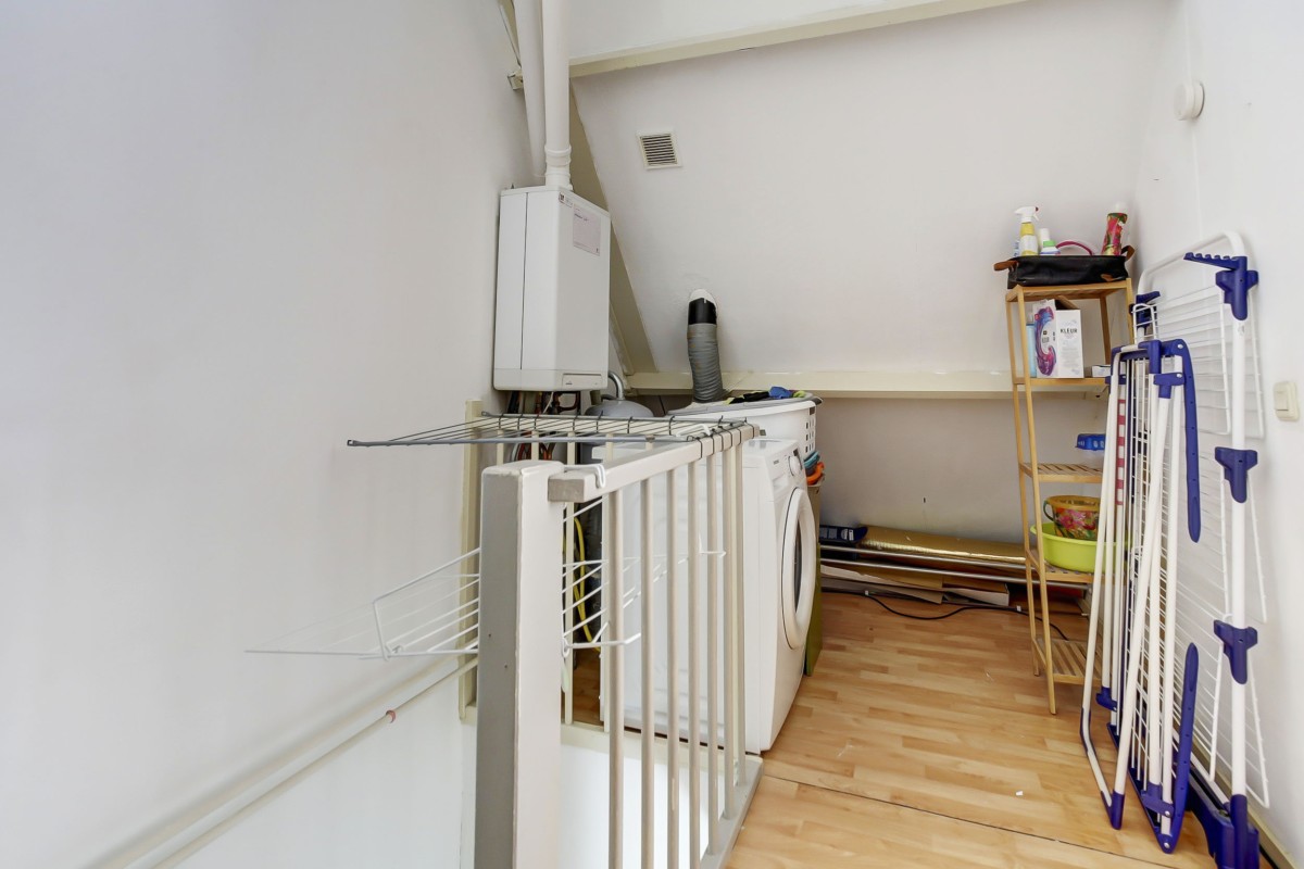 2e verdieping: vaste trap naar de voorzolder waar de cv-ketel (Intergas HR), wasmachine, droger en de vernieuwde mechanische ventilatie unit staan opgesteld, tevens biedt de voorzolder veel bergruimte, mooie 3e slaapkamer voorzien van een laminaatvloer en een nieuw kunststof dakraam.